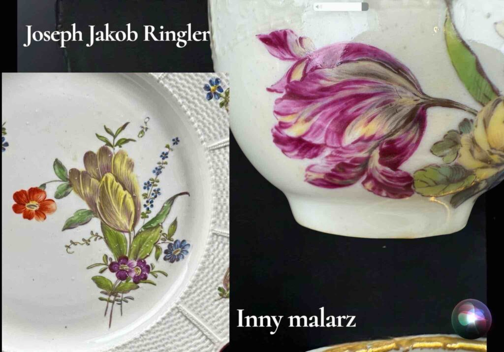 Intuicja mnie nie myliła, trafiłam prawdopodobnie na dzieło samego mistrza pędzla i zarządcy manufaktury w Ludwigsburgu. Rzecz niebywała, unikatowa i nieco trudna do oceny, bo i ile łatwiej nam nazwać z imienia i nazwiska malarza np scen batalistycznych czy innych motywów sytuacyjnych, o tyle w przypadku kwiatów jest to już zdecydowanie trudniejsze.