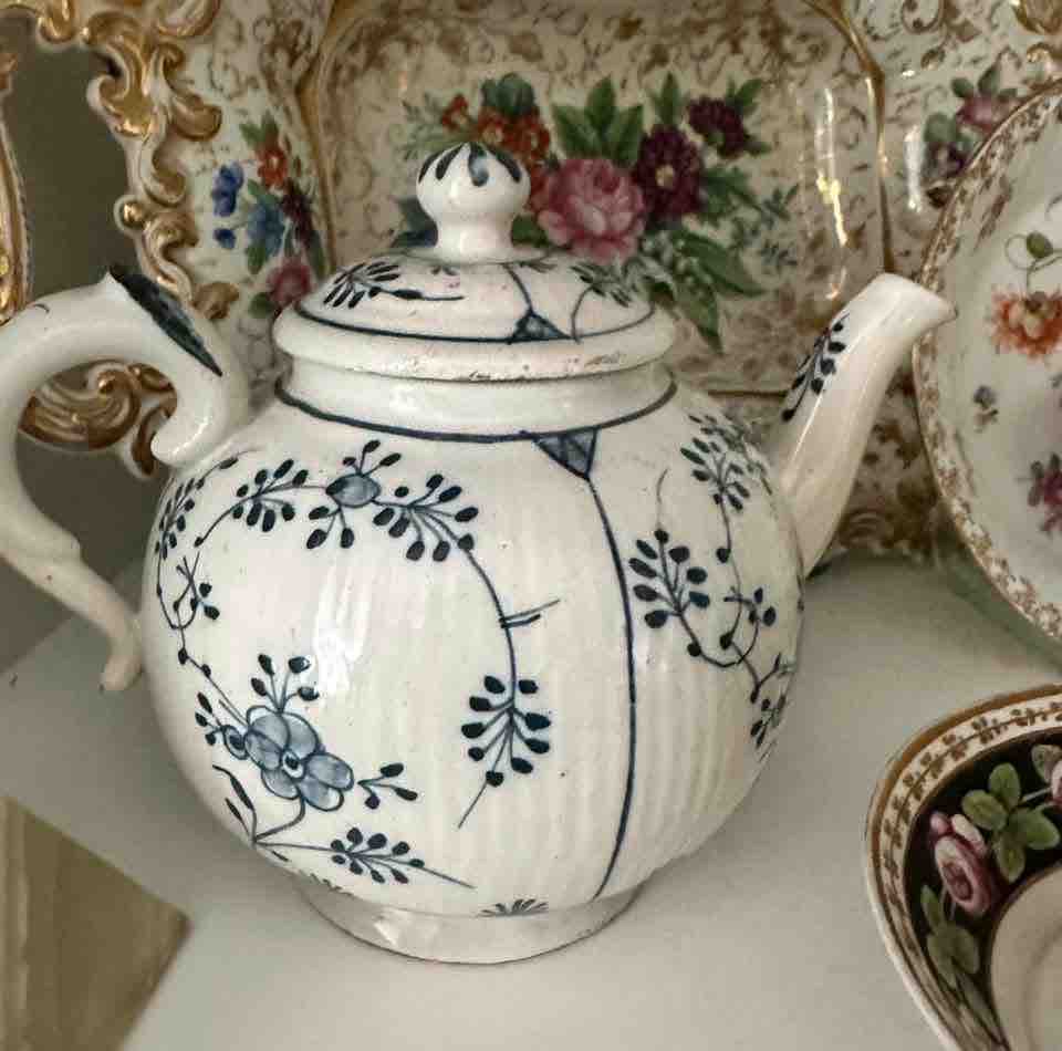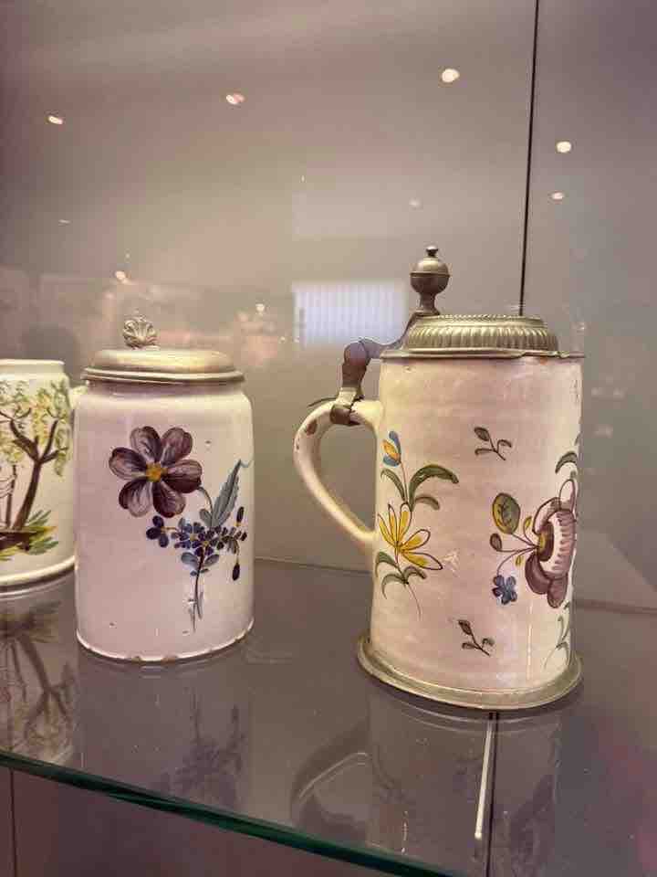 Fajansowy imbryk z okresu 1758-1760 r. zdobiony motywem popularnego w tym czasie „wzorem słomkowym” „wzorem suchych kwiatów” i filiżanka ze spodkiem 1761-1768 r. z uroczym w swojej skromności zdobieniem malych kwiatów