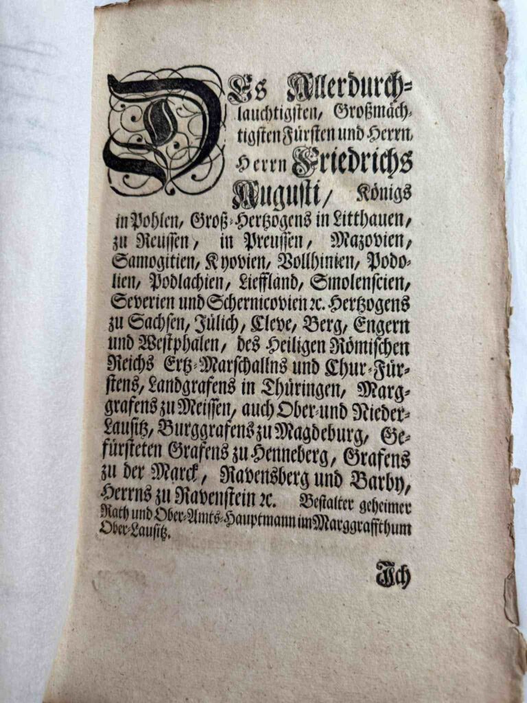 Patent królewski z 1737 roku, wydany w imieniu Augusta III, króla Polski i elektora Saksonii