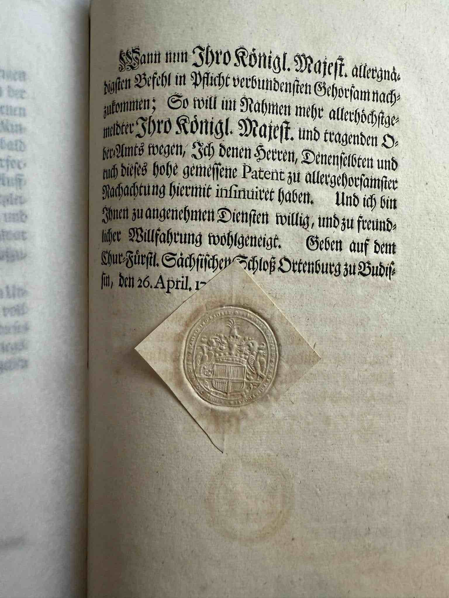 Patent królewski z 1737 roku, wydany w imieniu Augusta III, króla Polski i elektora Saksonii