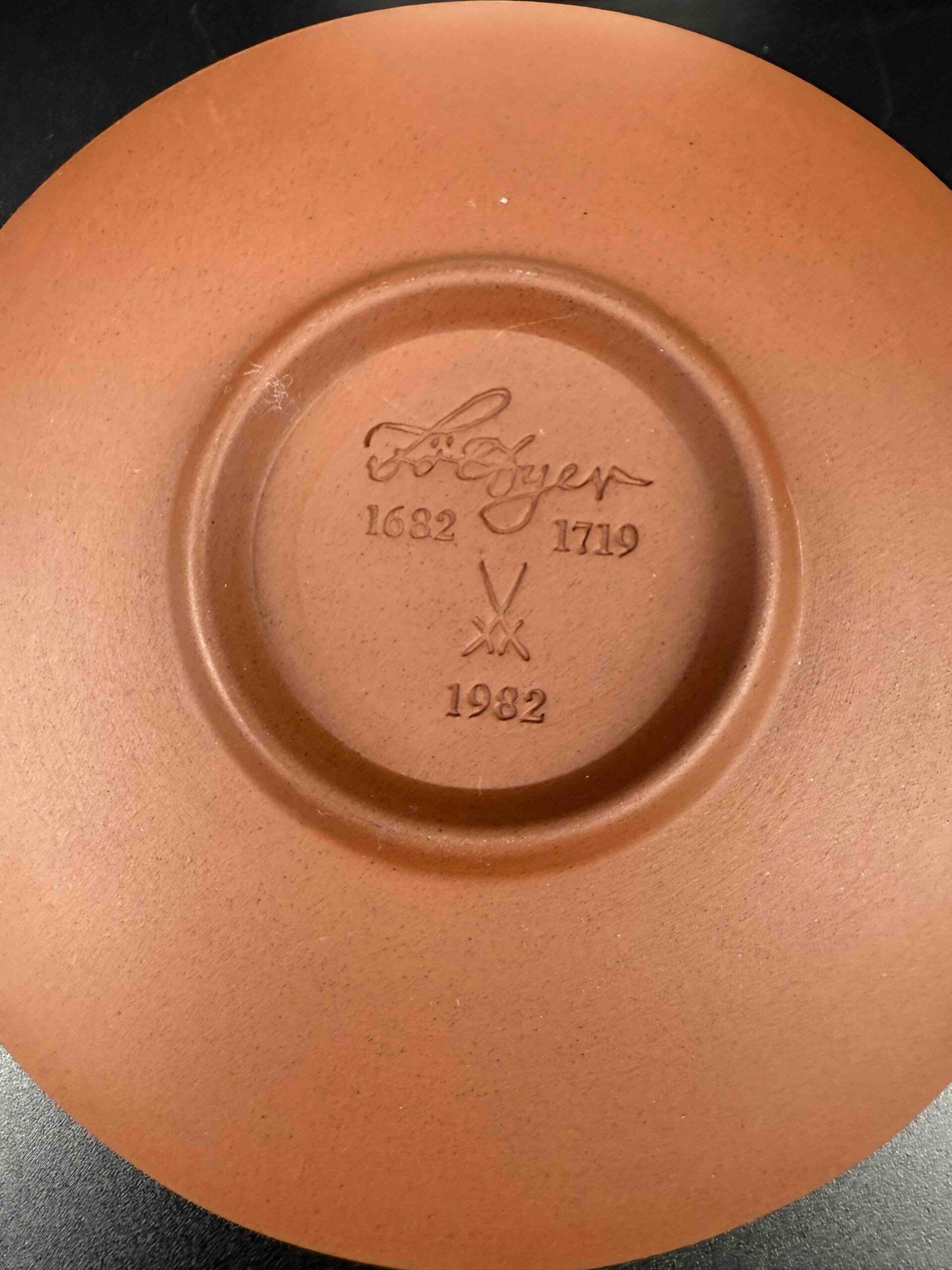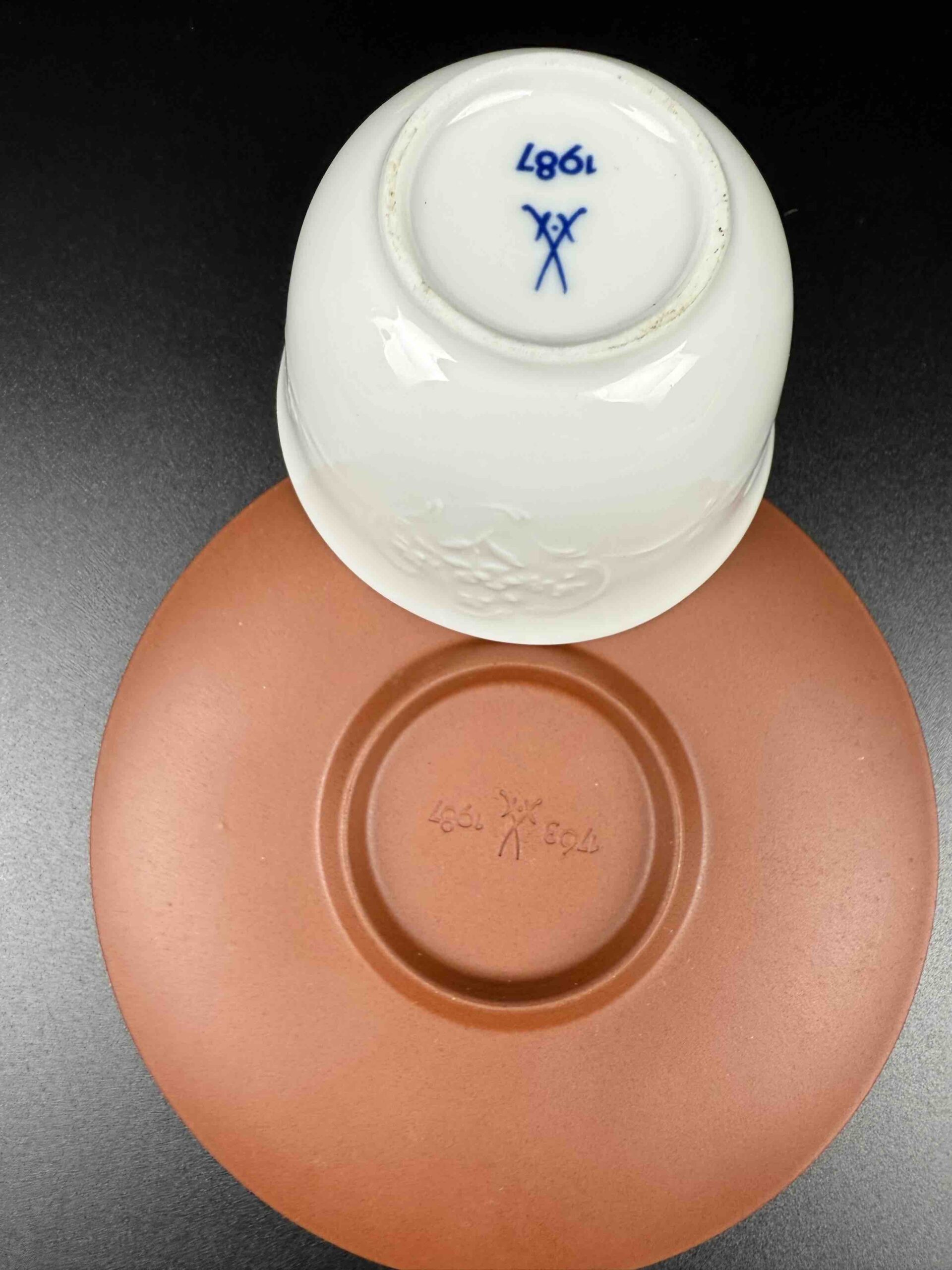 Porcelana sygnowana skrzyżowanymi mieczami, co potwierdza autentyczne pochodzenie z manufaktury w Miśni.
