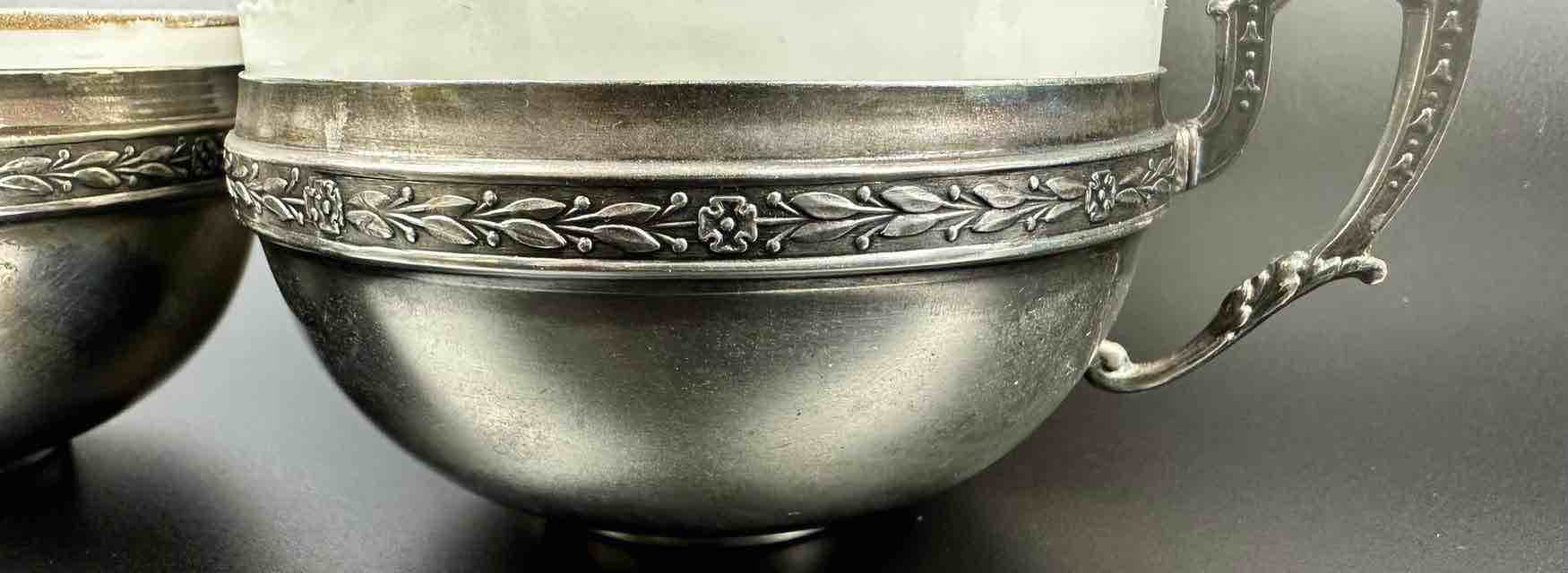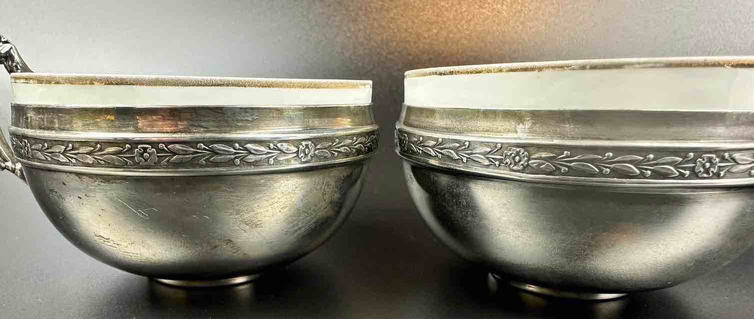 Para srebrnych naczyń z porcelanowymi wkładami – Europa Środkowa, przełom XIX / XX w. lub początek XX w.
