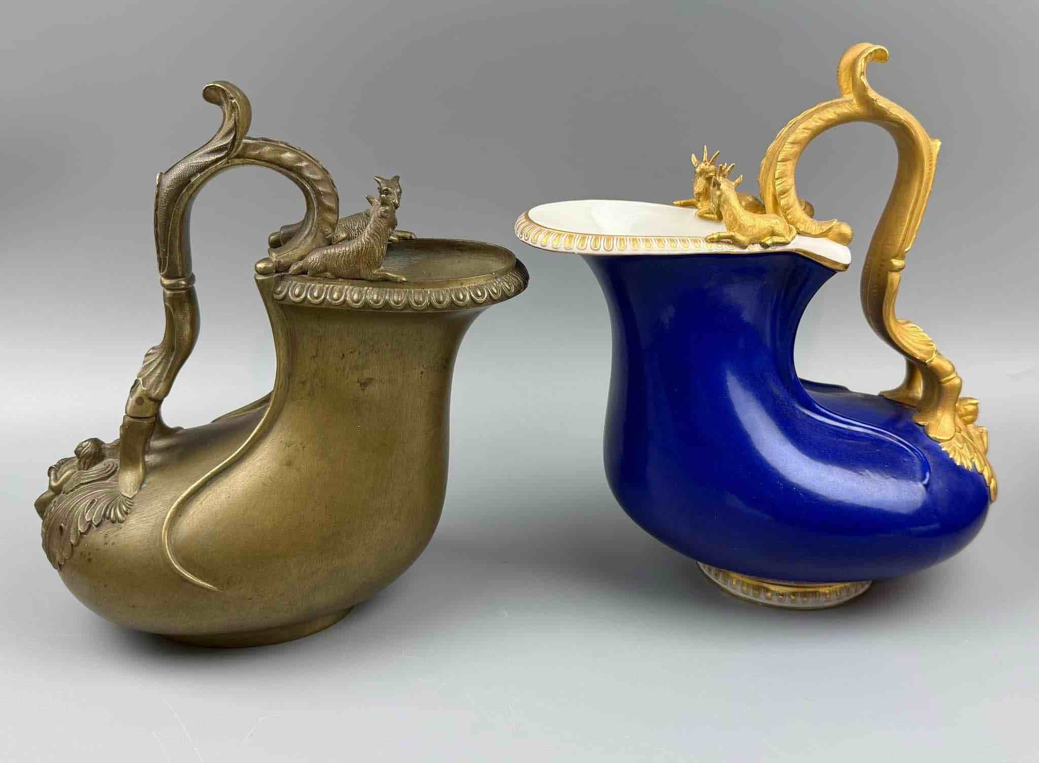 W tej samej formie w XIX wieku manufaktury KPM Berlin, włoska Capodimonte i rosyjski Gardner produkowały dzbany z porcelany. (na jednym ze zdjęć przykład kobaltowego KPM Berlin)