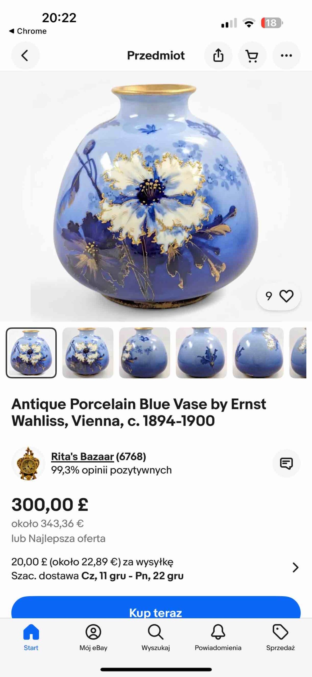 Przedmiotem sprzedaży jest porcelanowy wazon Ernst Wahliss Austrian Turn Wien ok 1910 r.