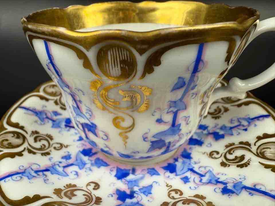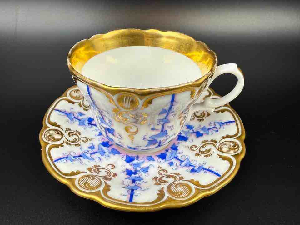 Małe detale wzoru nadają lekkości i kontrastu — typowe dla dekoracji fantazyjnych w drugiej połowie XIX wieku.