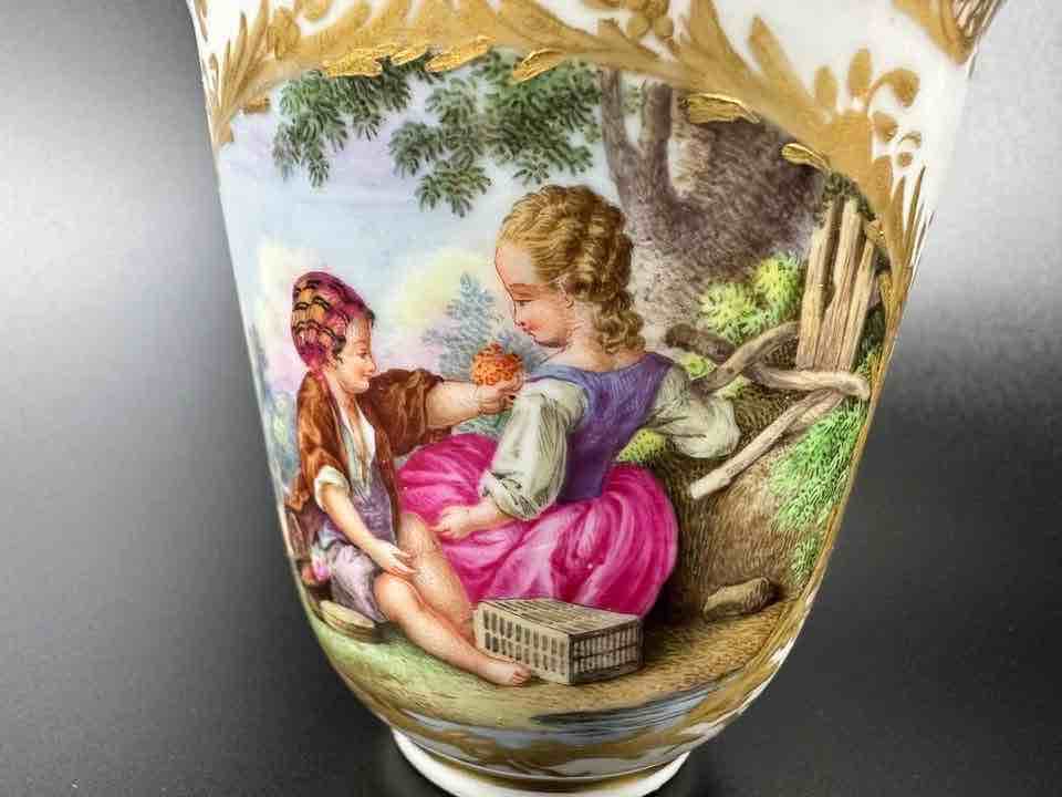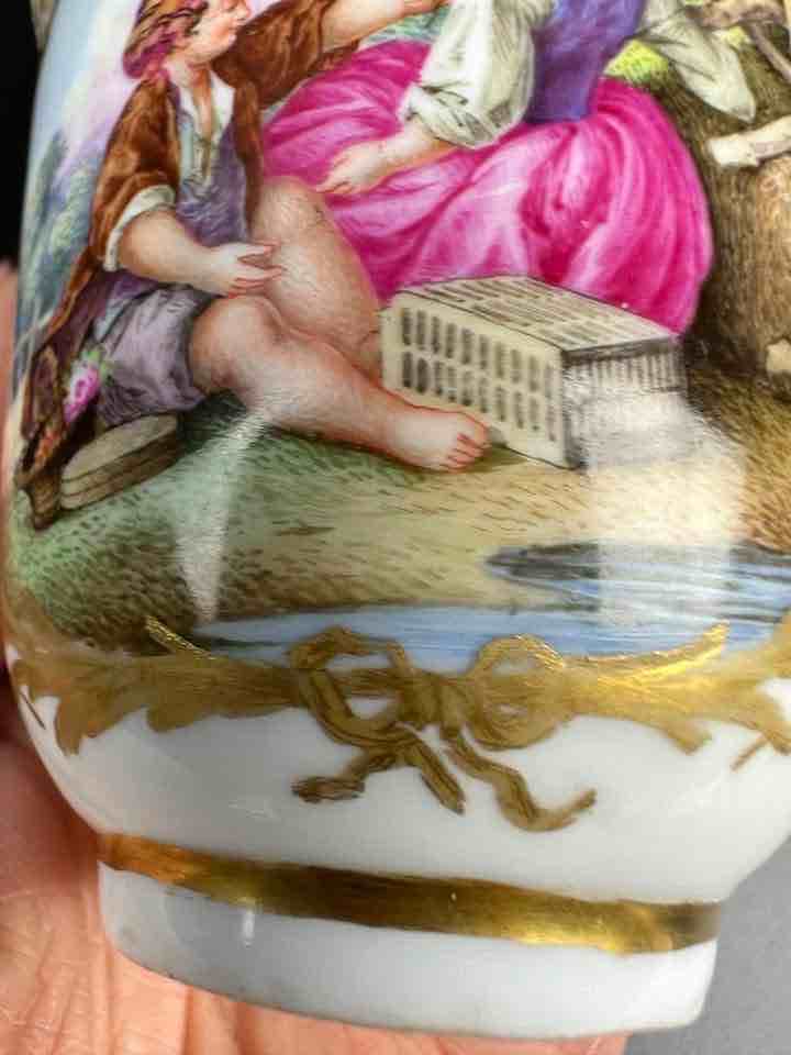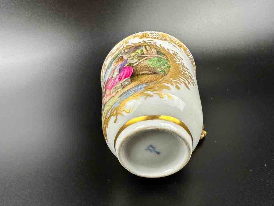 scenka sytuacyjna wykonana jest niezwykle ciekawie, szczegółowo i „po miśnieńsku” ale złocenia zdradzają jej pochodzenie, bo nie sądzę, by nanosił je miśnieński malarz zlotem.