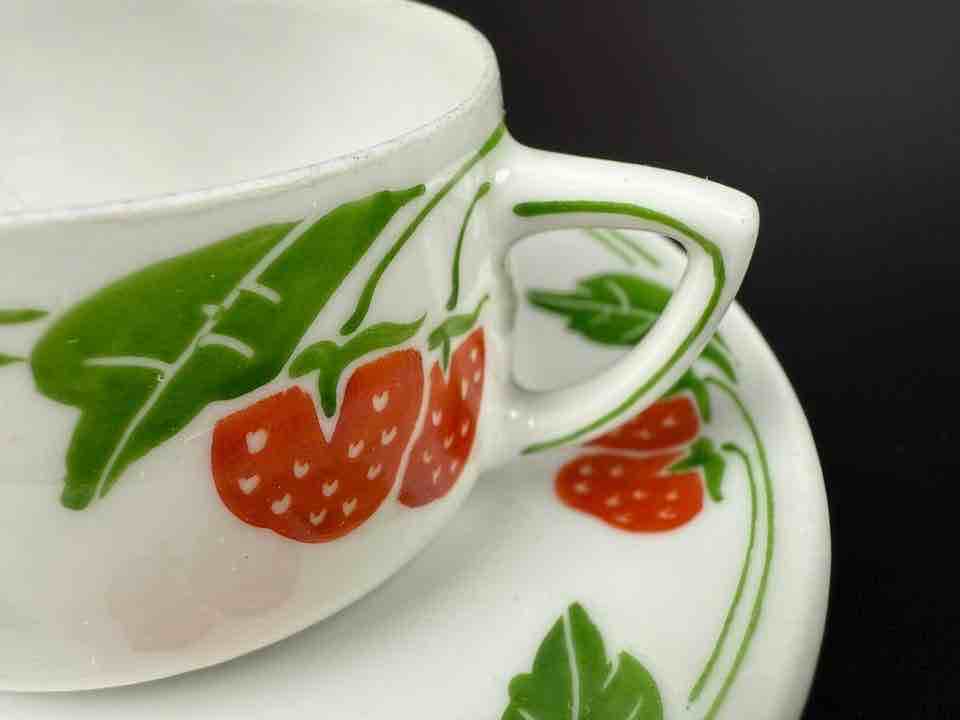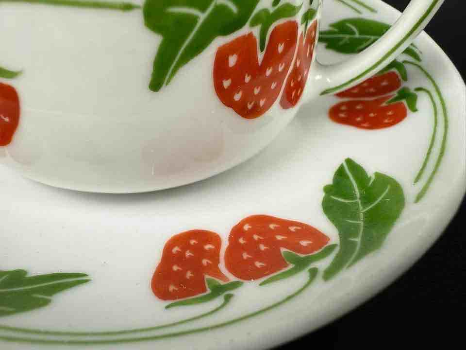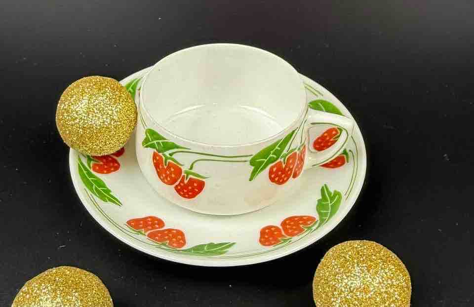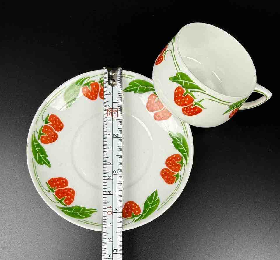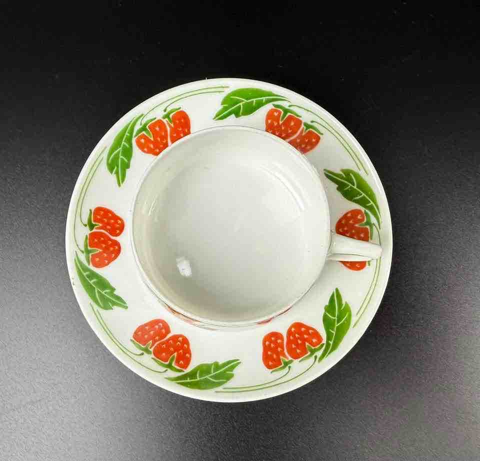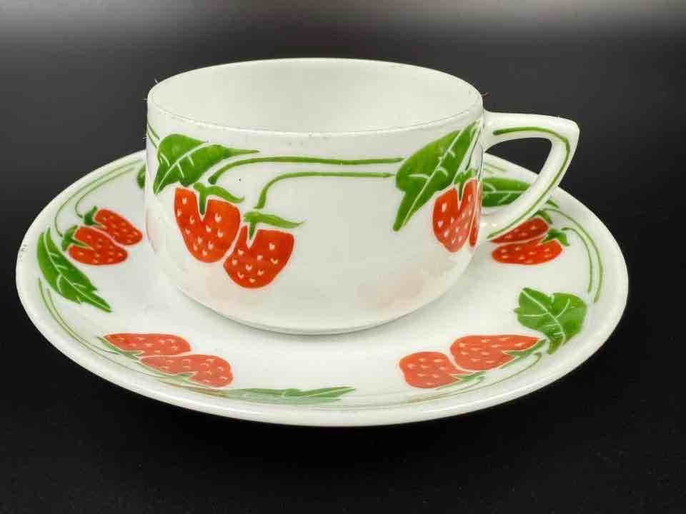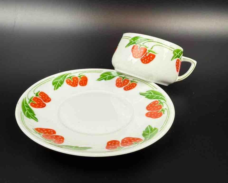 Delikatna porcelana z motywem truskawek Sygnatura Ohme Silesia z lat 1900 – 1920.