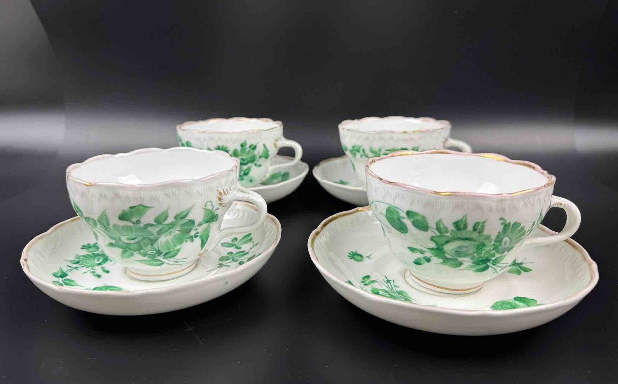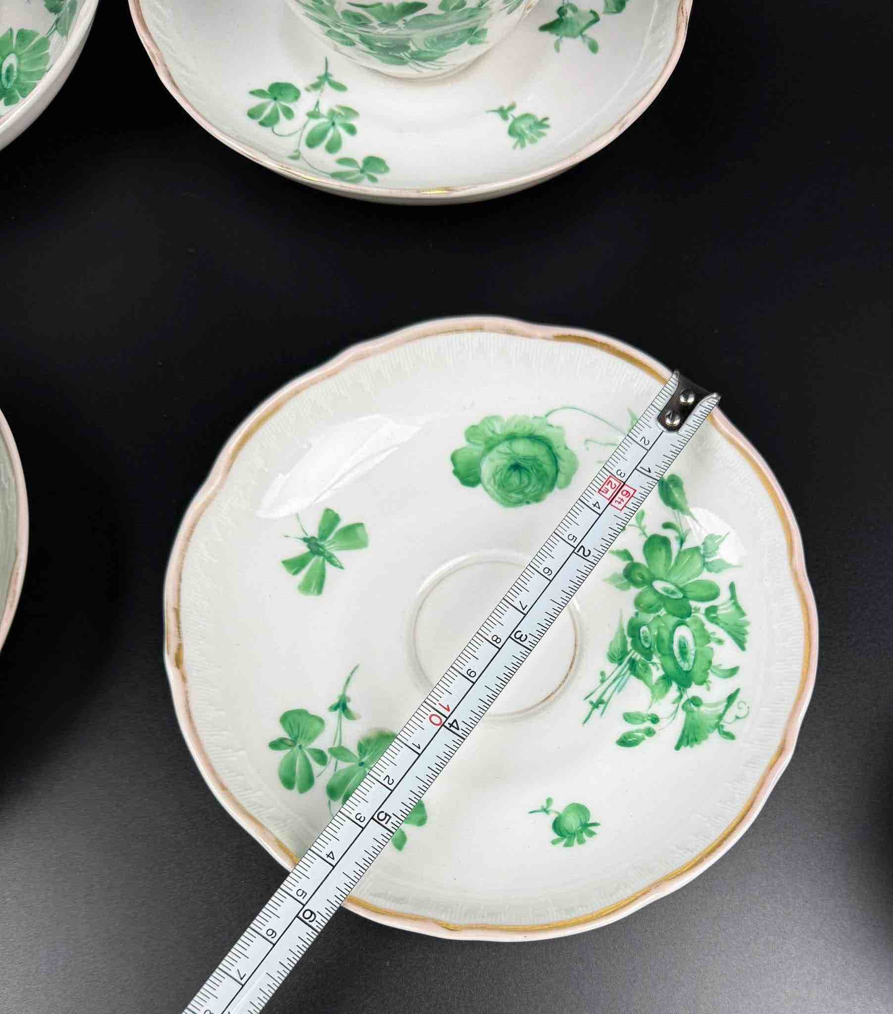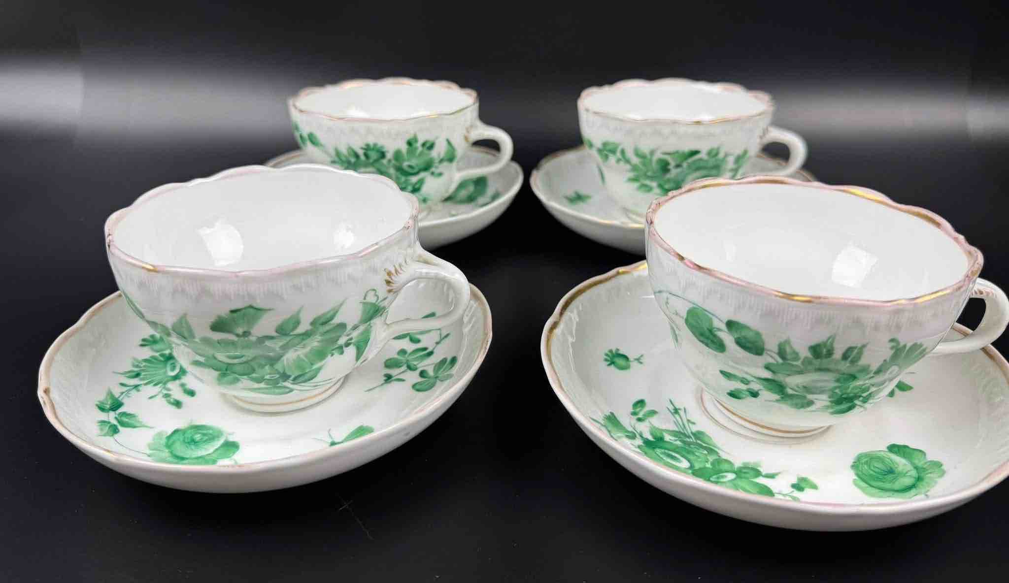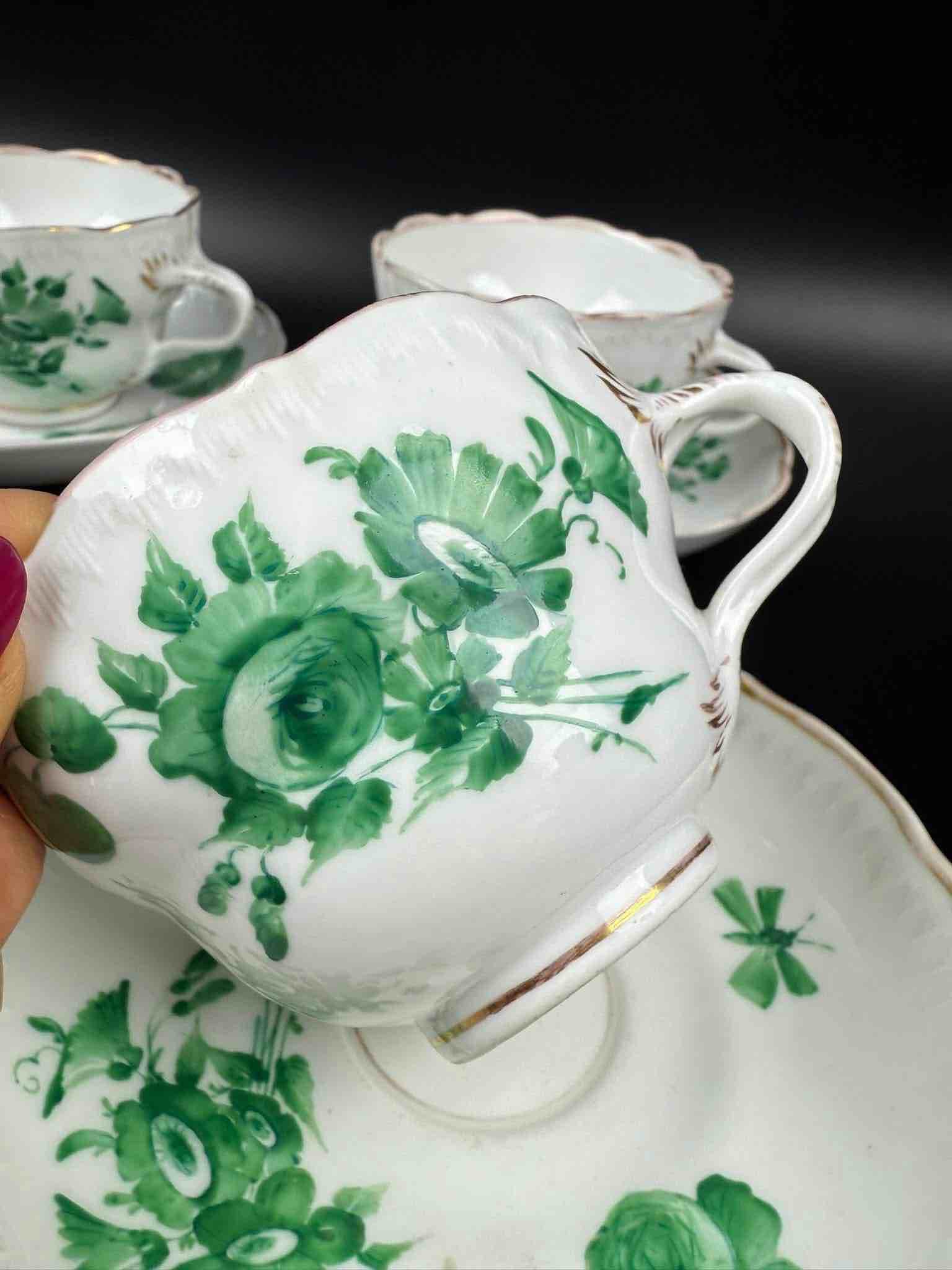 urocza stara grubościenna porcelana z zielonym akcentem kwiatowym.