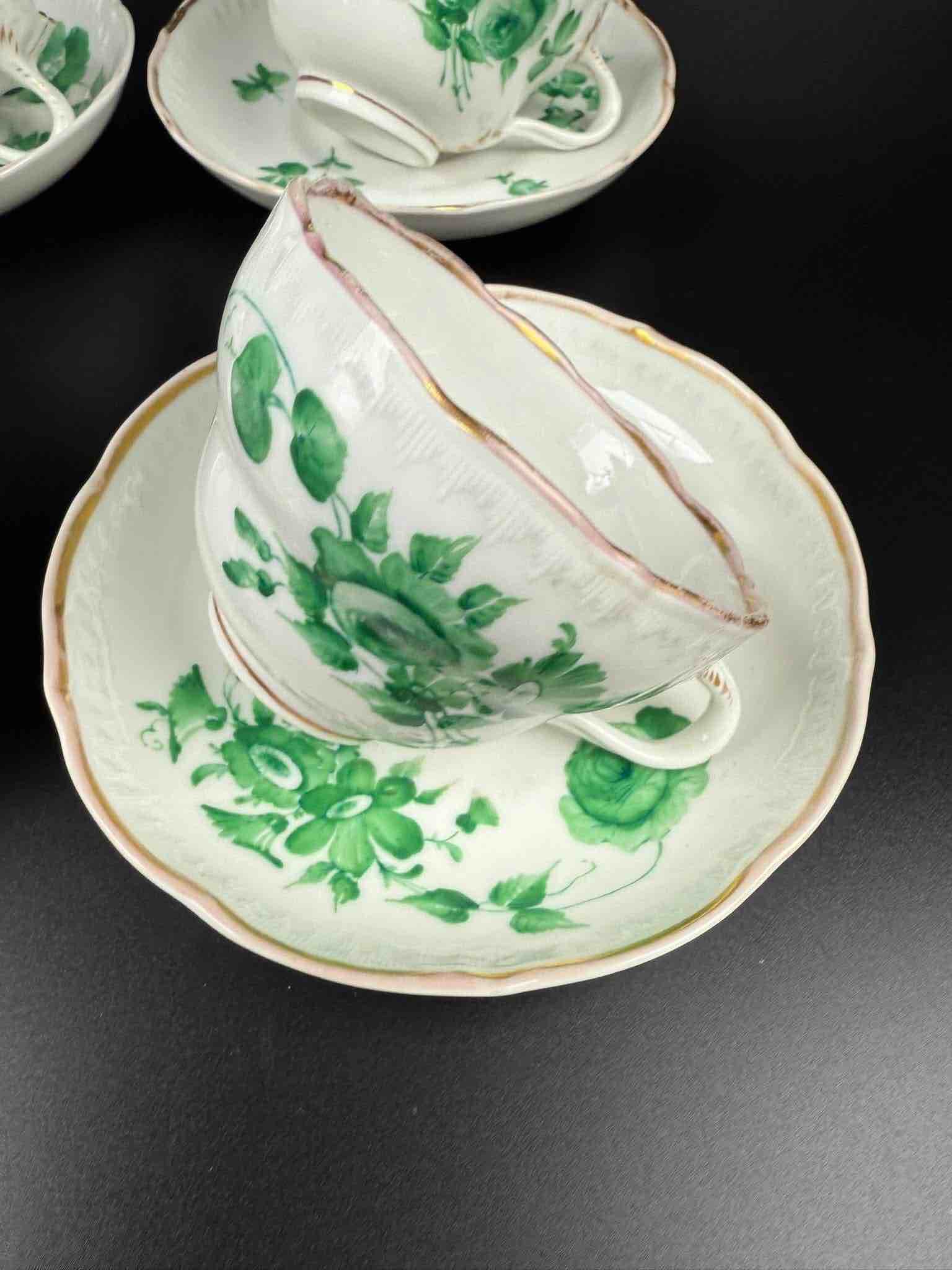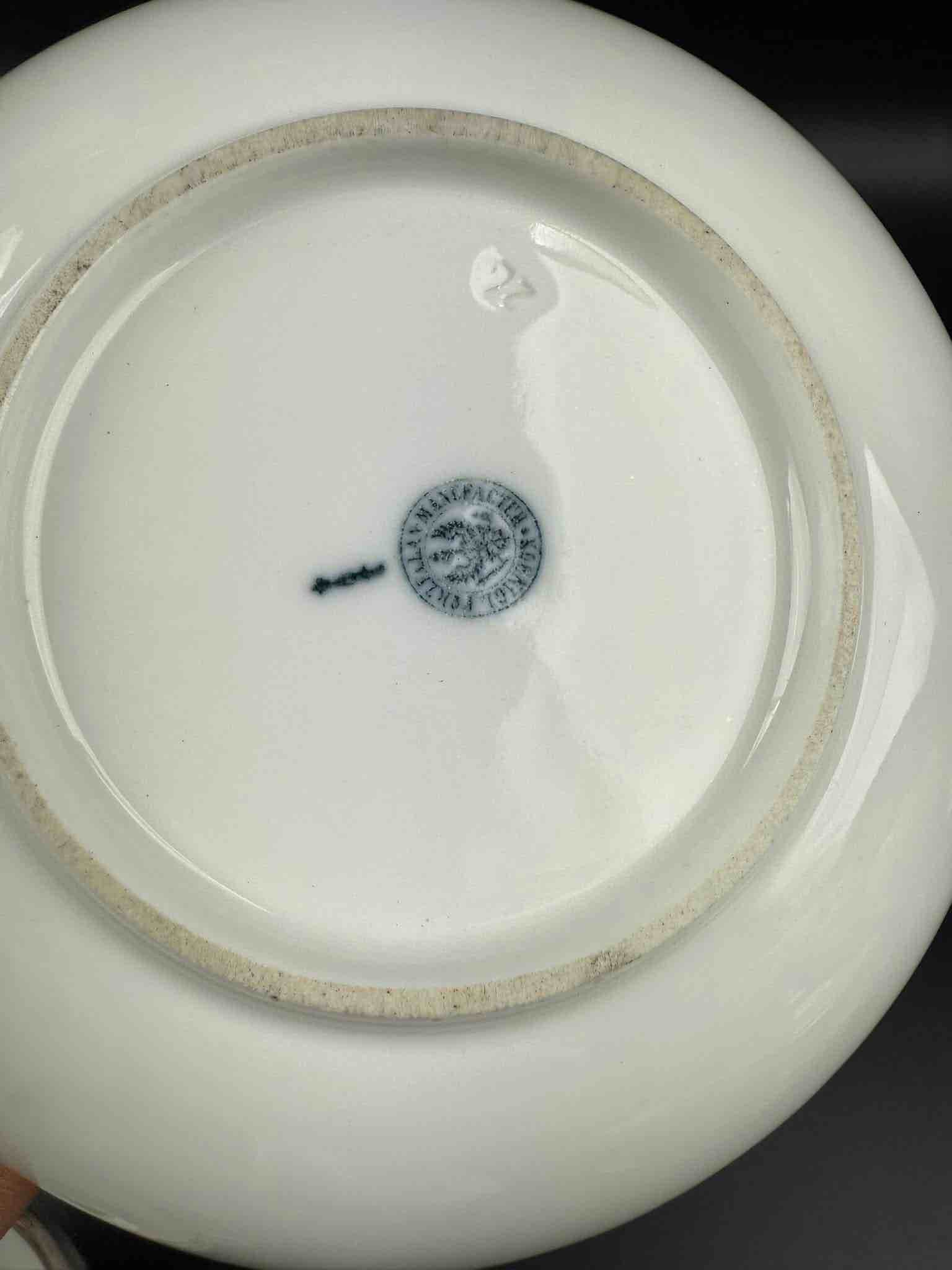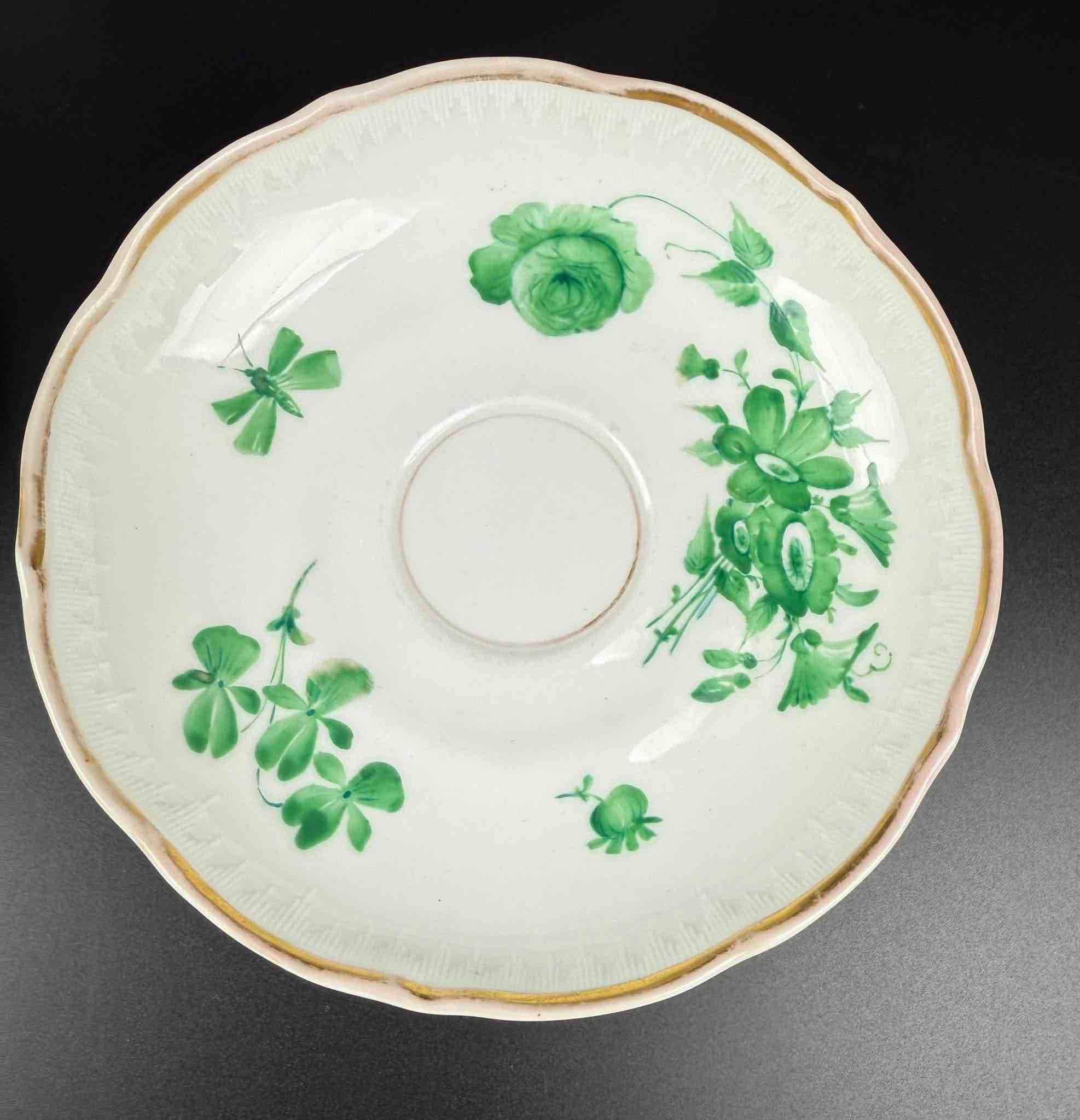 urocza stara grubościenna porcelana z zielonym akcentem kwiatowym.