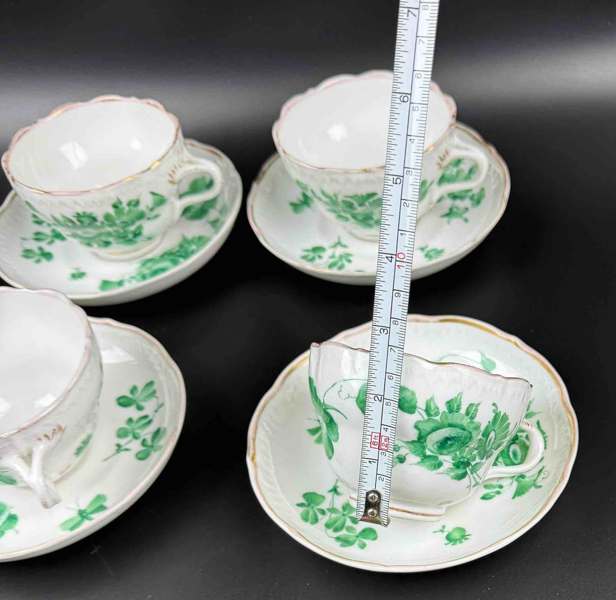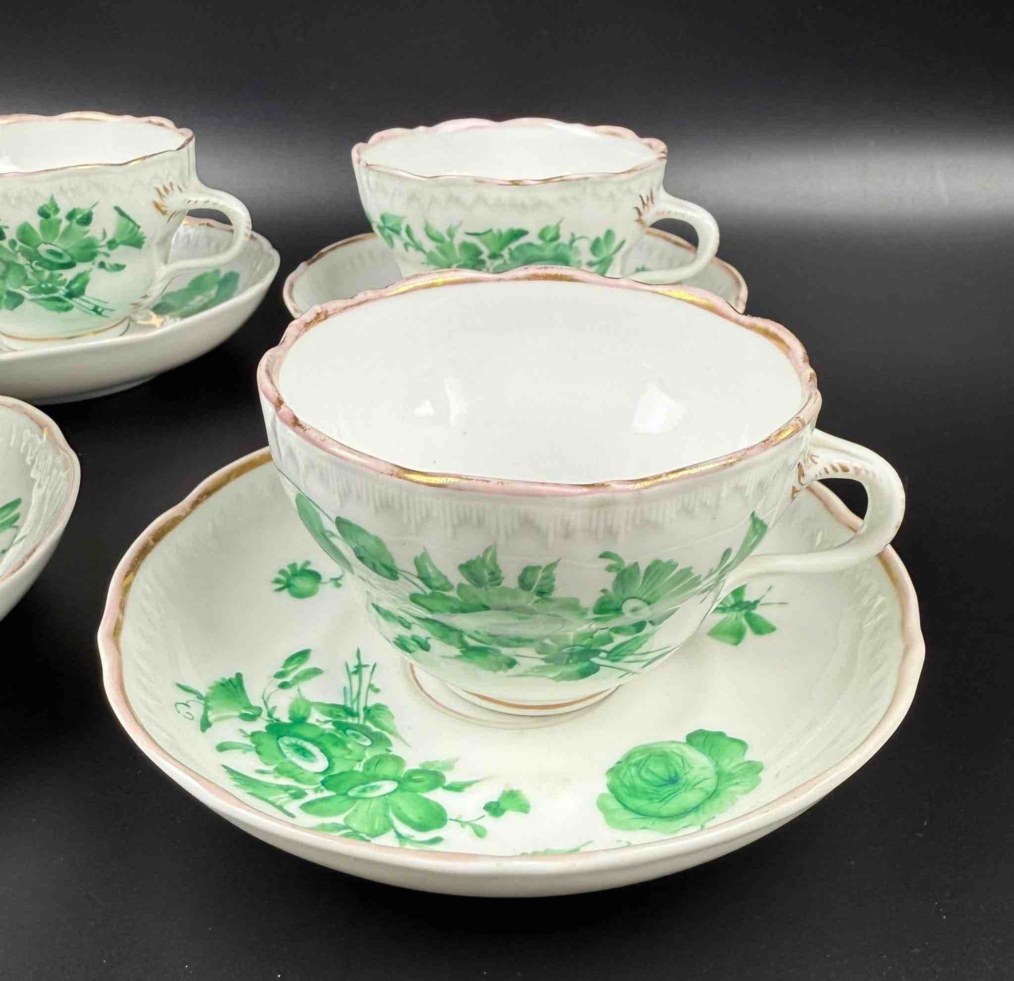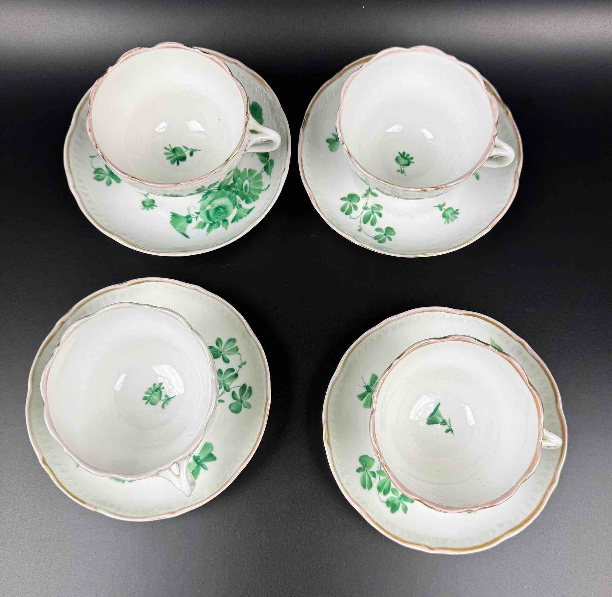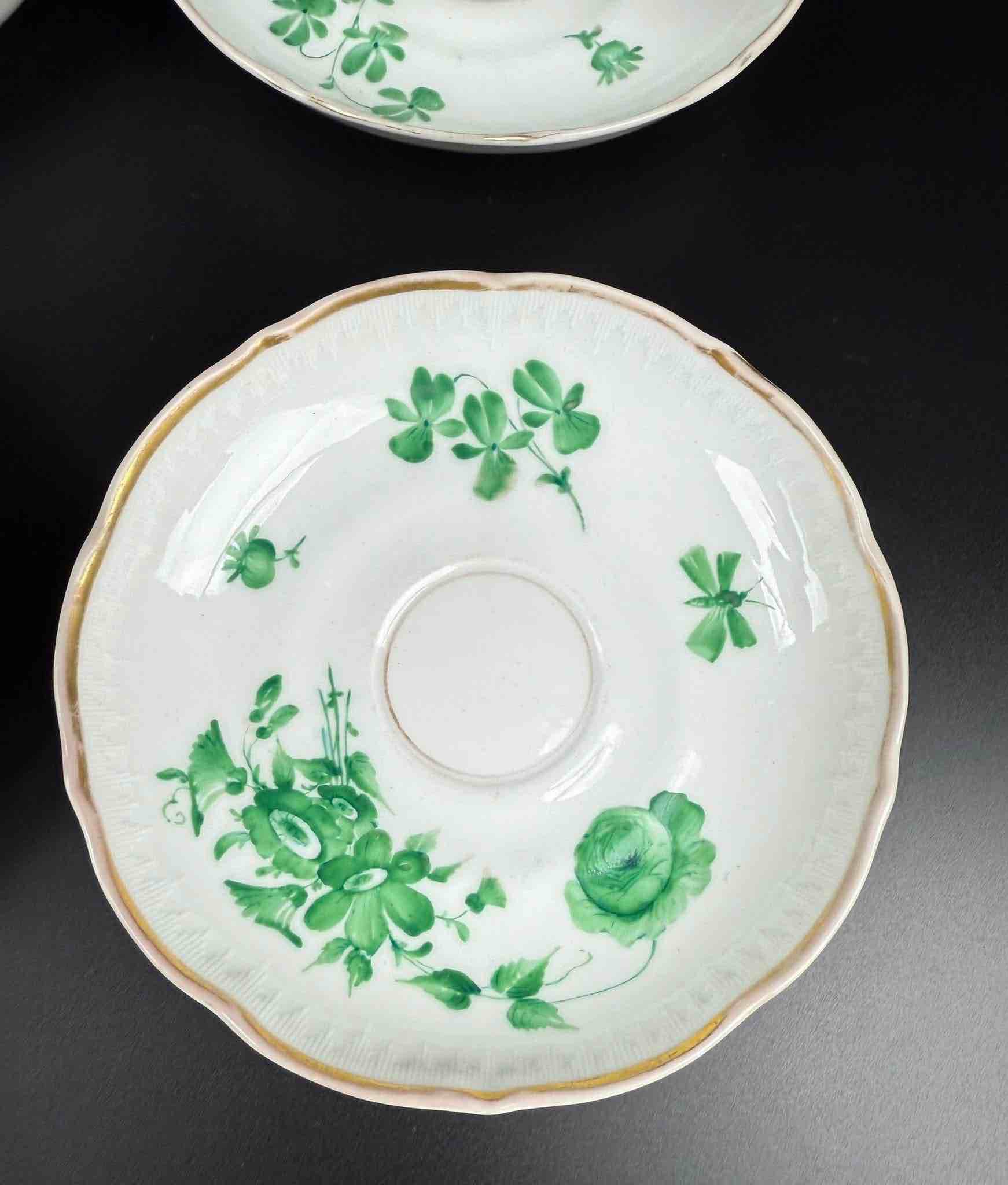 urocza stara grubościenna porcelana z zielonym akcentem kwiatowym.