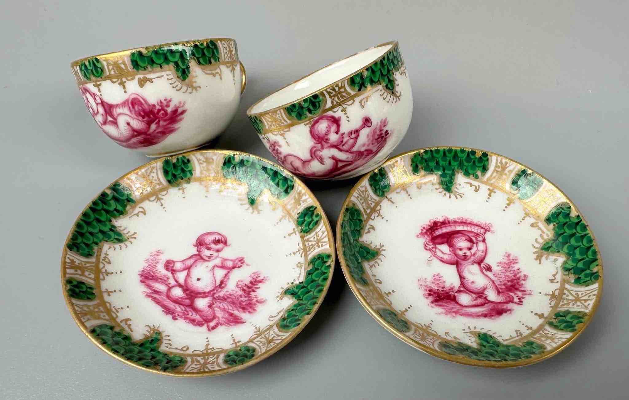 i zadziwiająco pięknie i precyzyjnie zdobione motywem putta techniką camaieu, zieloną łuską i licznymi złoceniami.