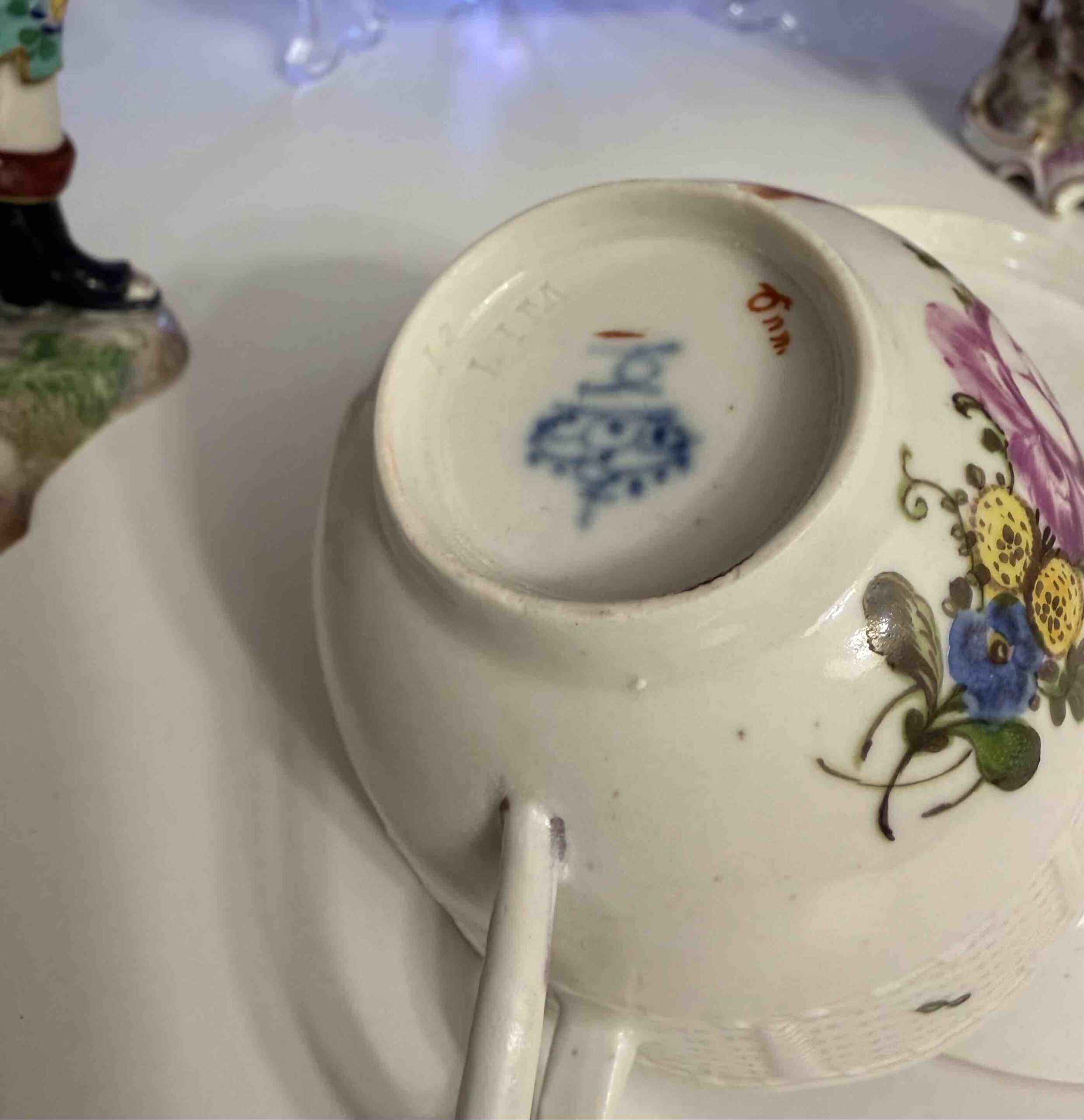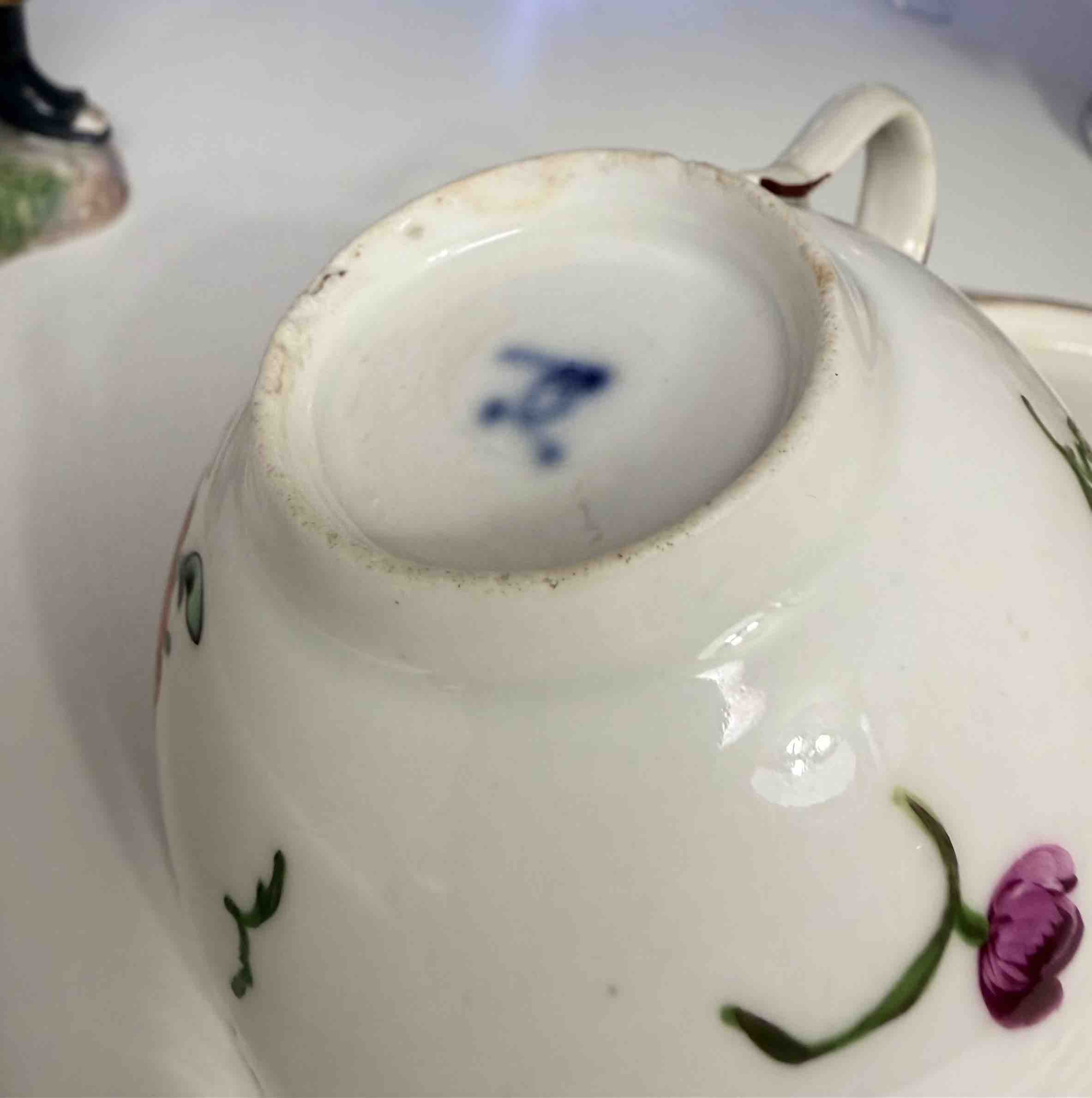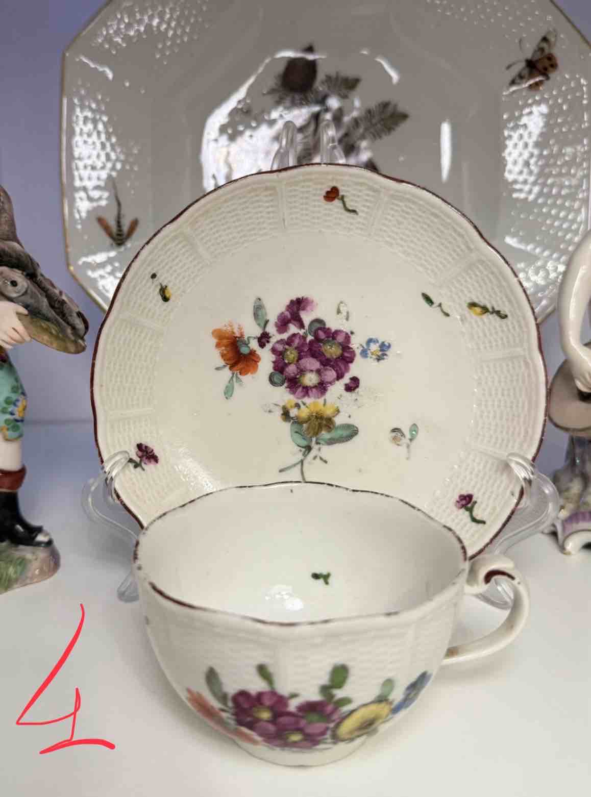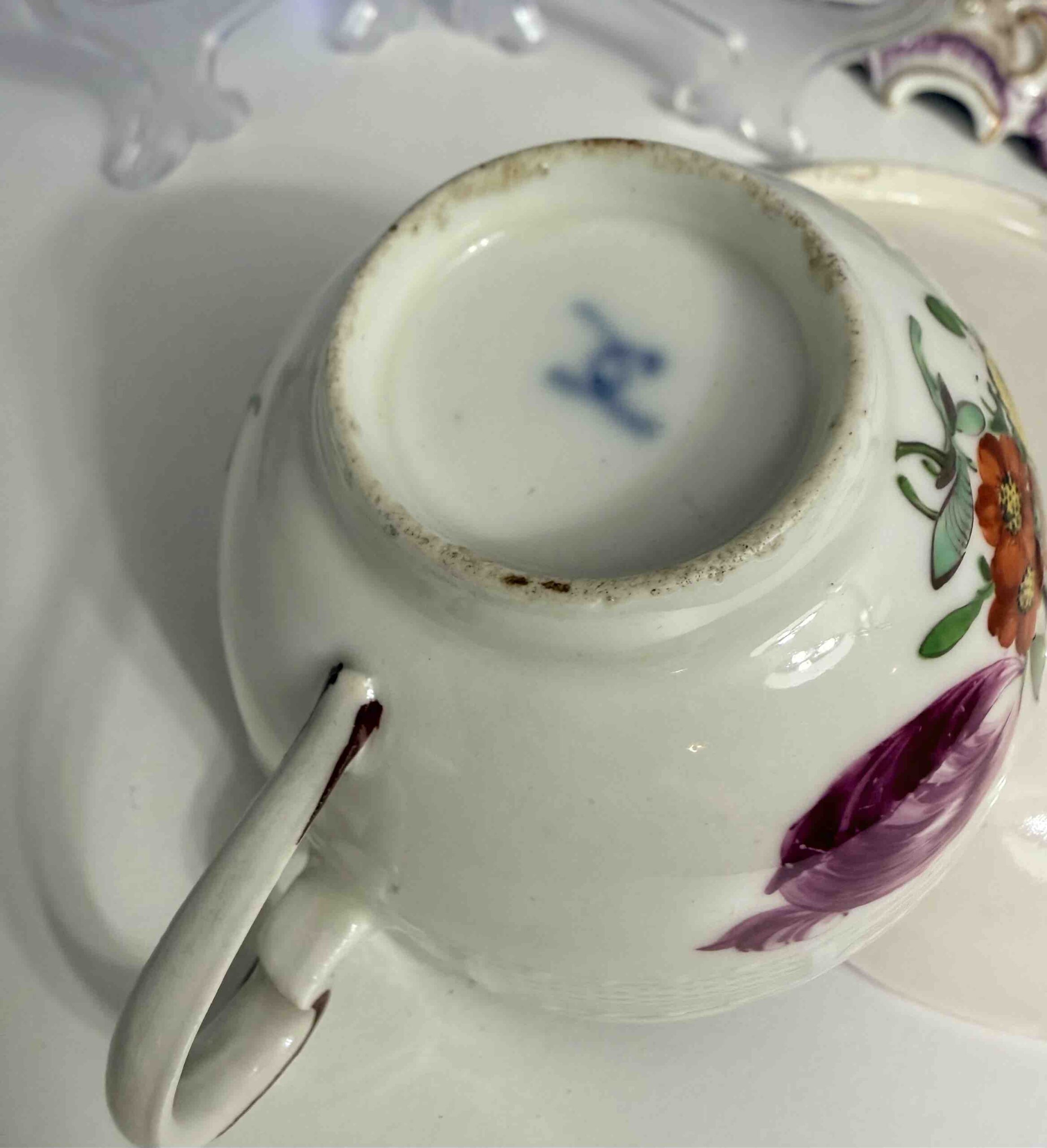 Spodeczki i filiżanki czasem gubią symetrię formy, posiadają drobne skazy i szary odcień porcelany. Szarawa masa porcelanowa z drobnymi skazami szkliwa, zgaszona tonacja barw, brak symetrii charakterystyczne są dla wyrobów Ludwigsburg z XVIII w. choć nie są regułą. Na uwagę zasługuje prezentowany przykład kompletu filiżanki i spodka wykonanych w podobnym przedziale czasowym, na którym wyraźnie dostrzec można różnicę odcieniu porcelany.