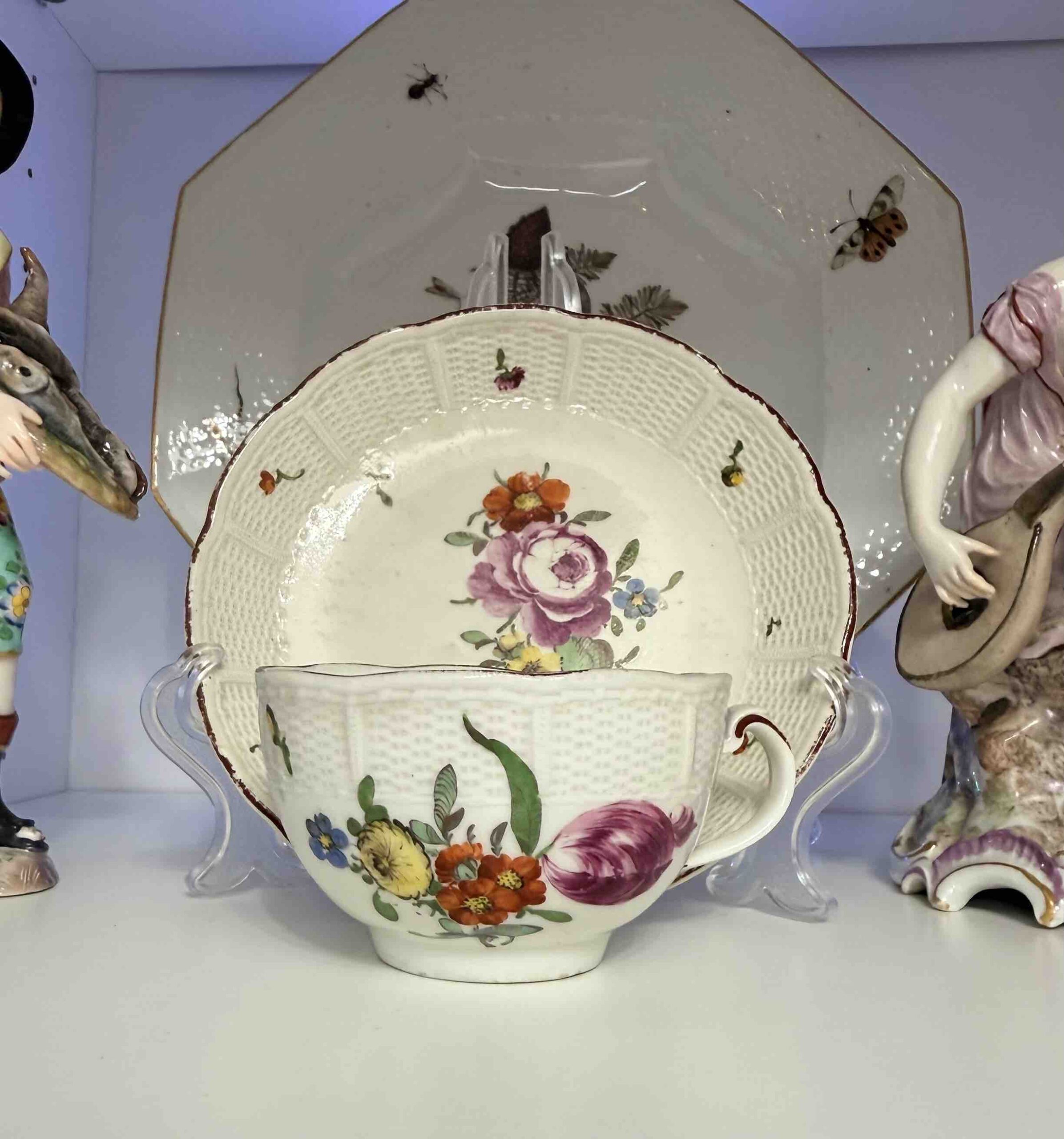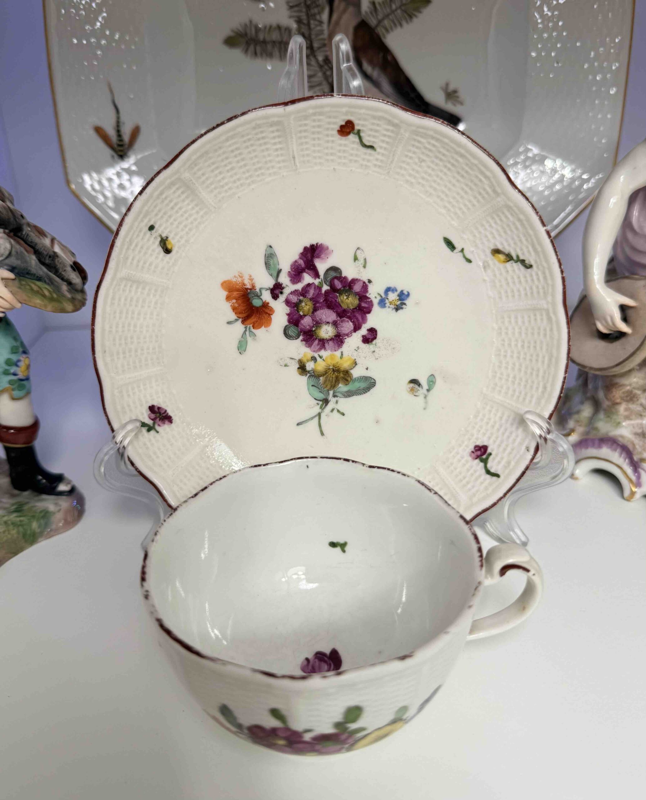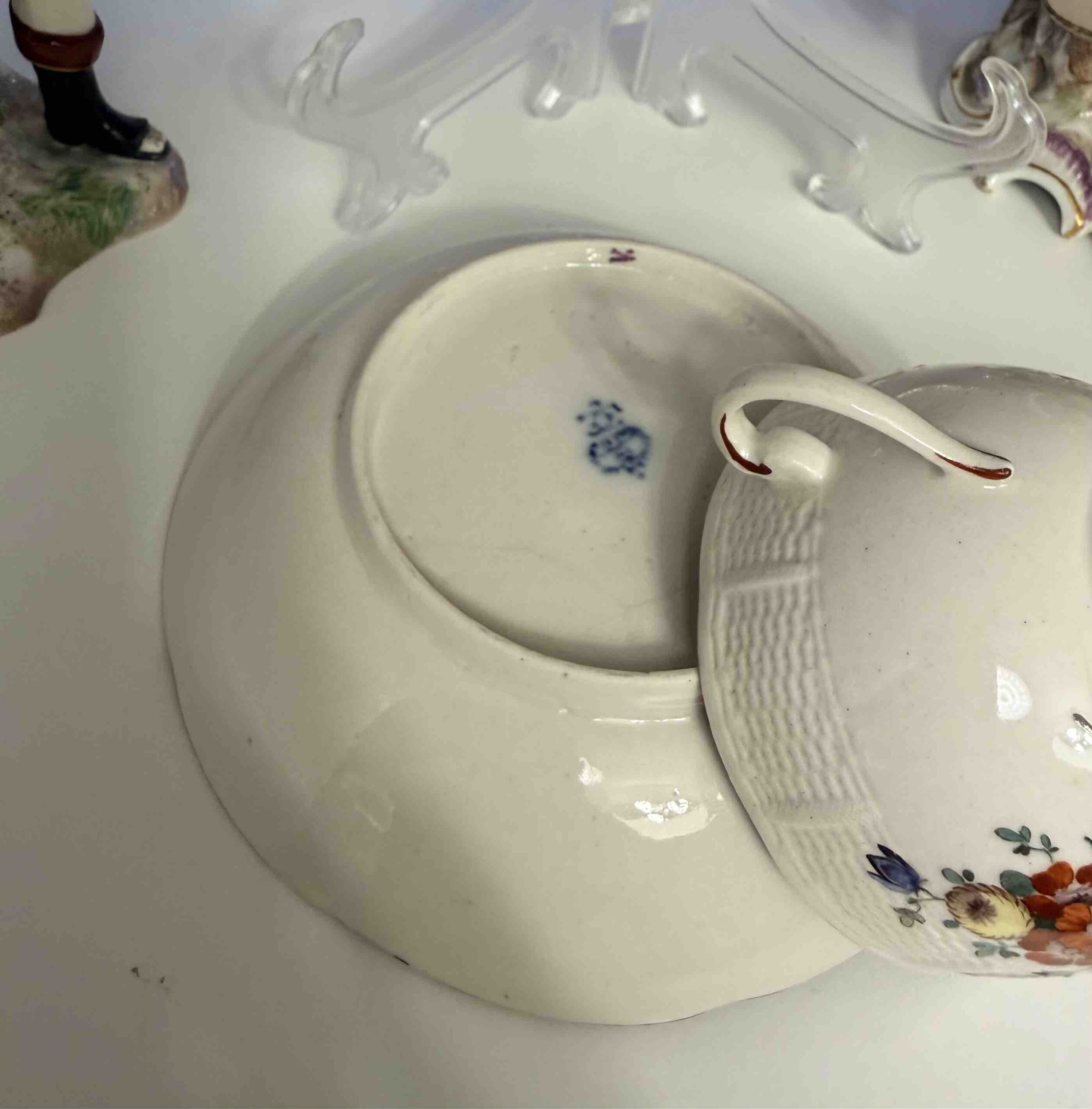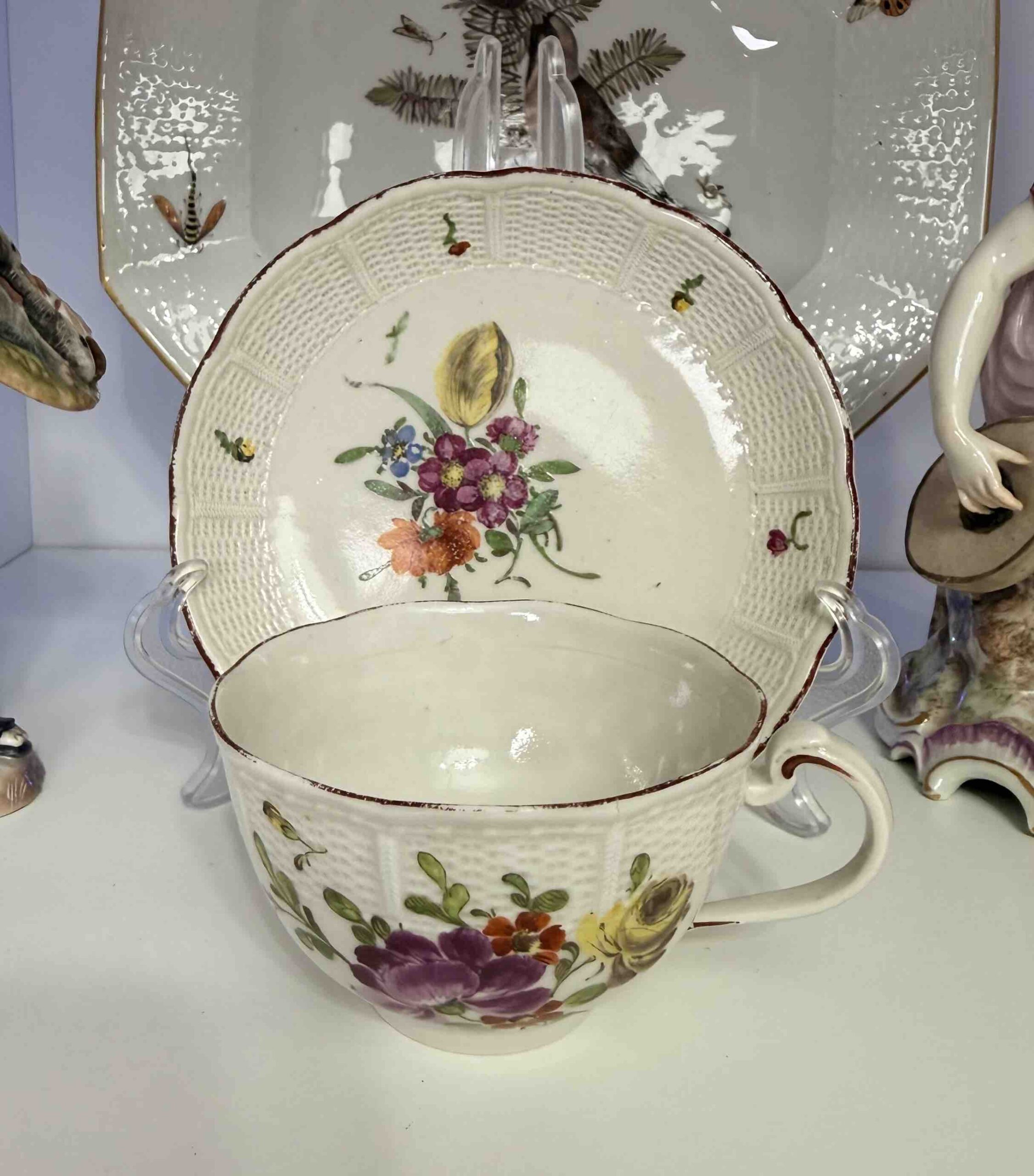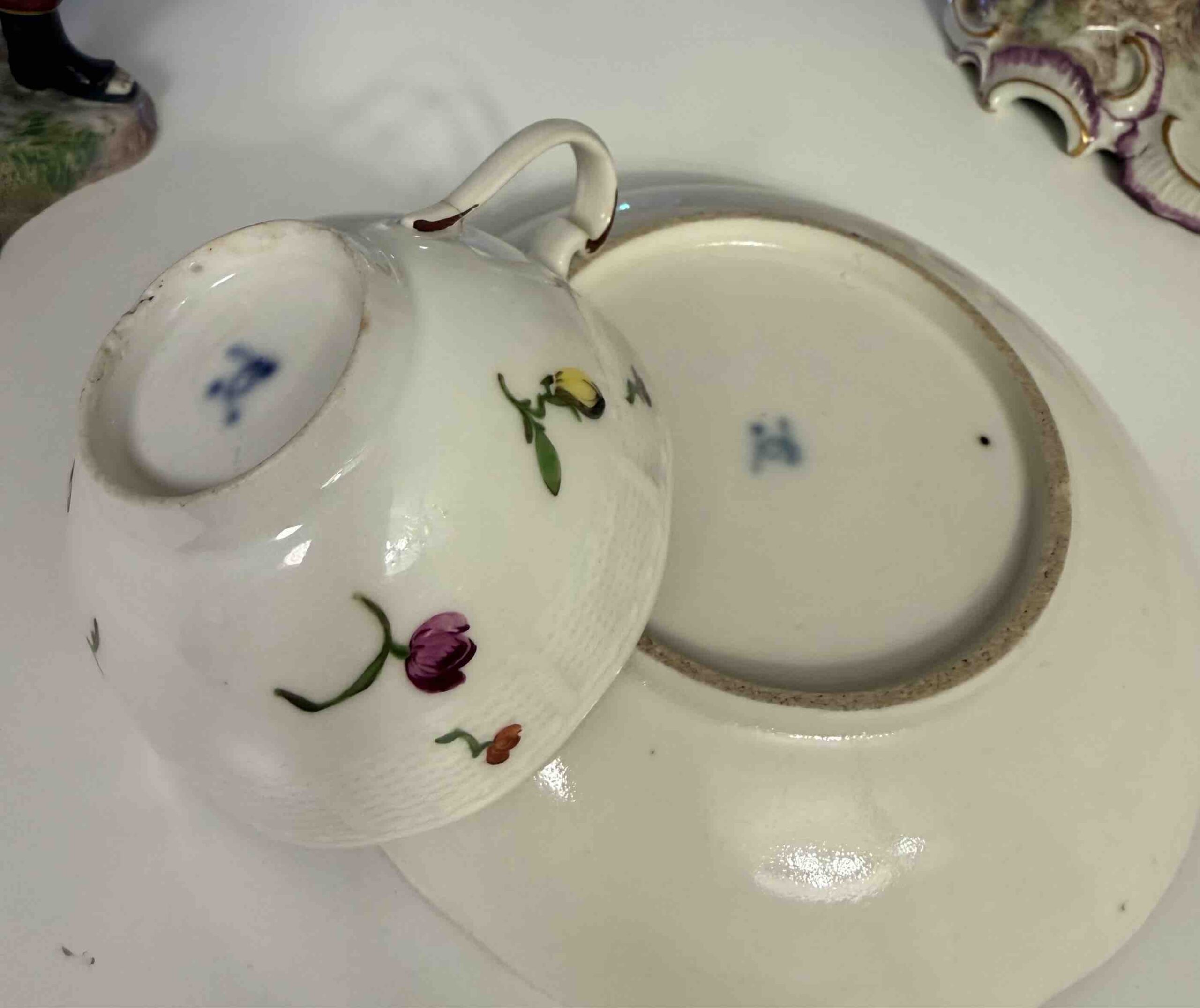 Spodeczki i filiżanki czasem gubią symetrię formy, posiadają drobne skazy i szary odcień porcelany. Szarawa masa porcelanowa z drobnymi skazami szkliwa, zgaszona tonacja barw, brak symetrii charakterystyczne są dla wyrobów Ludwigsburg z XVIII w. choć nie są regułą. Na uwagę zasługuje prezentowany przykład kompletu filiżanki i spodka wykonanych w podobnym przedziale czasowym, na którym wyraźnie dostrzec można różnicę odcieniu porcelany.
