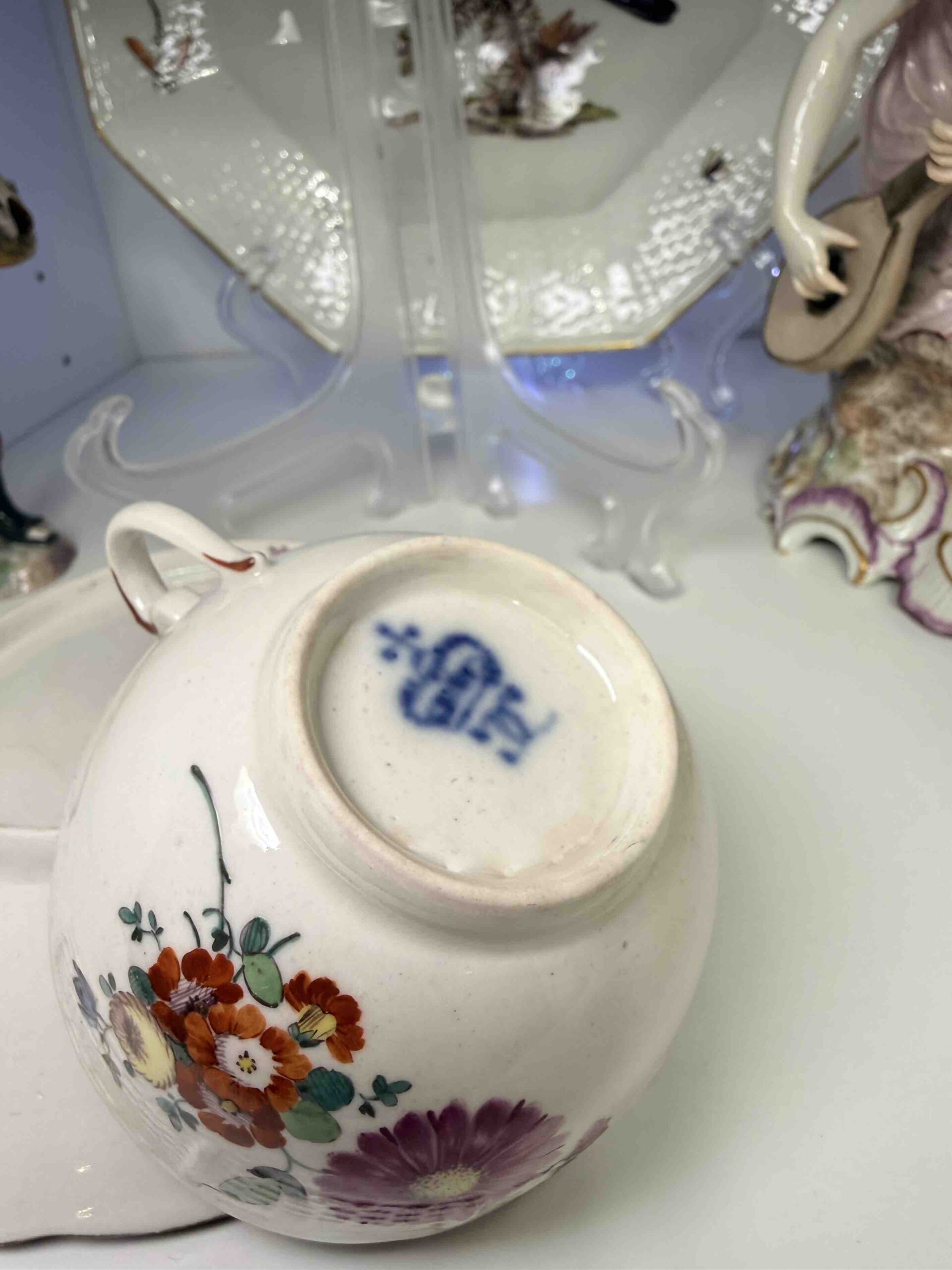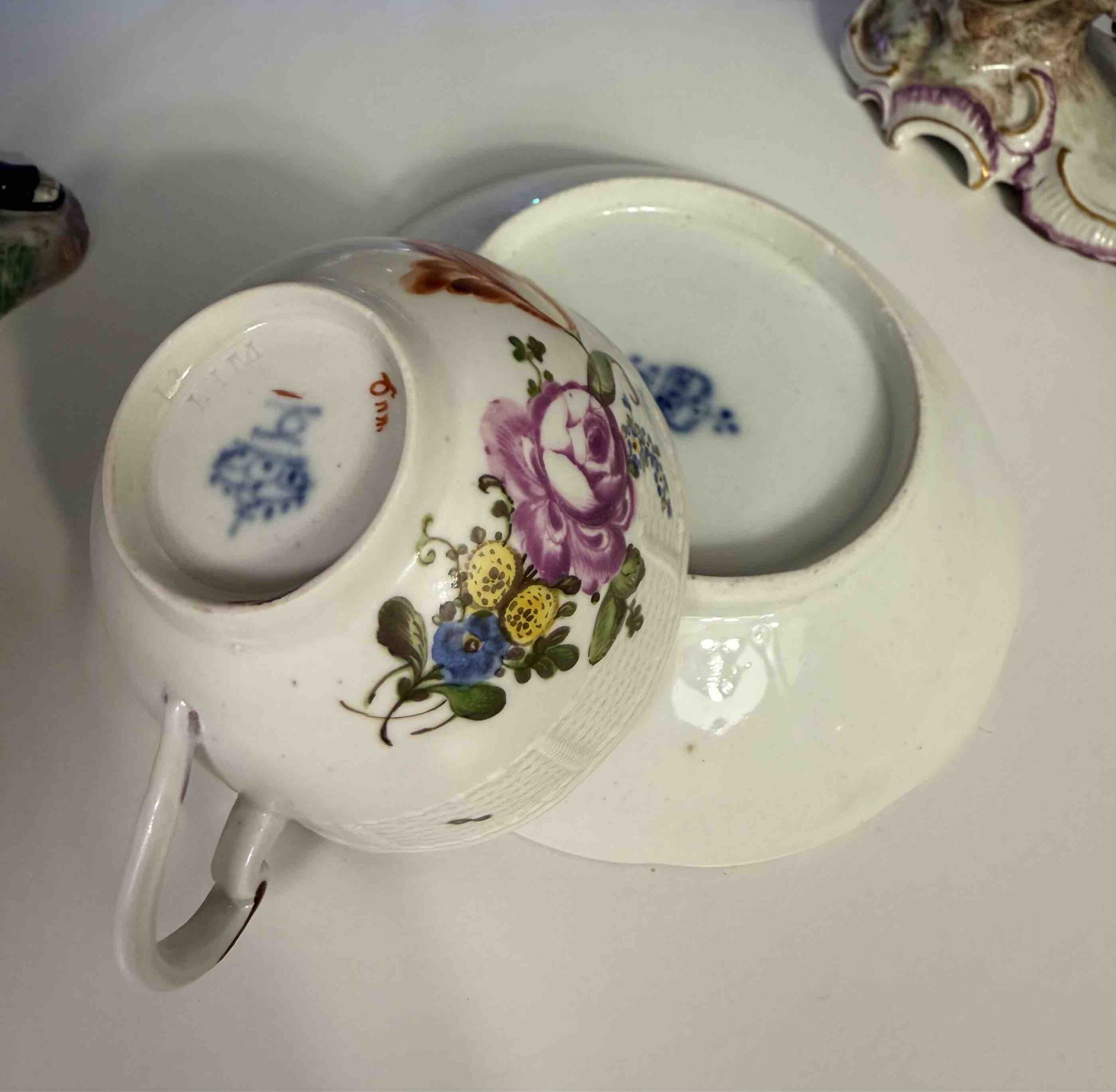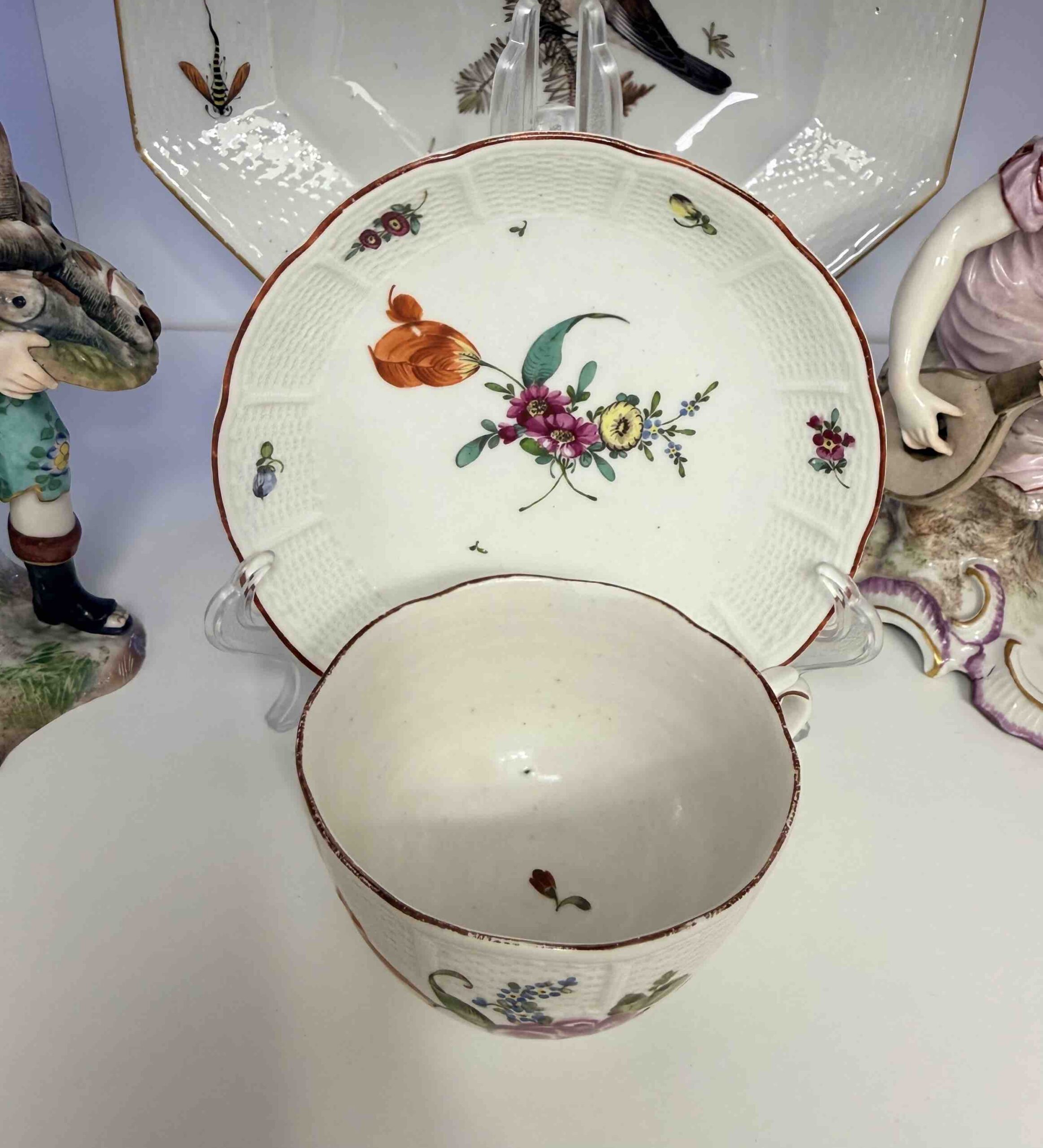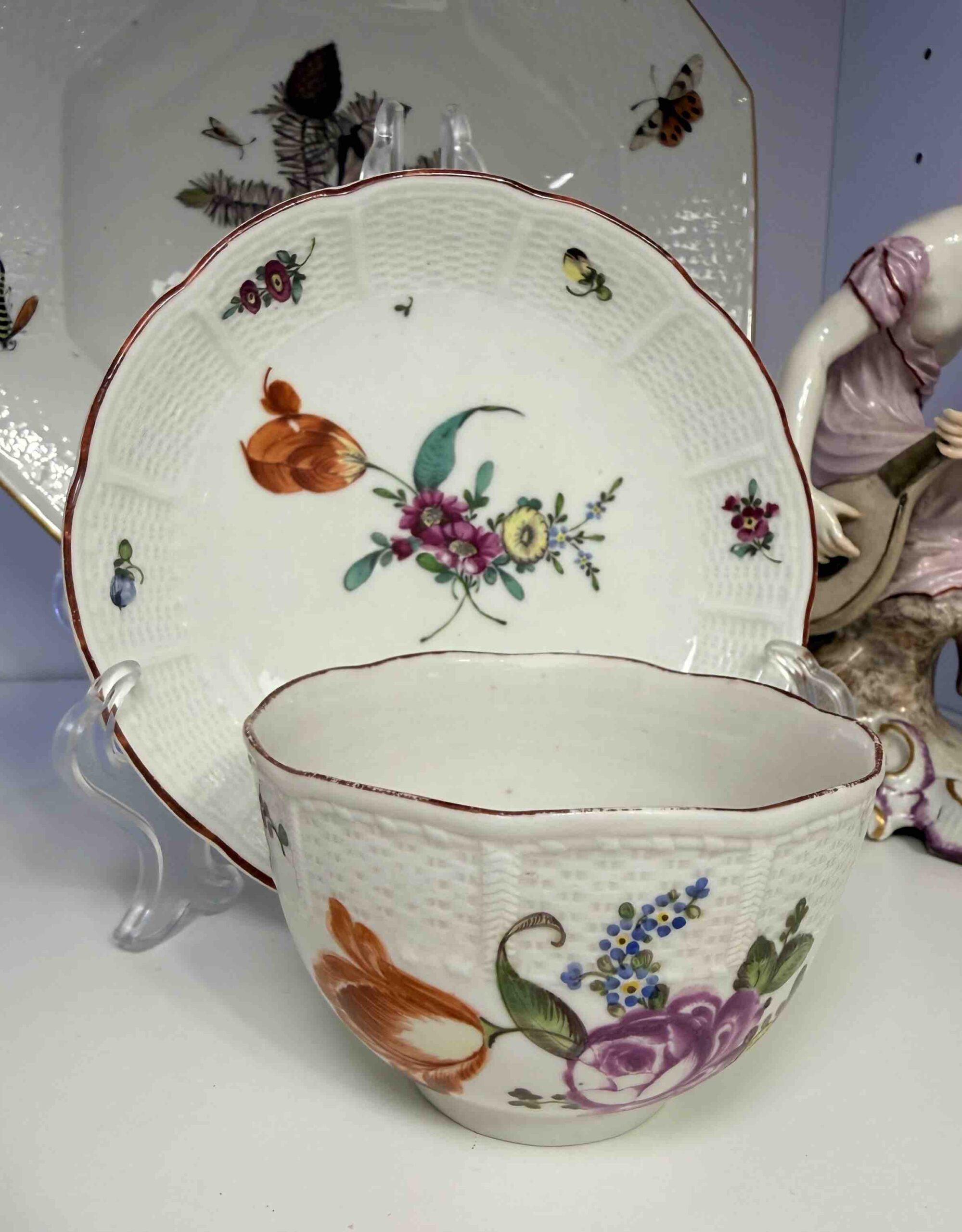 Spodeczki i filiżanki czasem gubią symetrię formy, posiadają drobne skazy i szary odcień porcelany. Szarawa masa porcelanowa z drobnymi skazami szkliwa, zgaszona tonacja barw, brak symetrii charakterystyczne są dla wyrobów Ludwigsburg z XVIII w. choć nie są regułą. Na uwagę zasługuje prezentowany przykład kompletu filiżanki i spodka wykonanych w podobnym przedziale czasowym, na którym wyraźnie dostrzec można różnicę odcieniu porcelany.