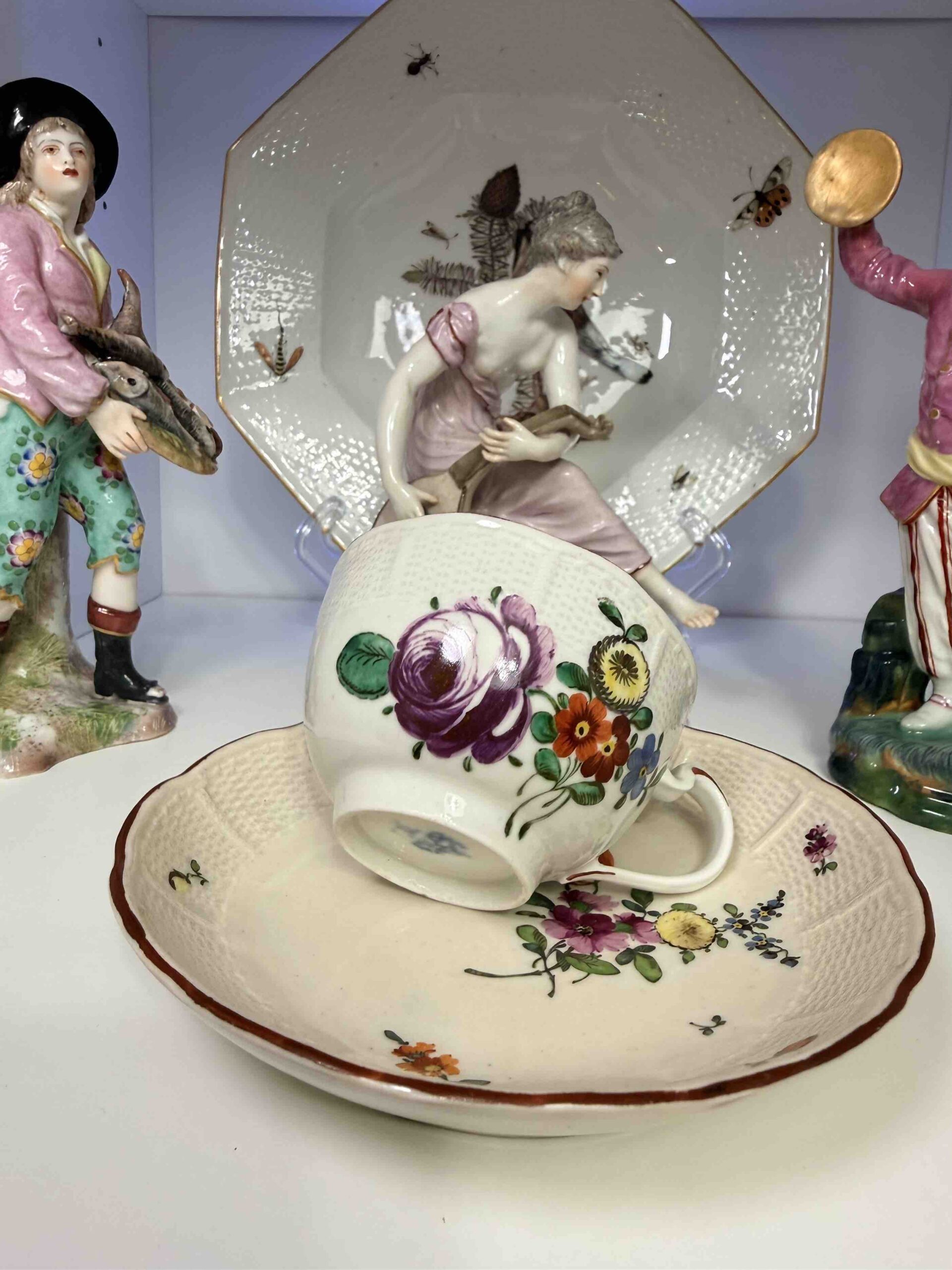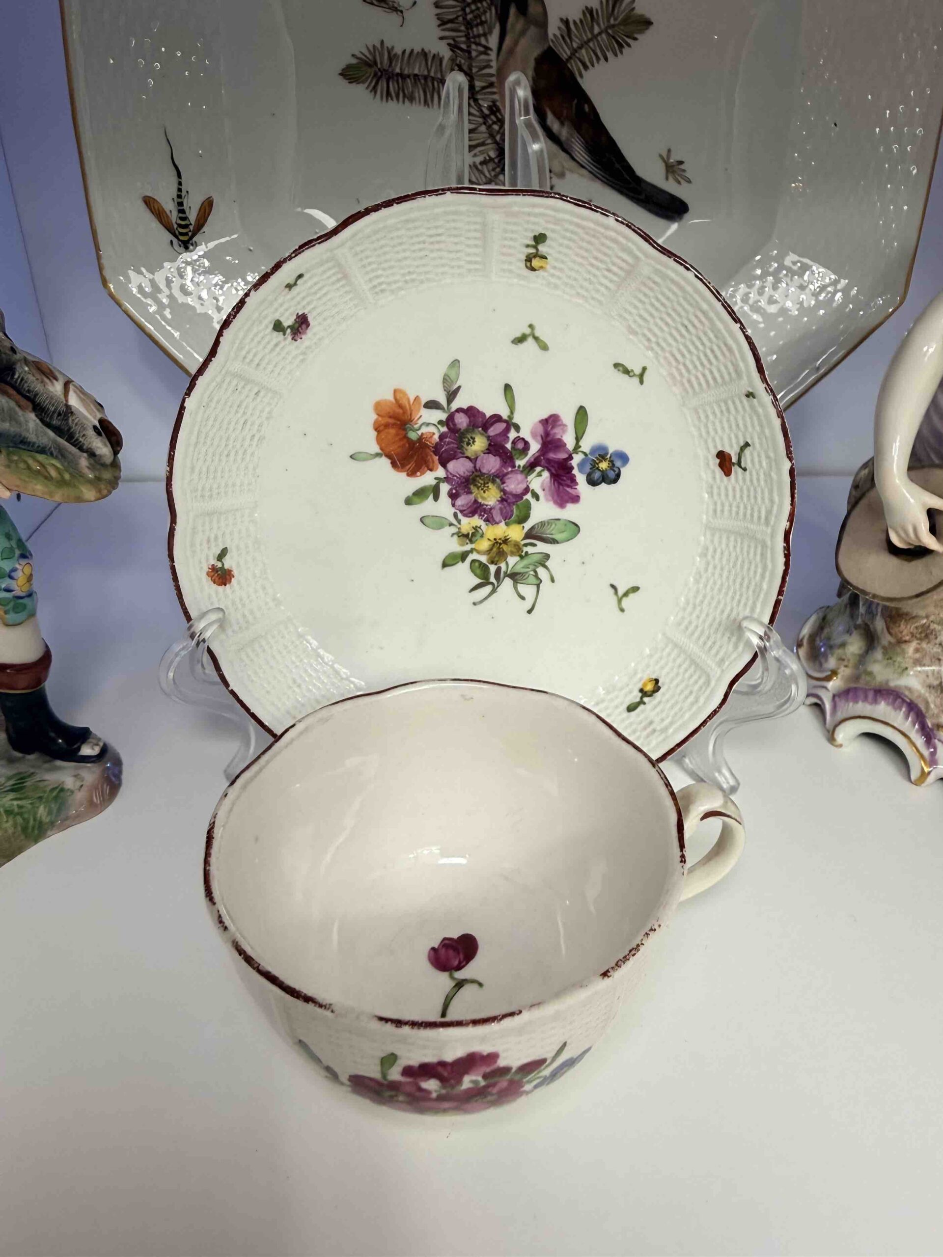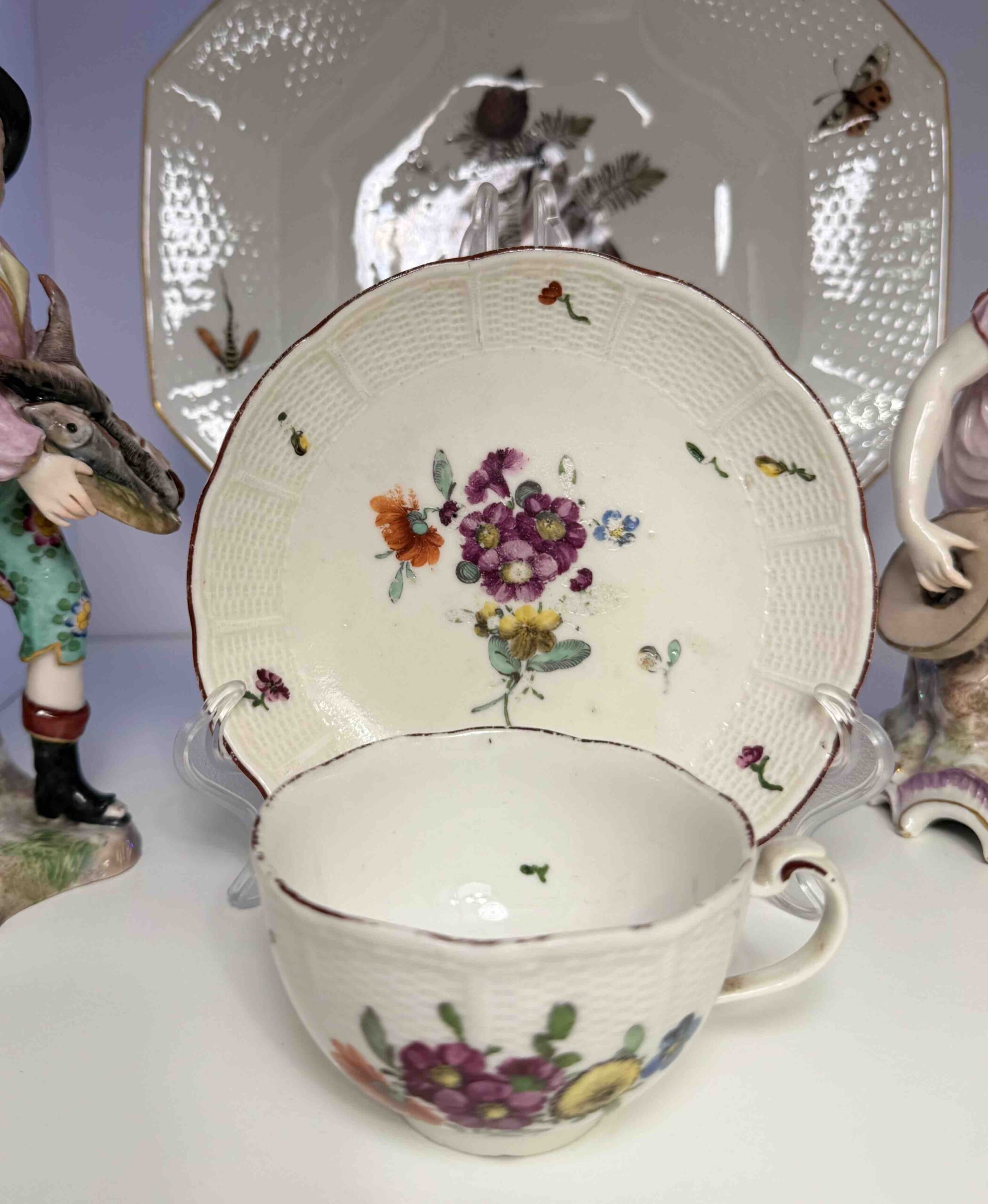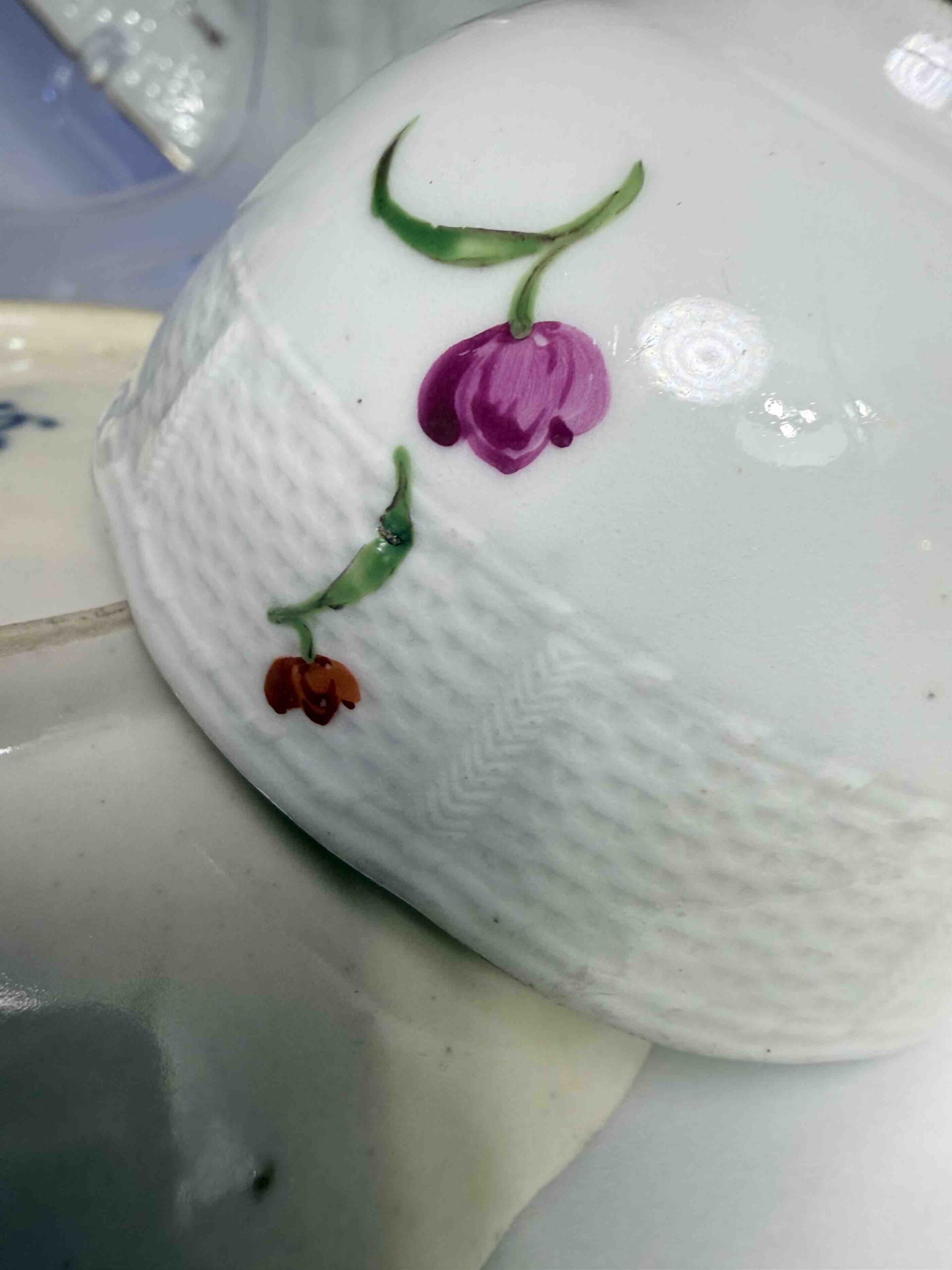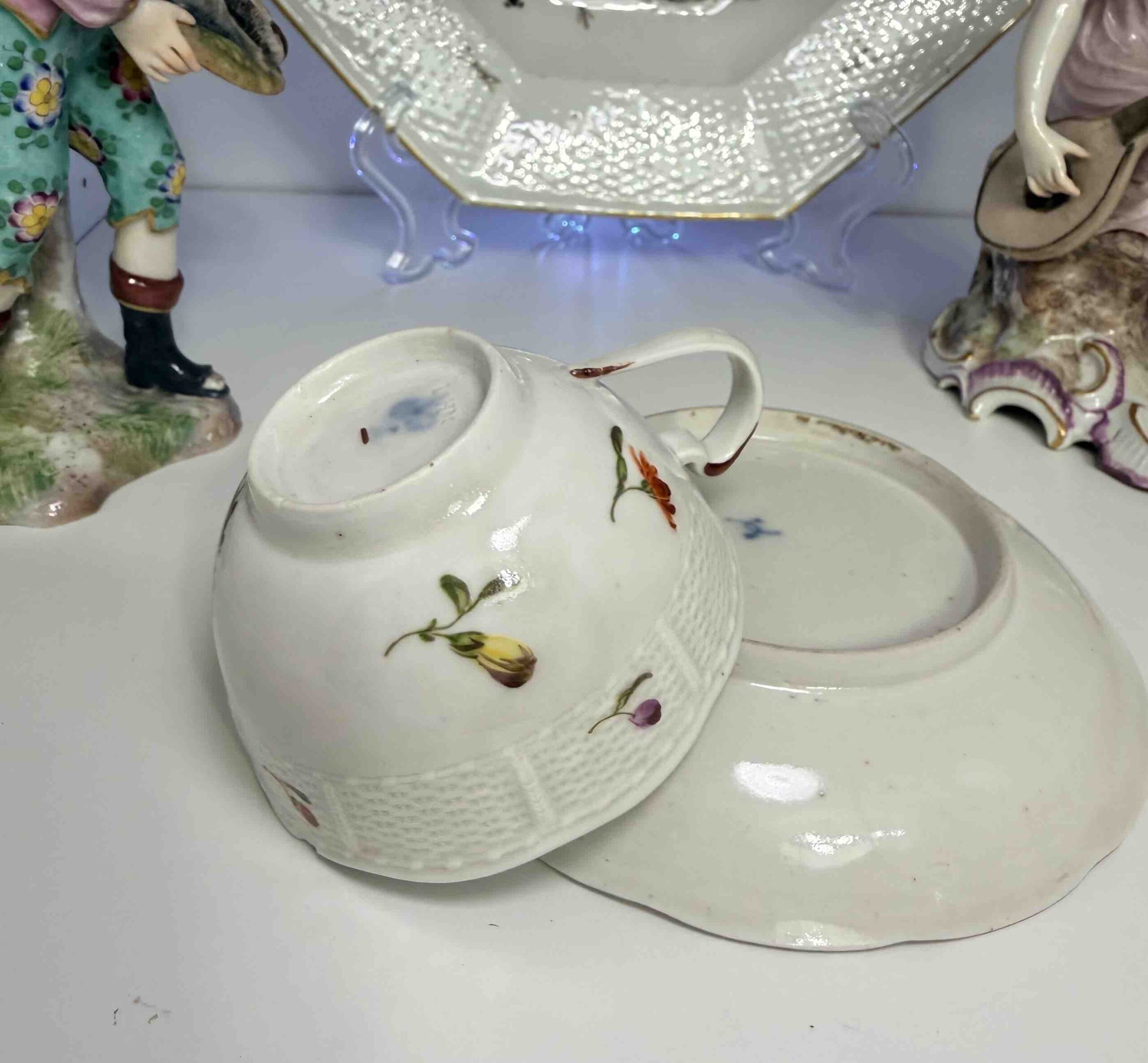 Spodeczki i filiżanki czasem gubią symetrię formy, posiadają drobne skazy i szary odcień porcelany. Szarawa masa porcelanowa z drobnymi skazami szkliwa, zgaszona tonacja barw, brak symetrii charakterystyczne są dla wyrobów Ludwigsburg z XVIII w. choć nie są regułą. Na uwagę zasługuje prezentowany przykład kompletu filiżanki i spodka wykonanych w podobnym przedziale czasowym, na którym wyraźnie dostrzec można różnicę odcieniu porcelany.