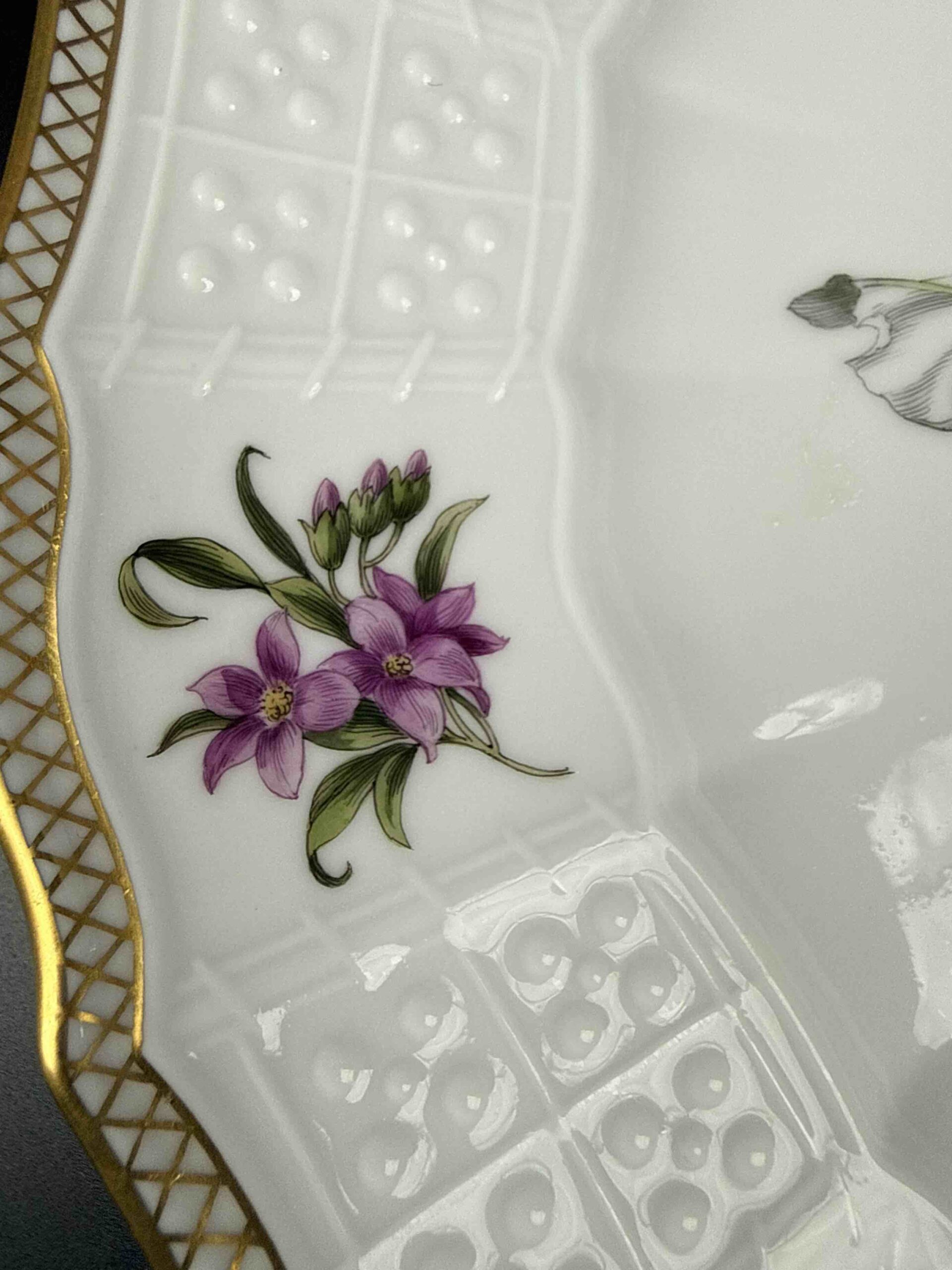 sygnowane Höchst. Każdy talerz jest podpisany przez malarza, autora malatury.