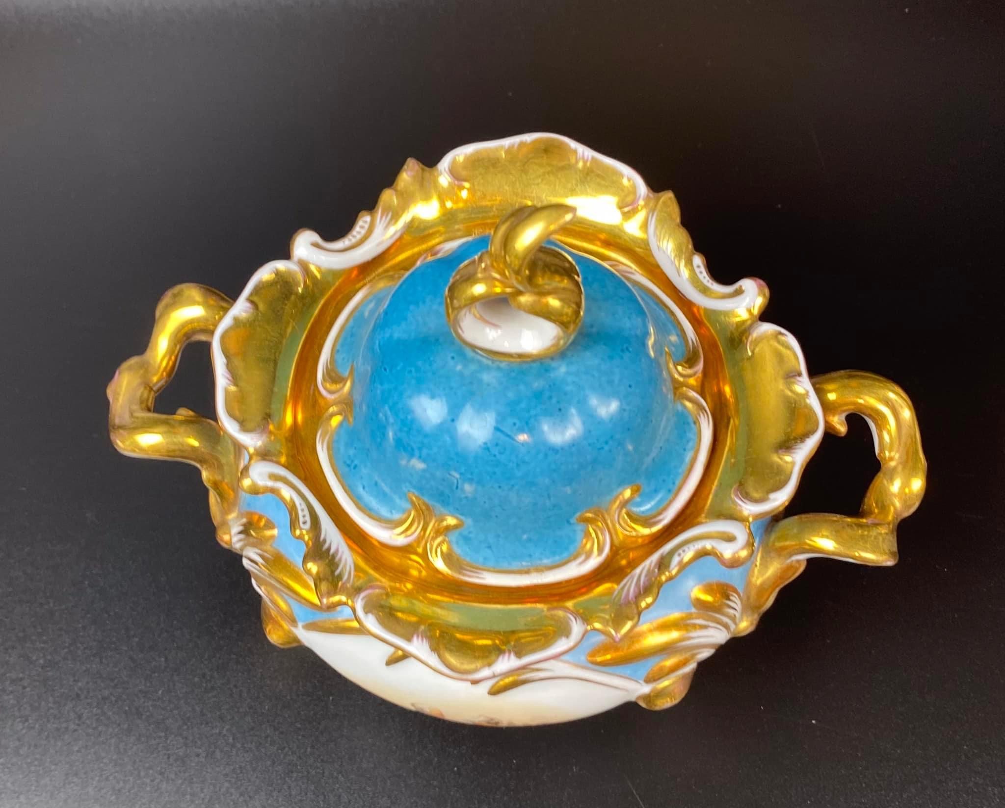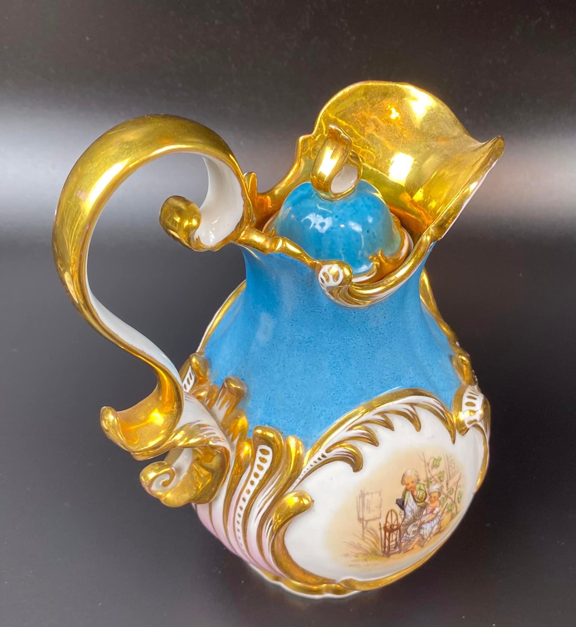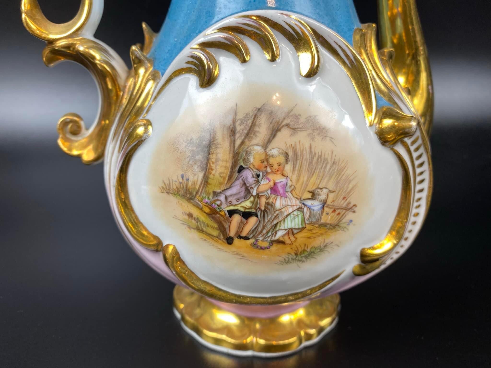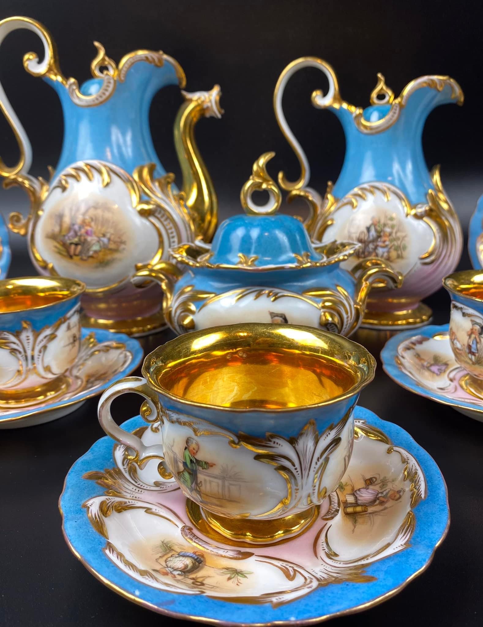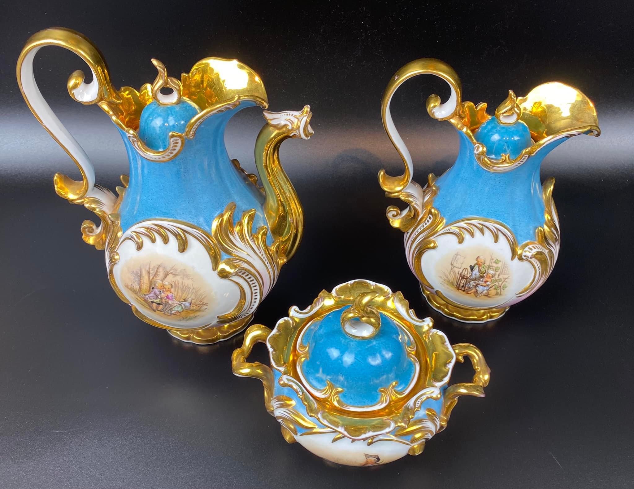 Bogato złocony, z minimalnymi wytarciami złoceń. Załączyłam dużo zdjęć, na nich widać stan serwisu.