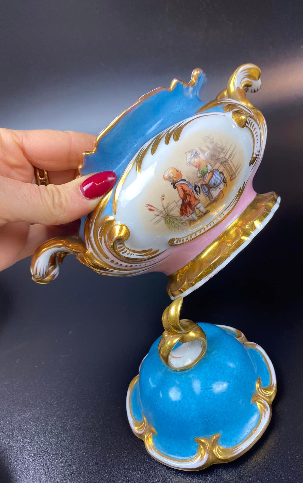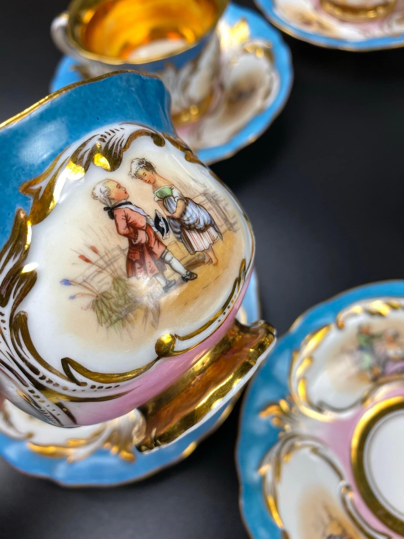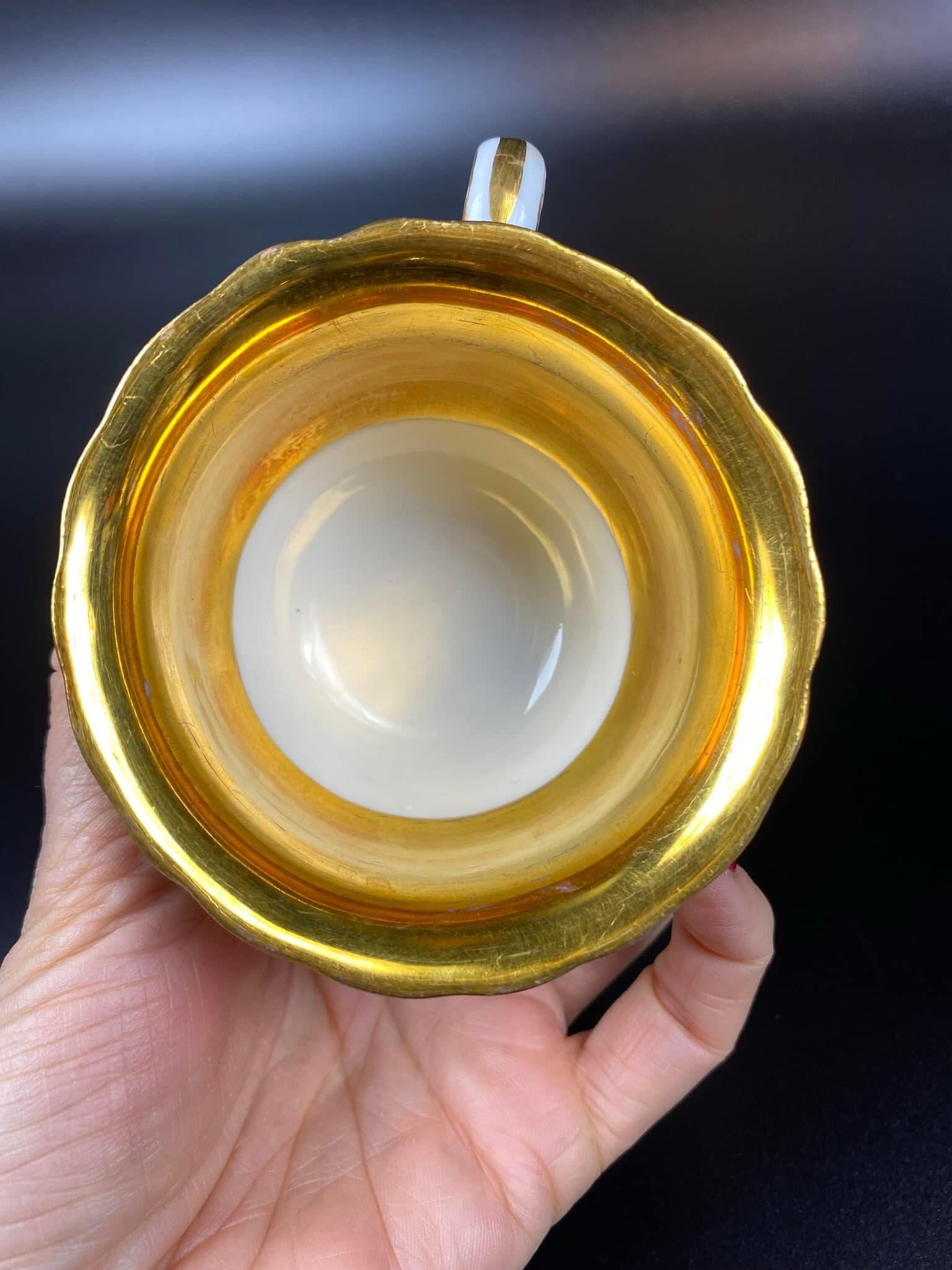 Jedna filiżanka ma maleńki ubytek na rancie, w ramach ceny na życzenie kupującego mogę wysłać do konserwatora zabytków.