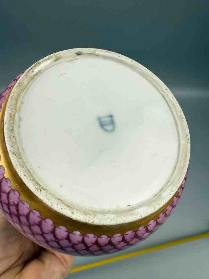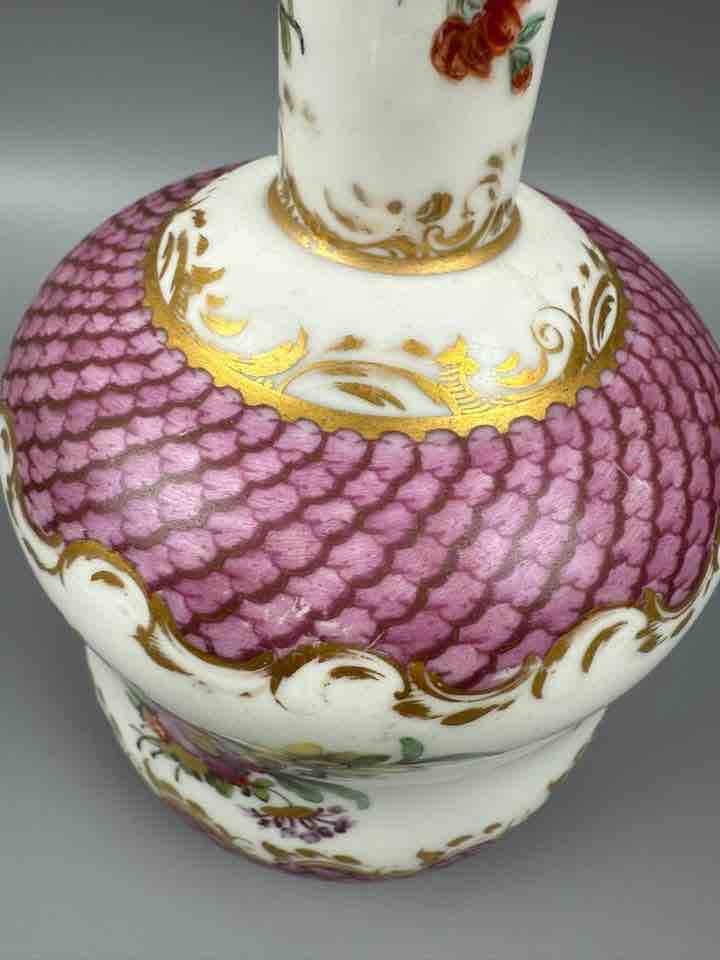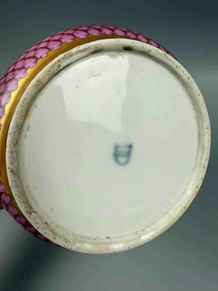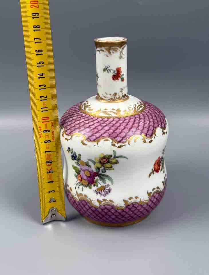 Unikatowa porcelanowa butelka Cesarska Manufaktura Wiedeńska – (Manufaktura Kaiserliche Porzellanmanufaktur Wien) sygnowana – charakterystycznym niebieskim podszkliwnym znakiem tarczy, potocznie zwanej ulem. (Bindenschild). Czas powstania ok. 1755–1770 r.