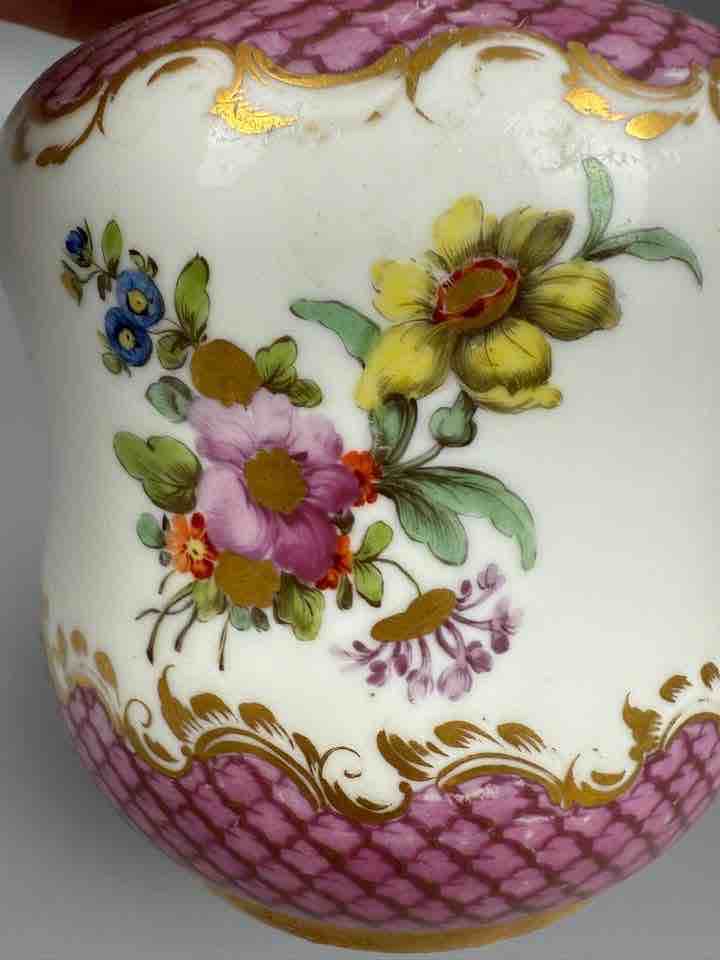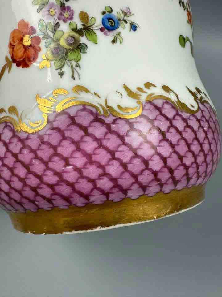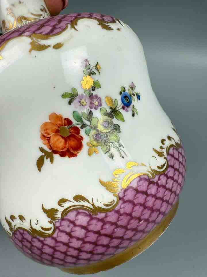 Dekorowana purpurową łuską ze złoceniami rocaille oraz bukietami kwiatowymi.