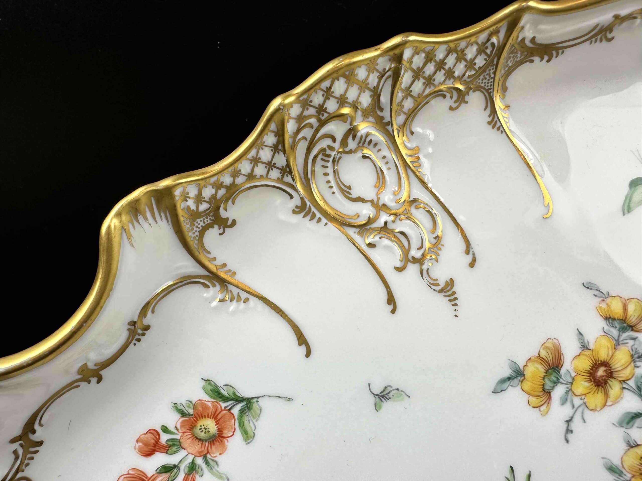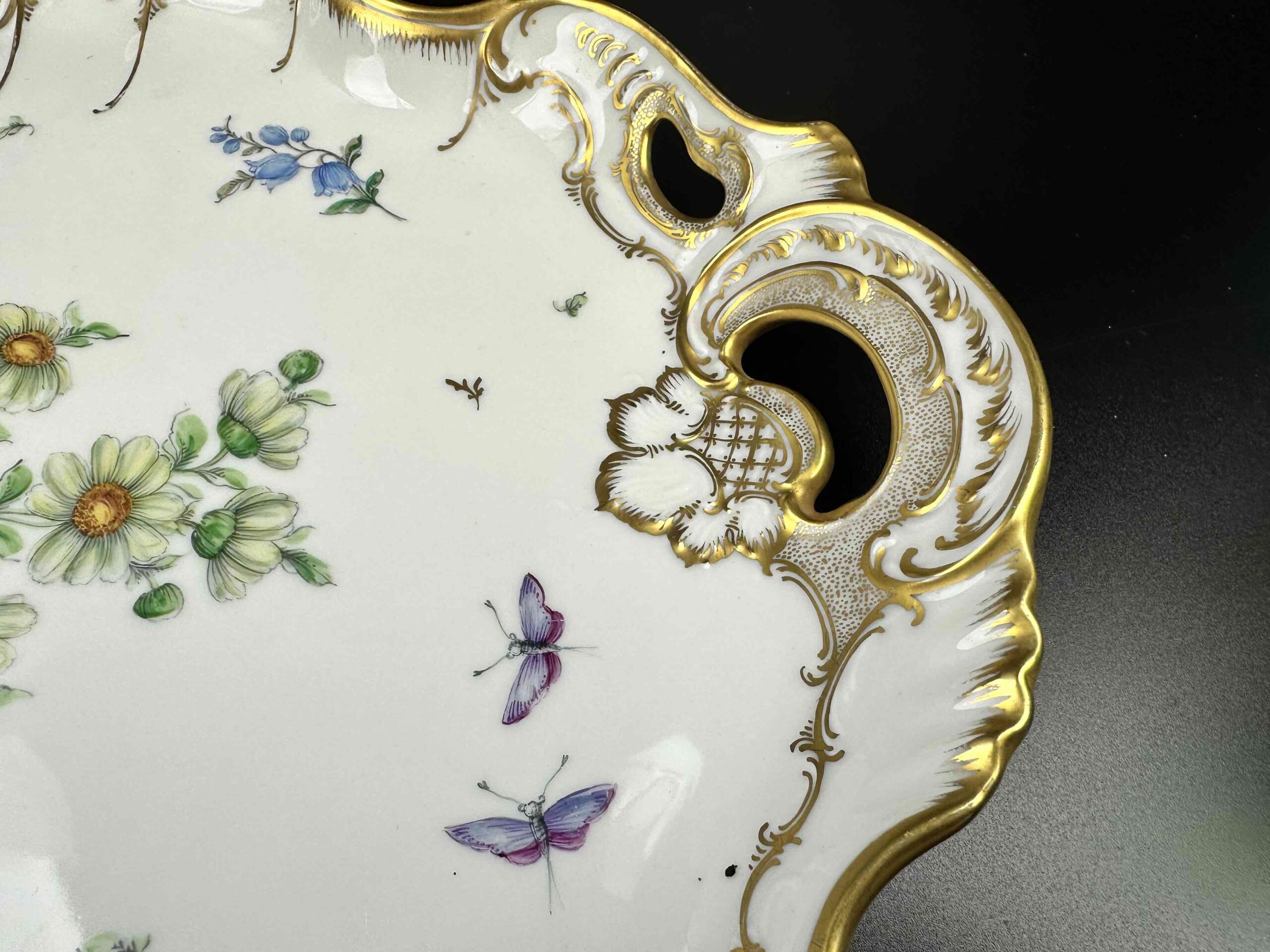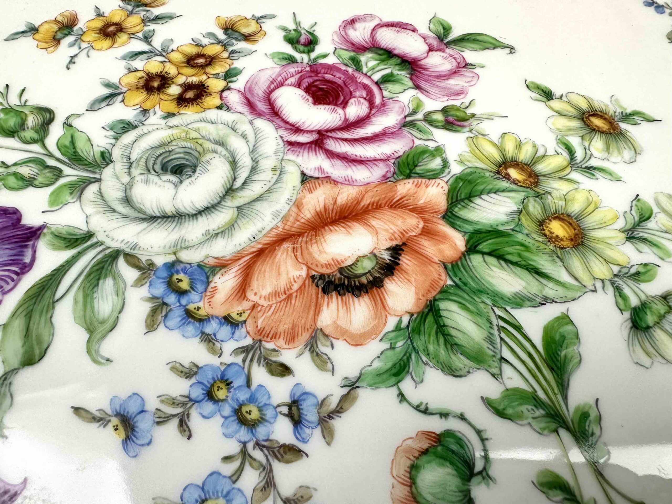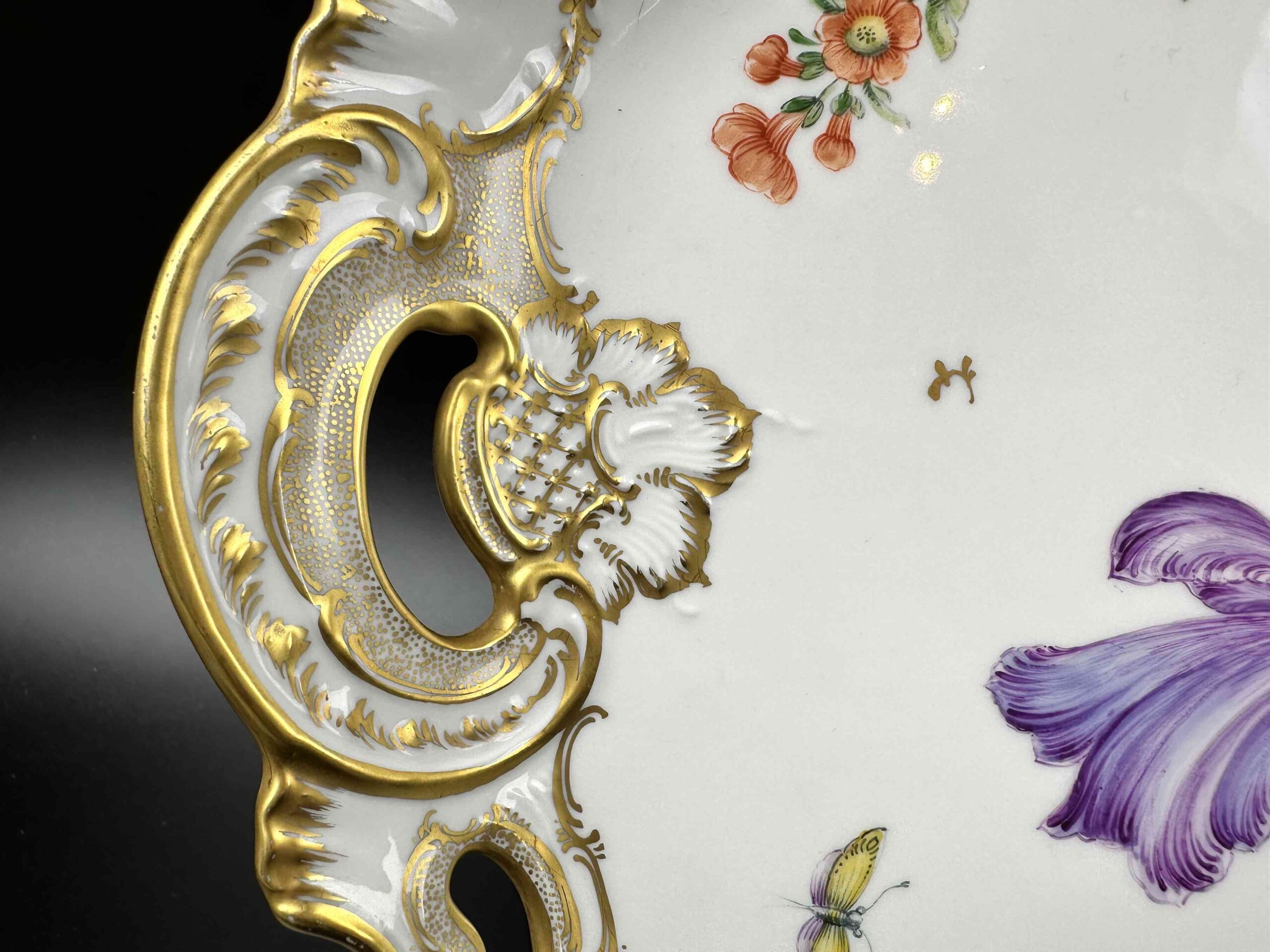 Dekoracja bogata w złocenia i motyw europejskich kwiatów ciętych w towarzystwie owadów. Stan zachowana – bez wad .