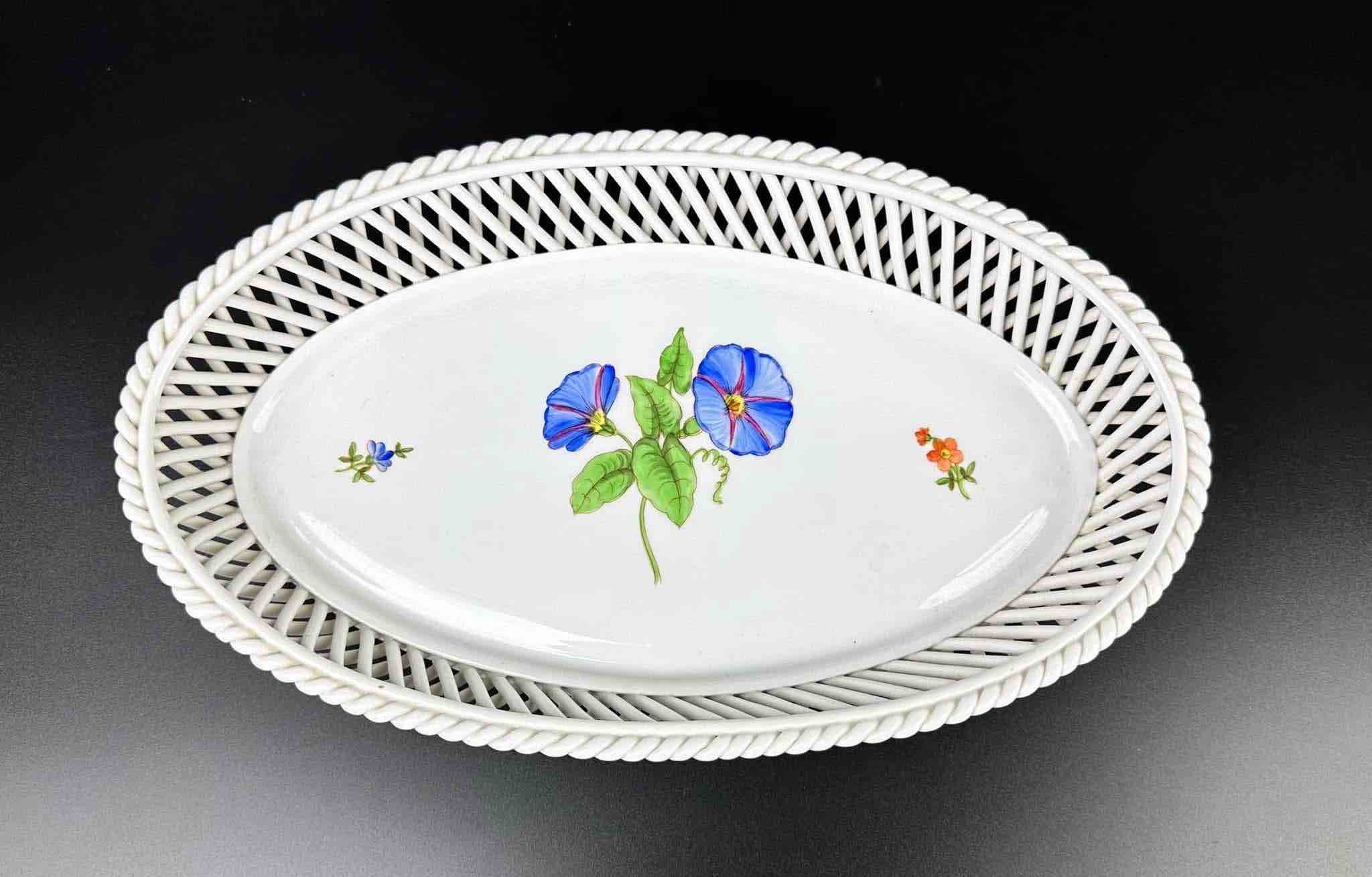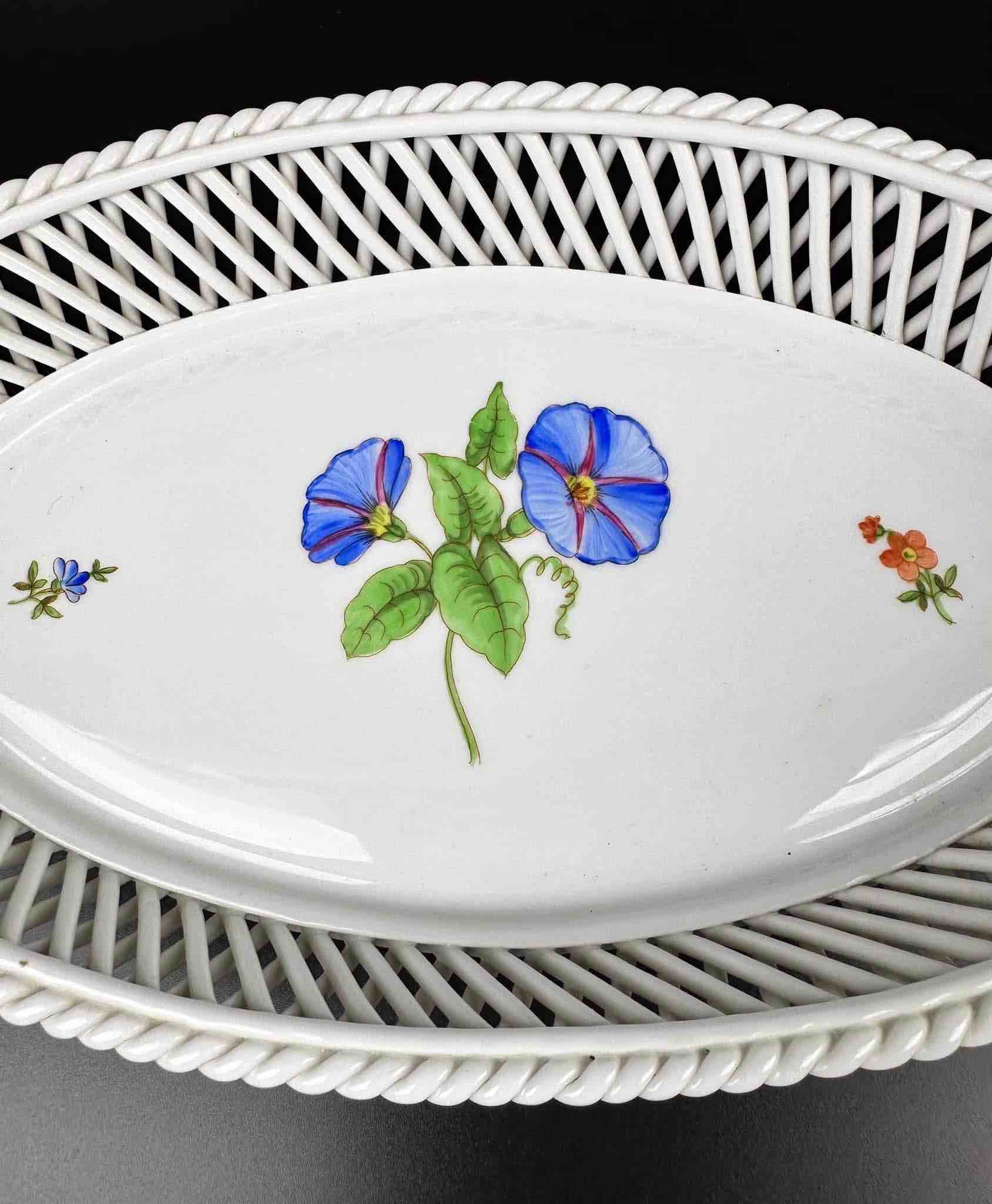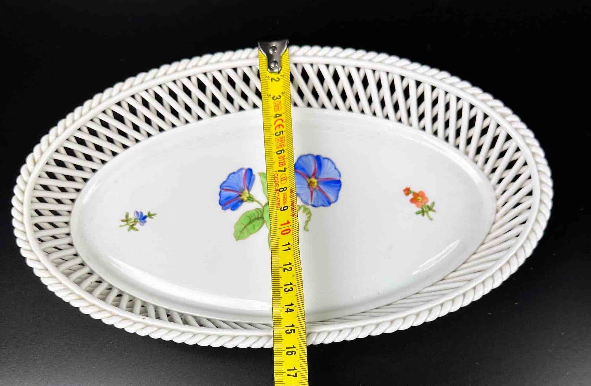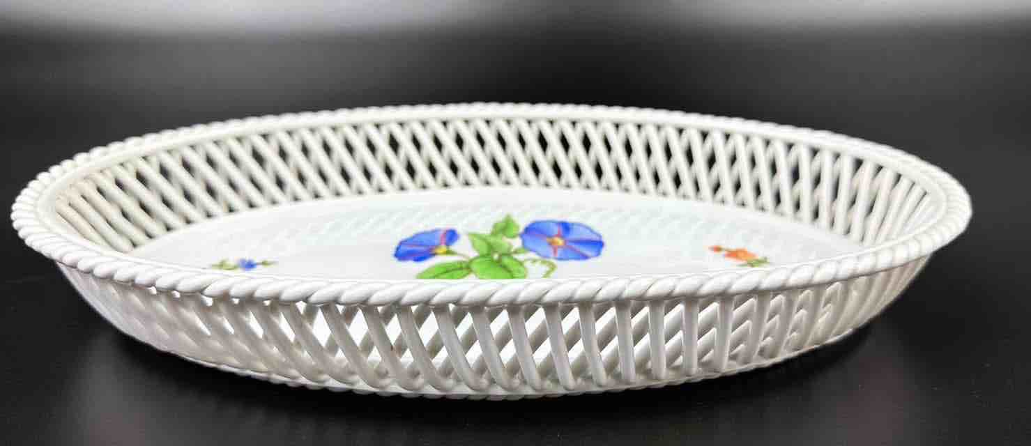Wysokogatunkowy Herend piękny koszyk ażur w towarzystwie delikatnych kwiatów polnych Dla kochających minimalizm w zdobieniu a zarazem elegancję formy.
