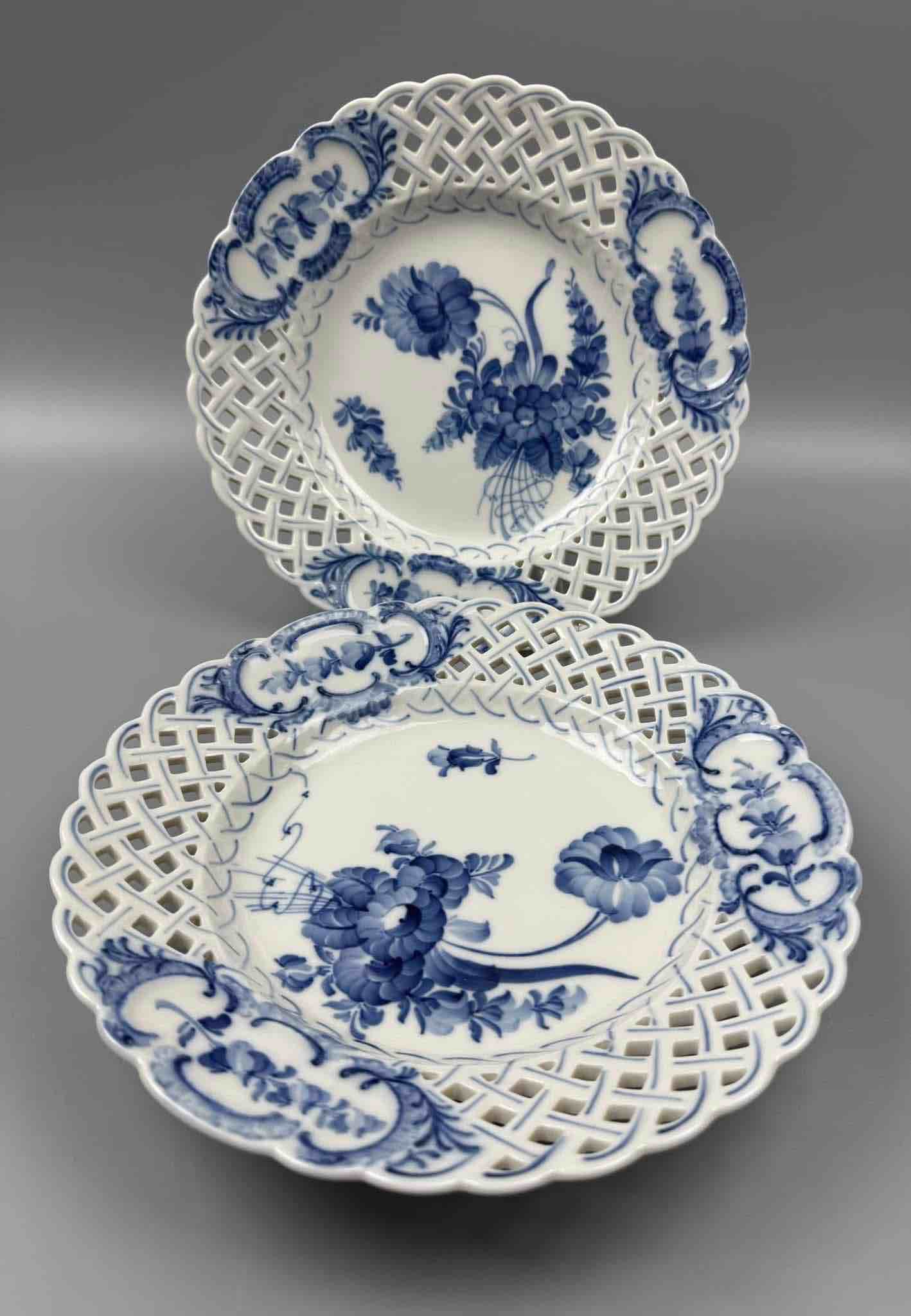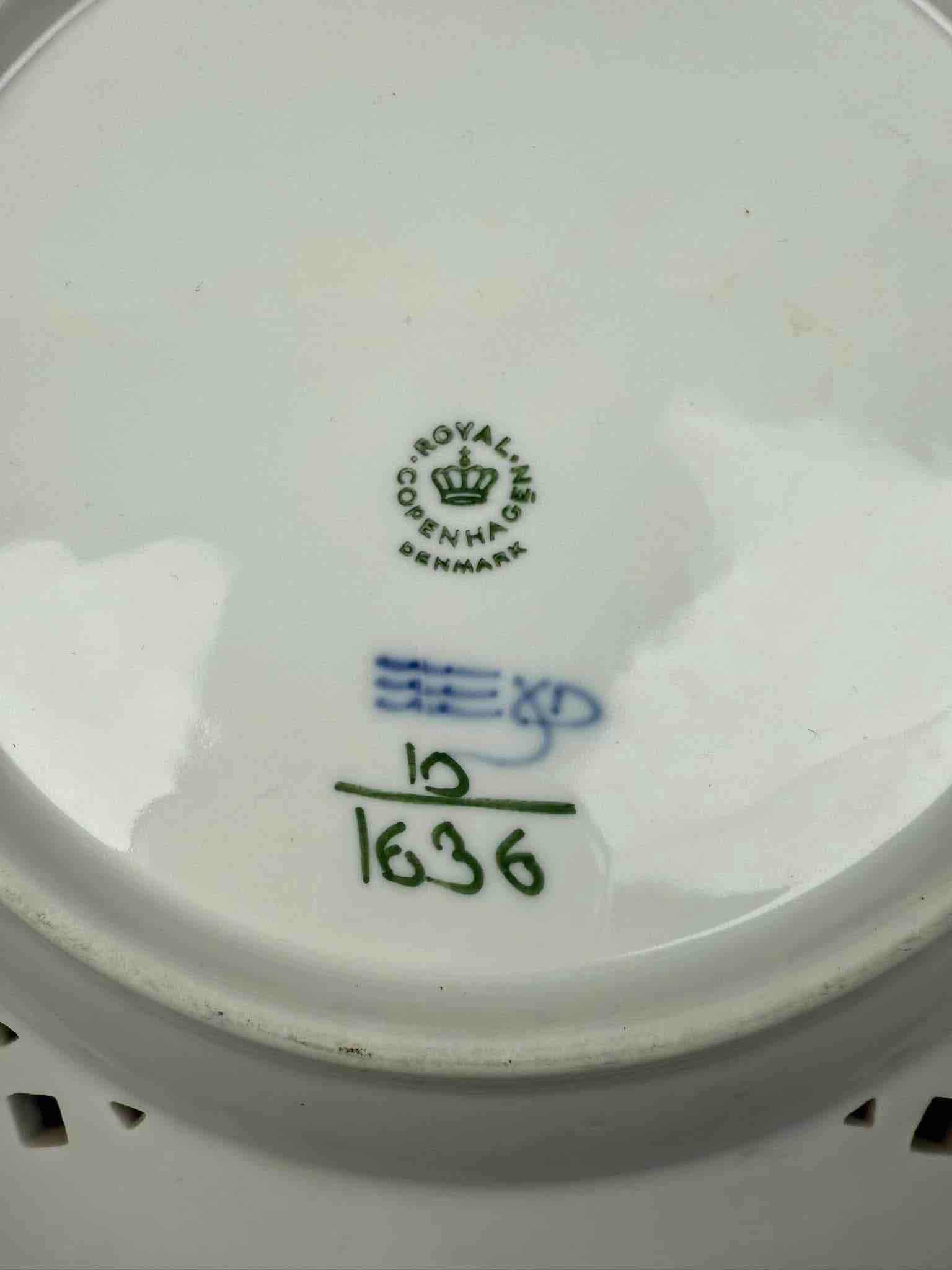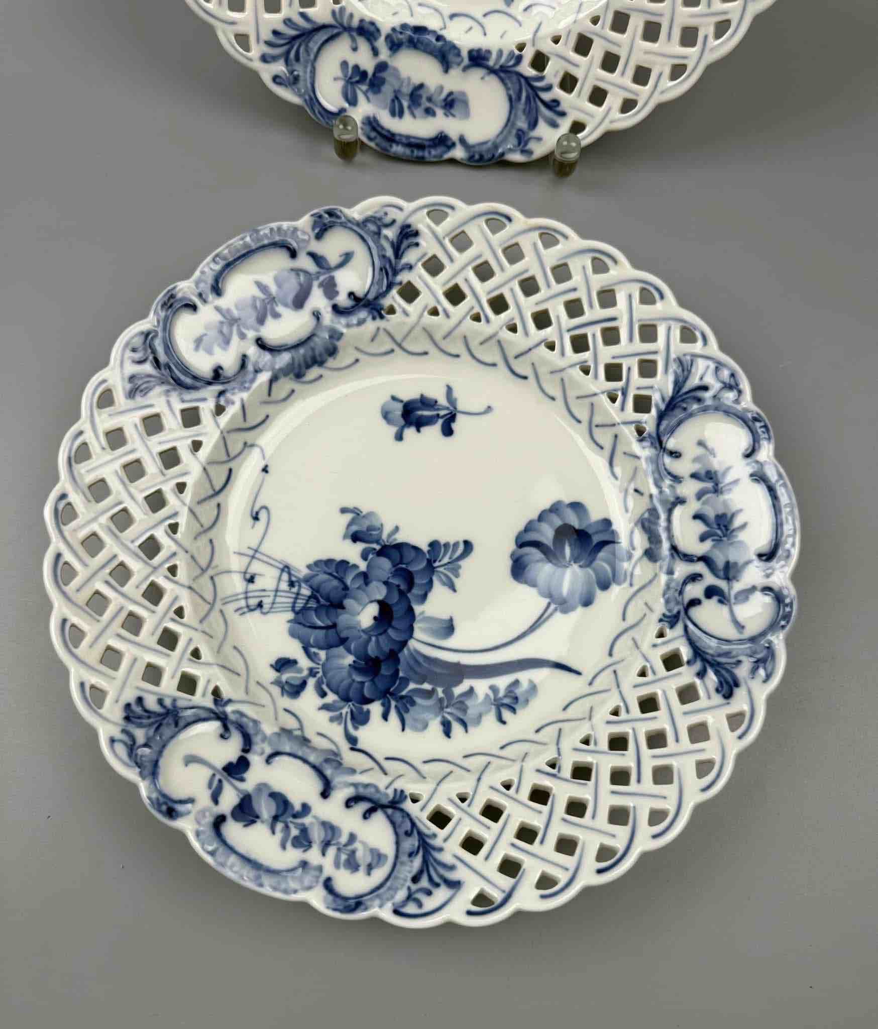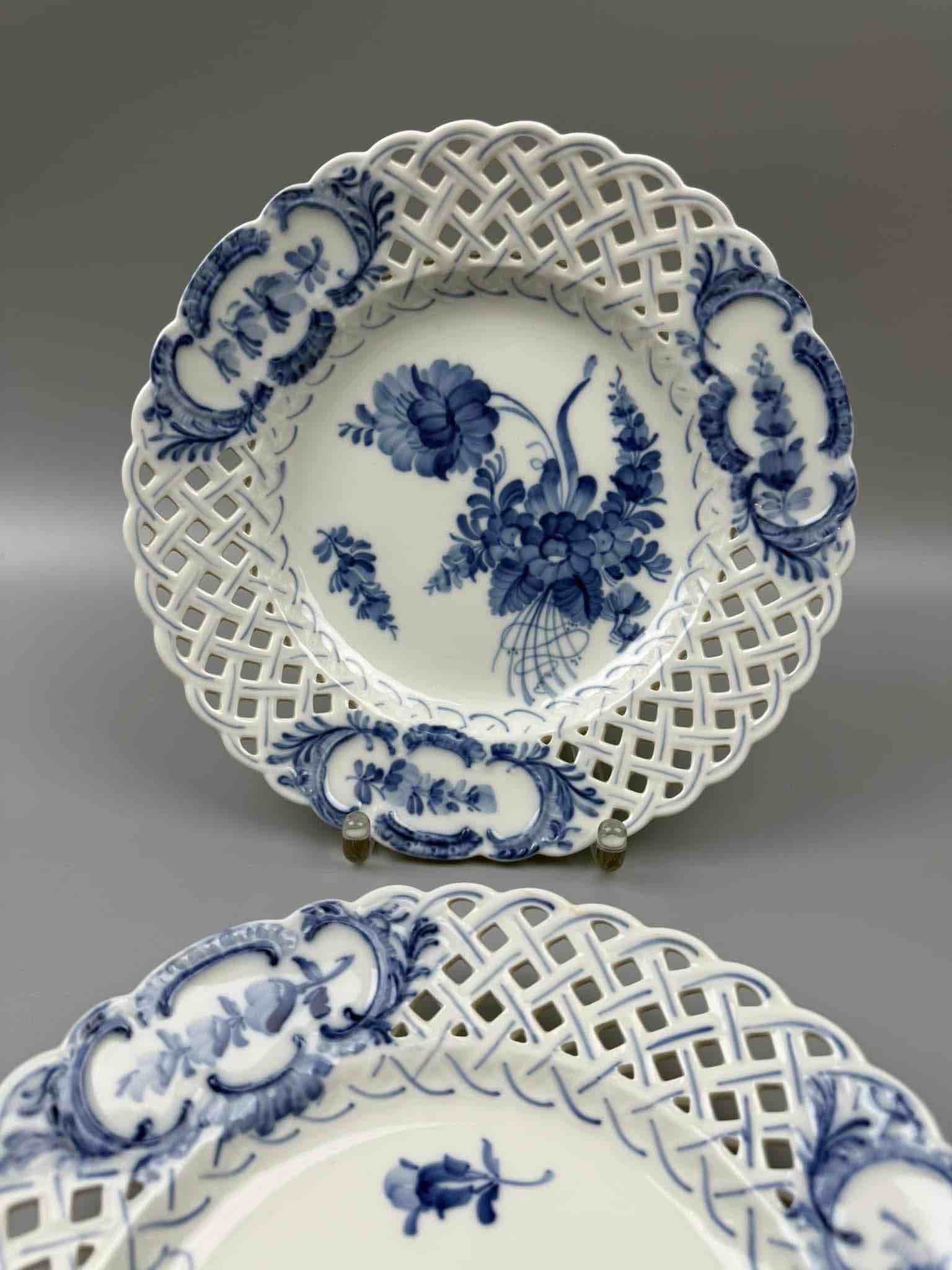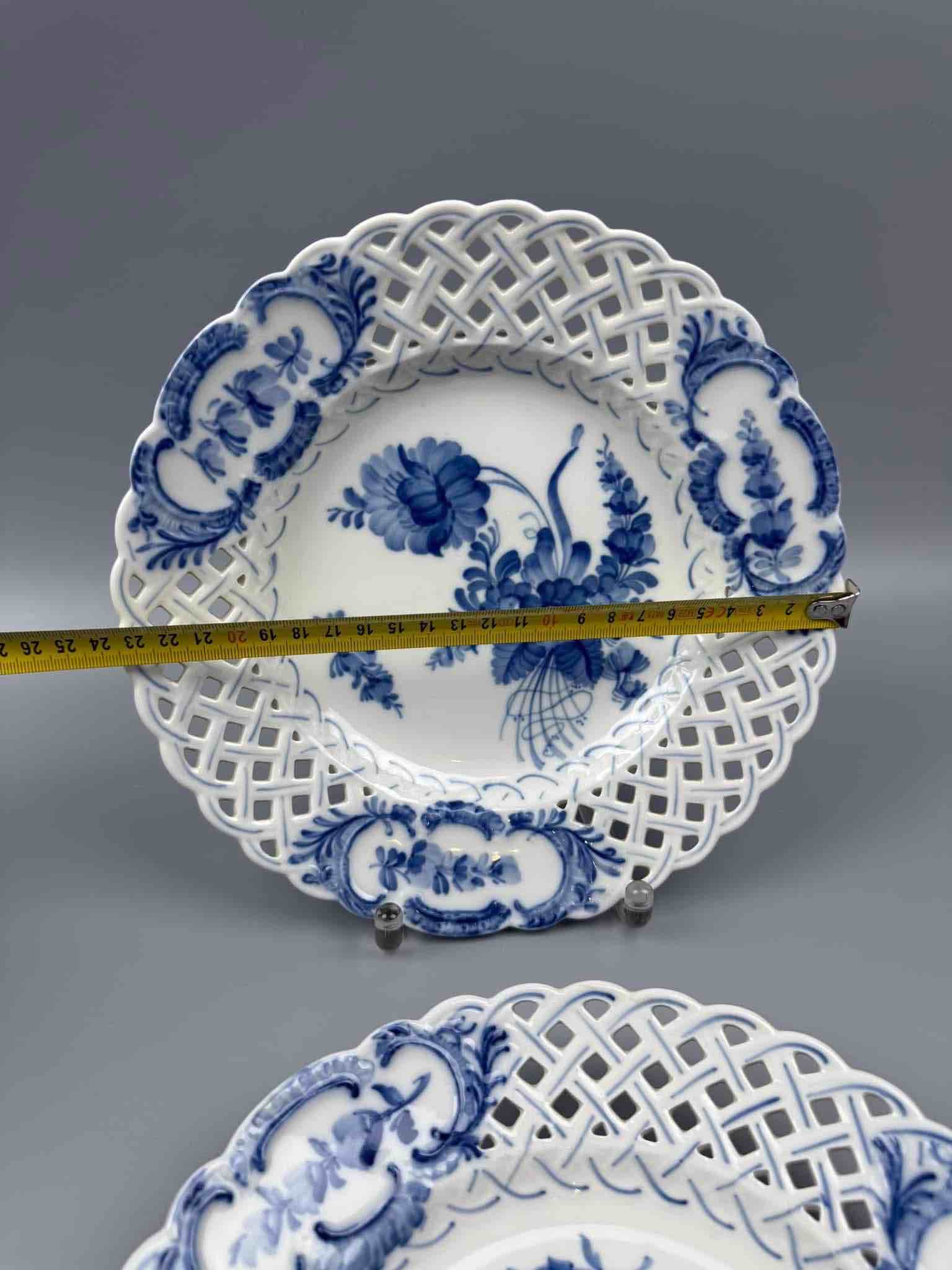 Royal Kopenhaga połowa XX w piękny ażur w kobalcie x 2 szt. porcelana wysokiej jakości, biała bez wad z połyskiem Nie mają wad