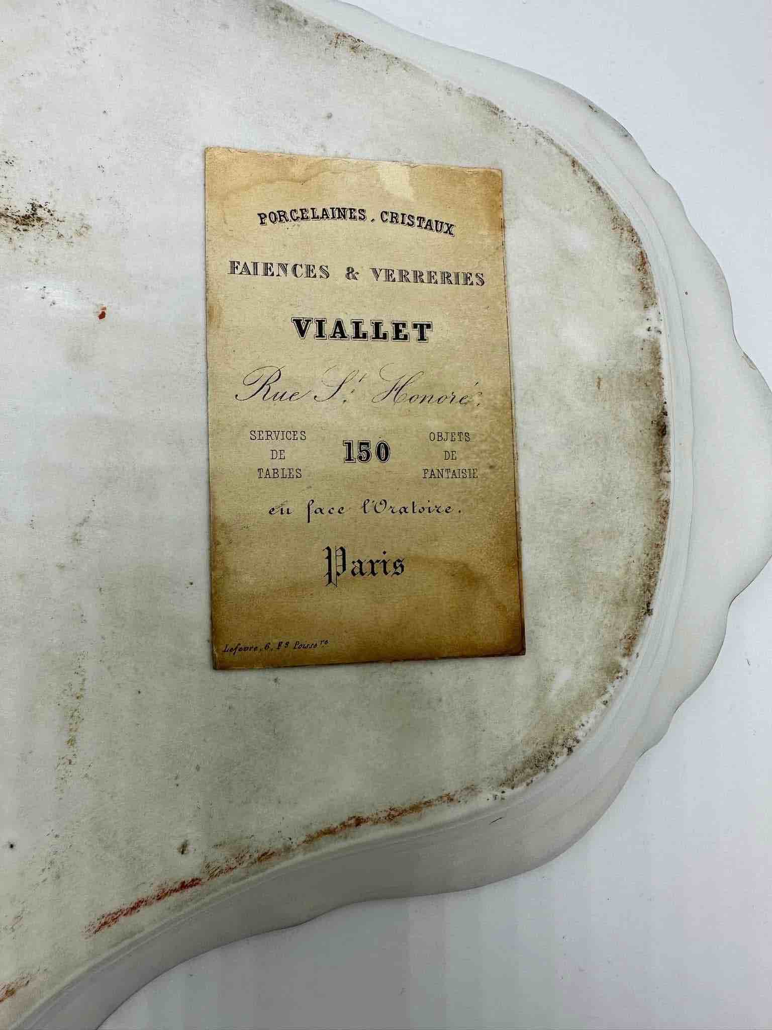 Taca na spodniej stronie posiada oznaczenia paryskiego domu sprzedaży antyków.