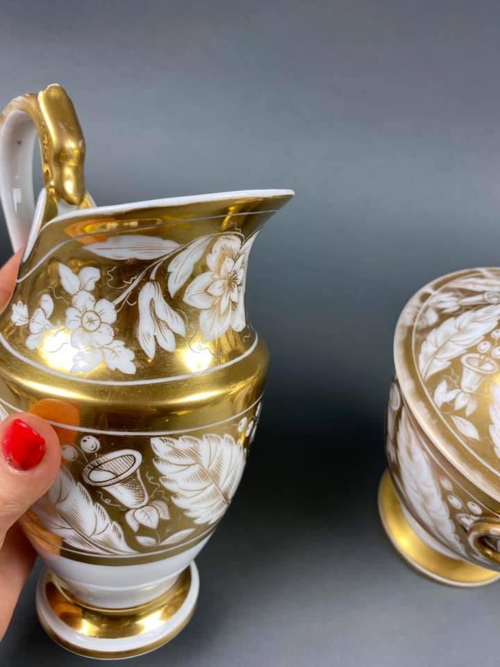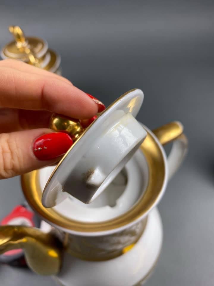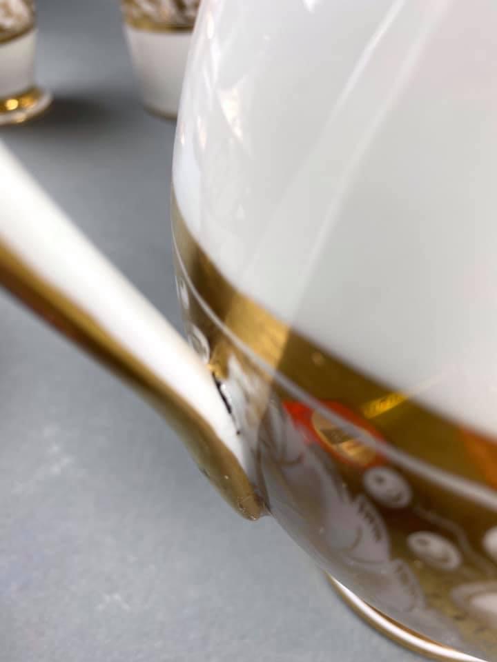 Bogato złocone elementy, stara porcelana posiadająca miejscami drobne fabryczne wady