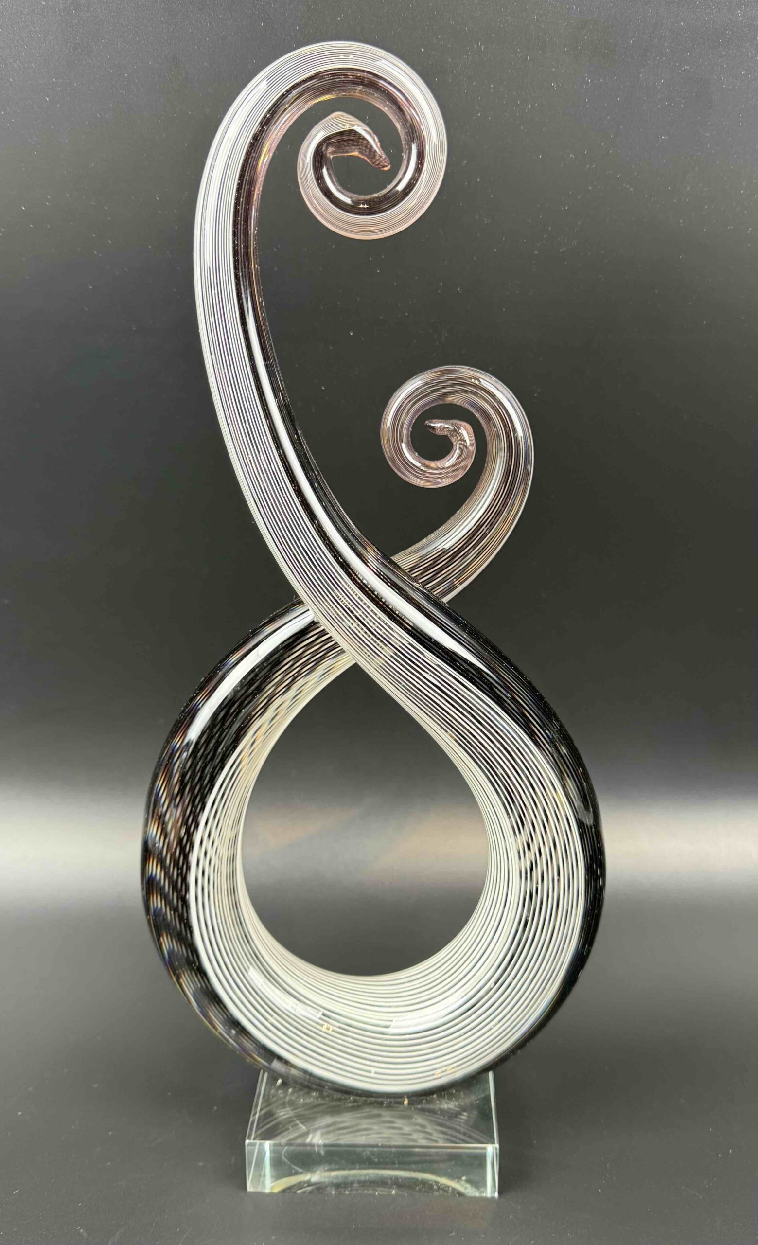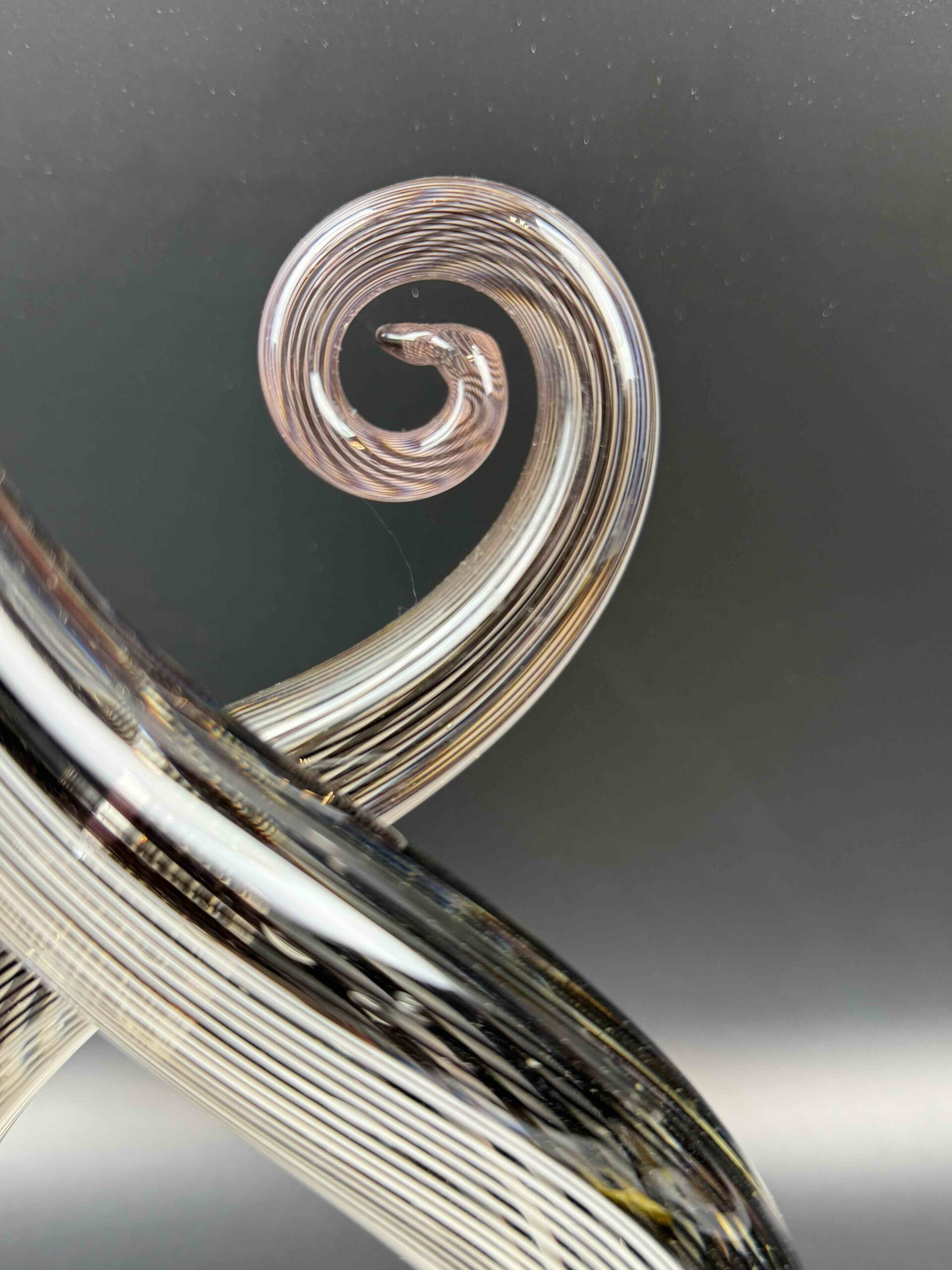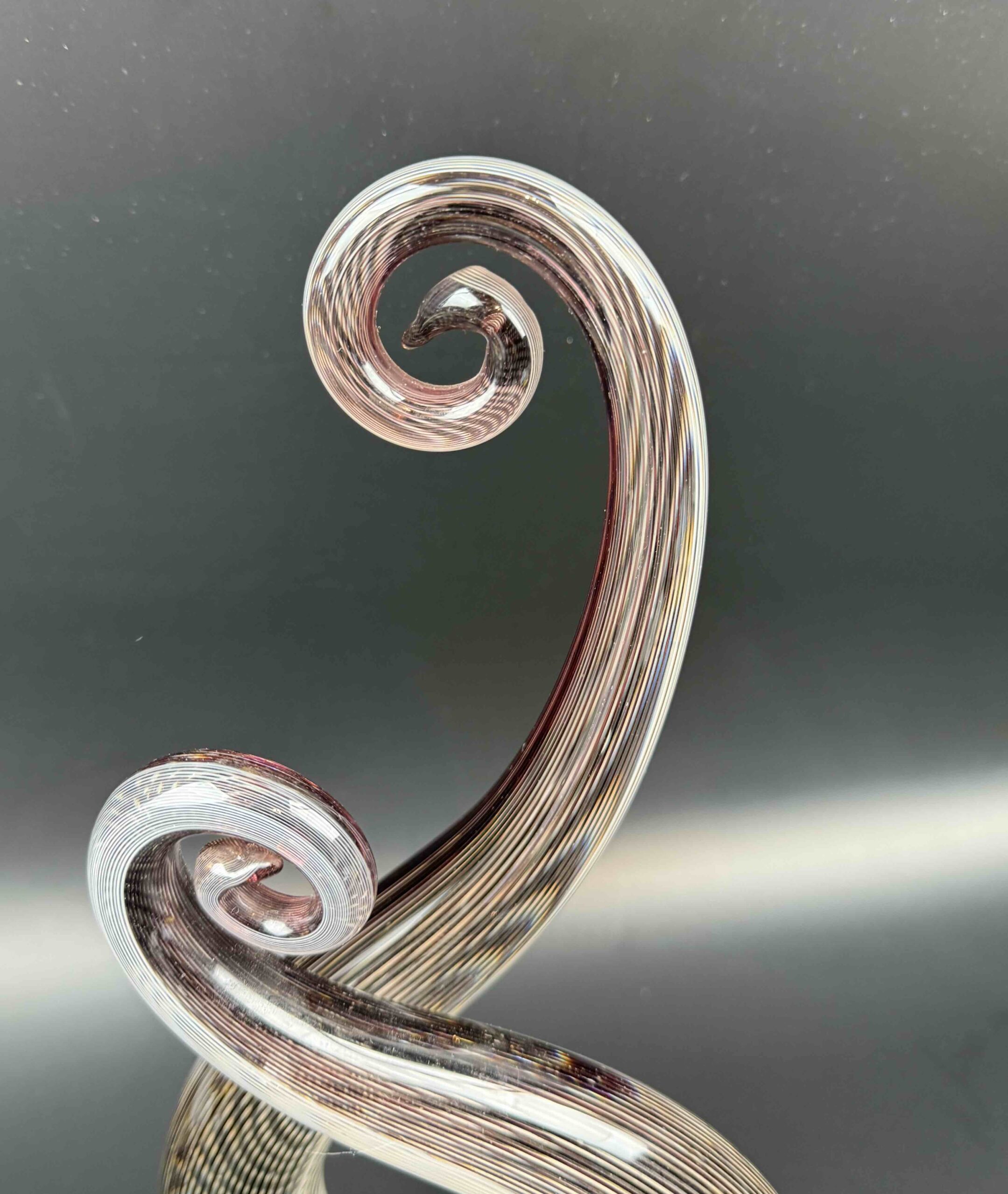 To rzeźba dekoracyjna ze szkła artystycznego, o eleganckiej, abstrakcyjnej formie – w stylu Murano