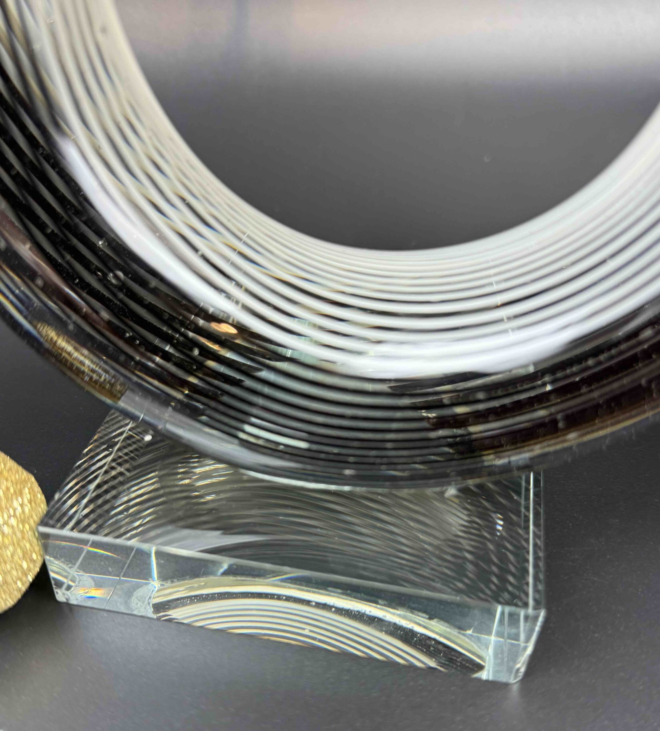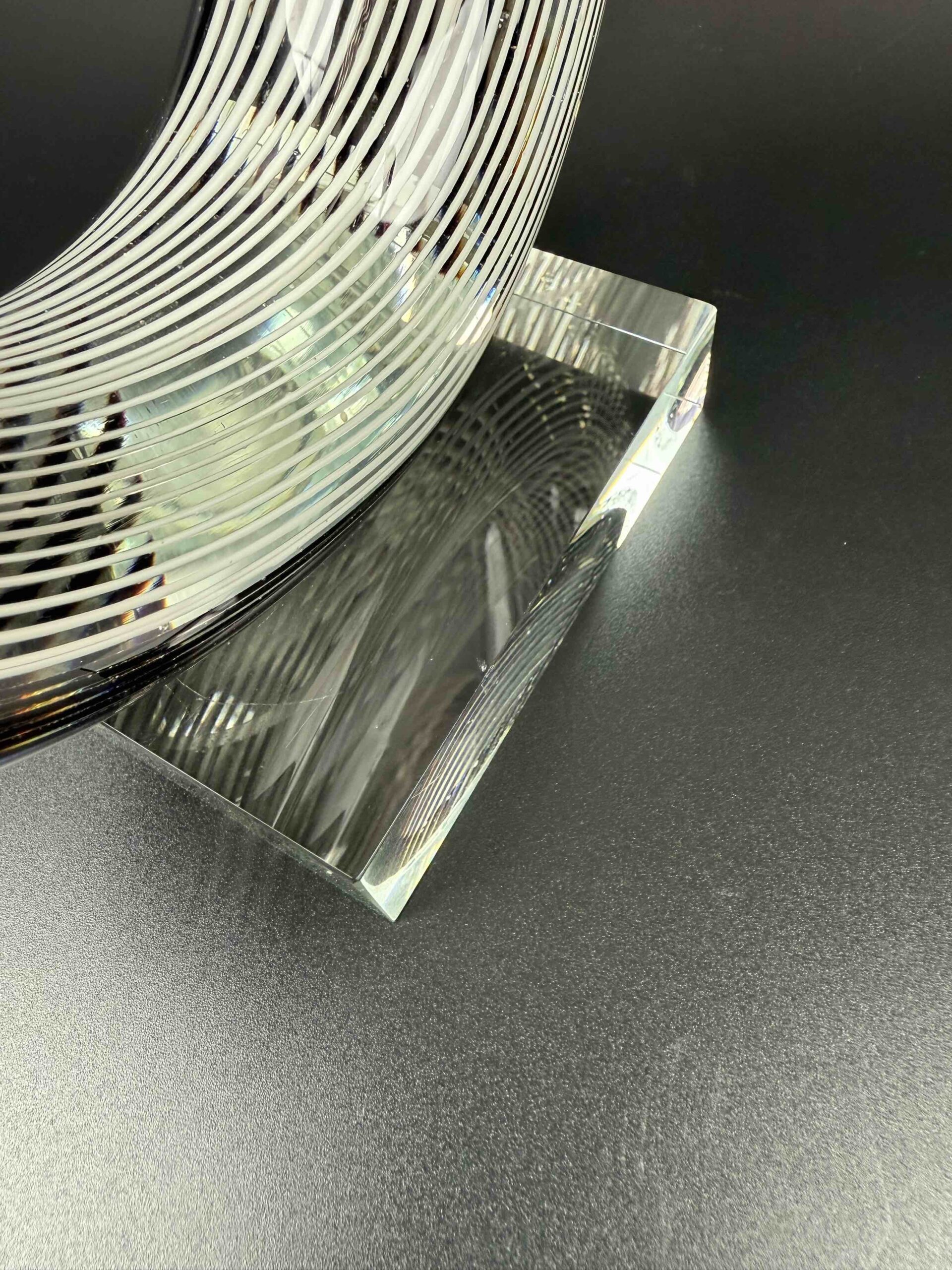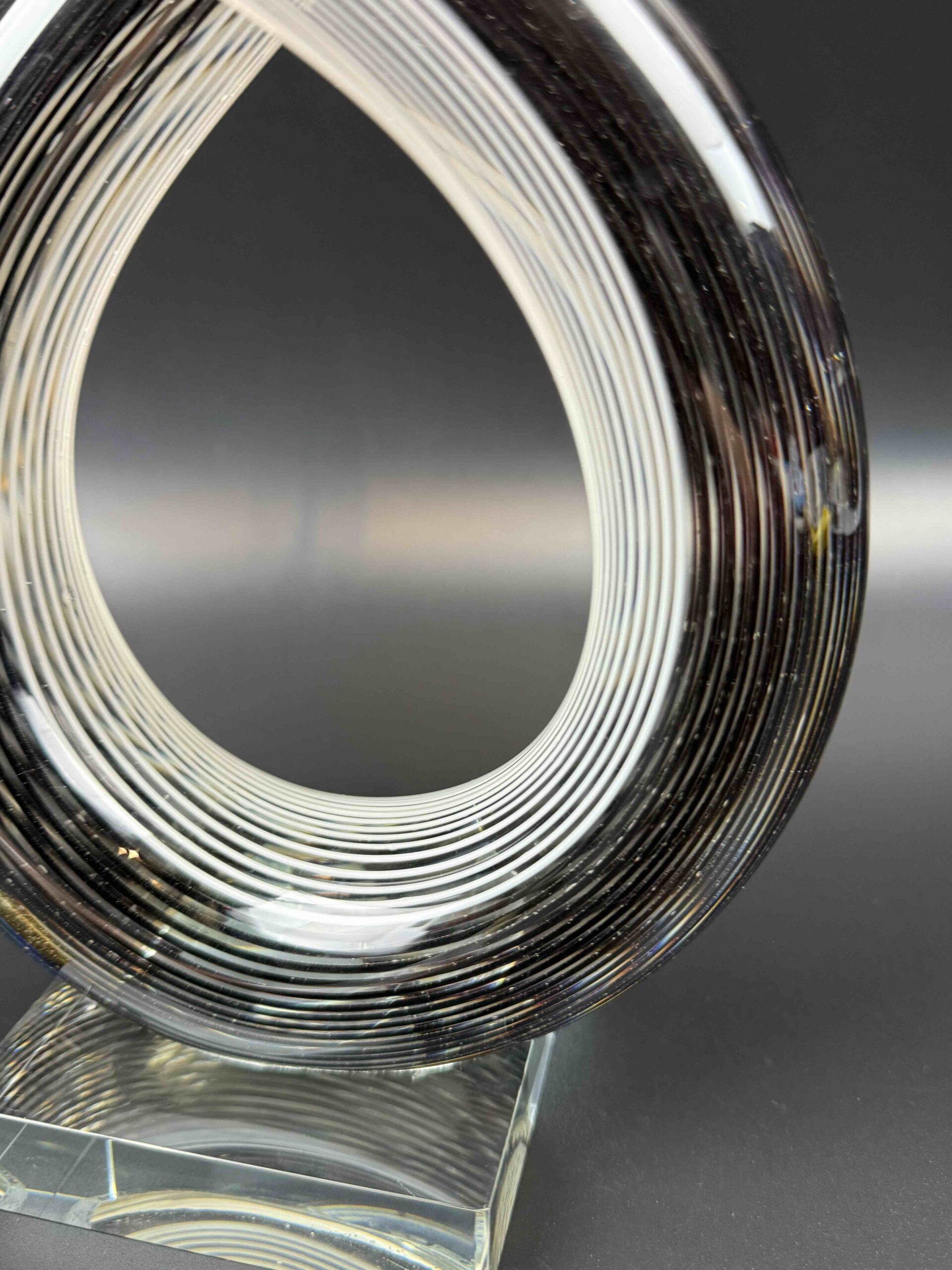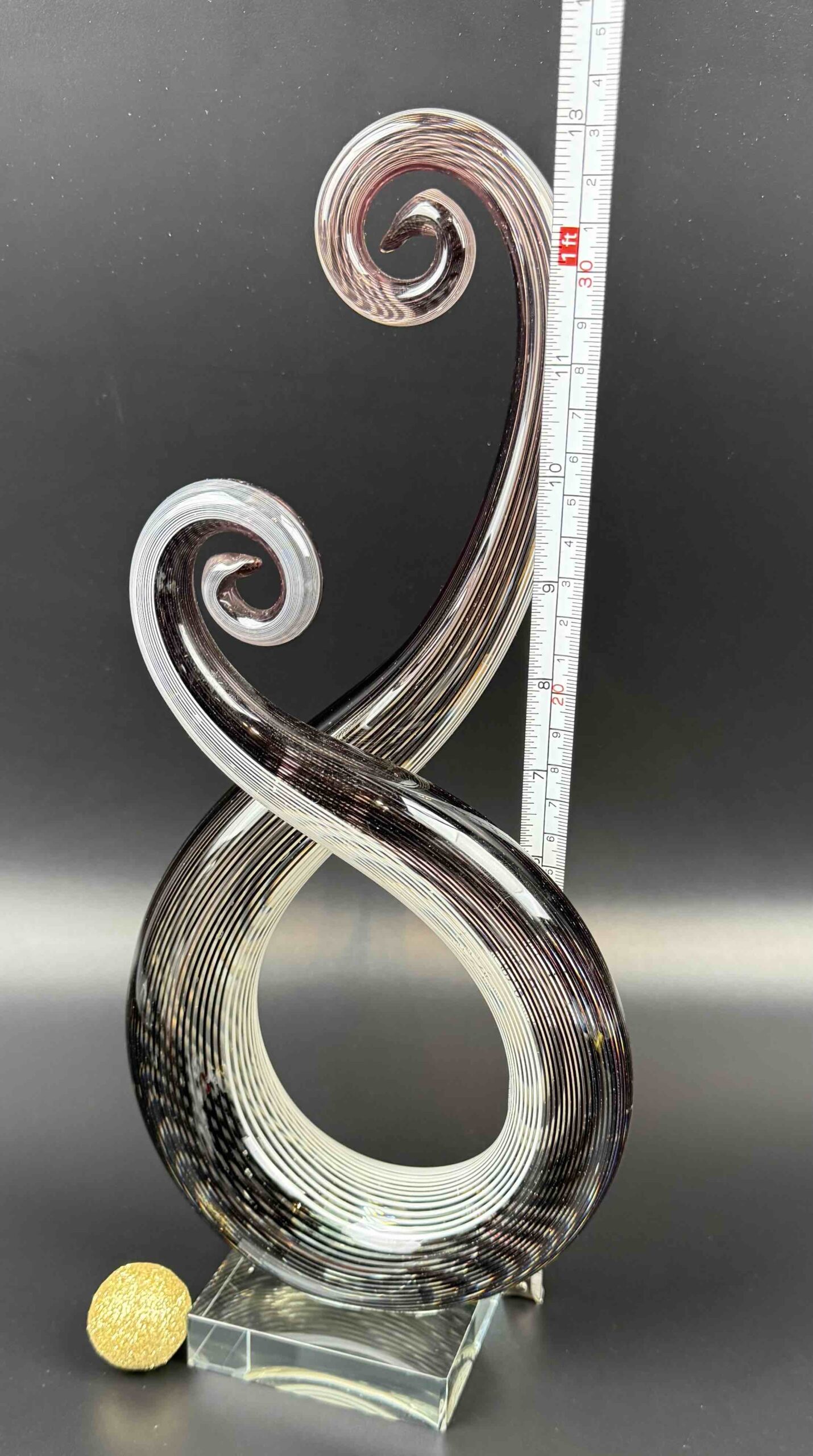 To rzeźba dekoracyjna ze szkła artystycznego, o eleganckiej, abstrakcyjnej formie – w stylu Murano