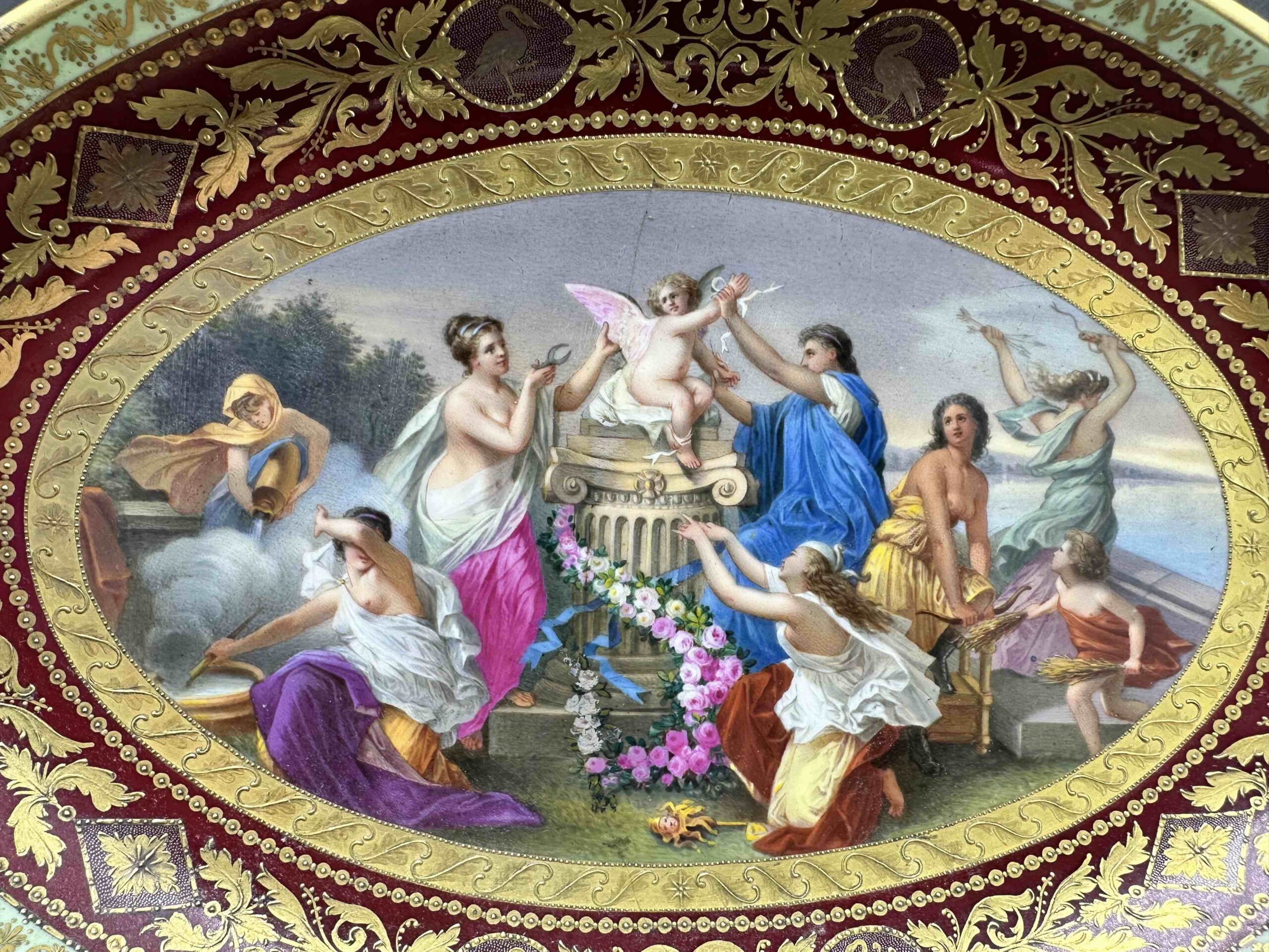Wyjątkowy talerz dekoracyjny wykonany w stylu wiedeńskim w drugiej połowie XIX w.