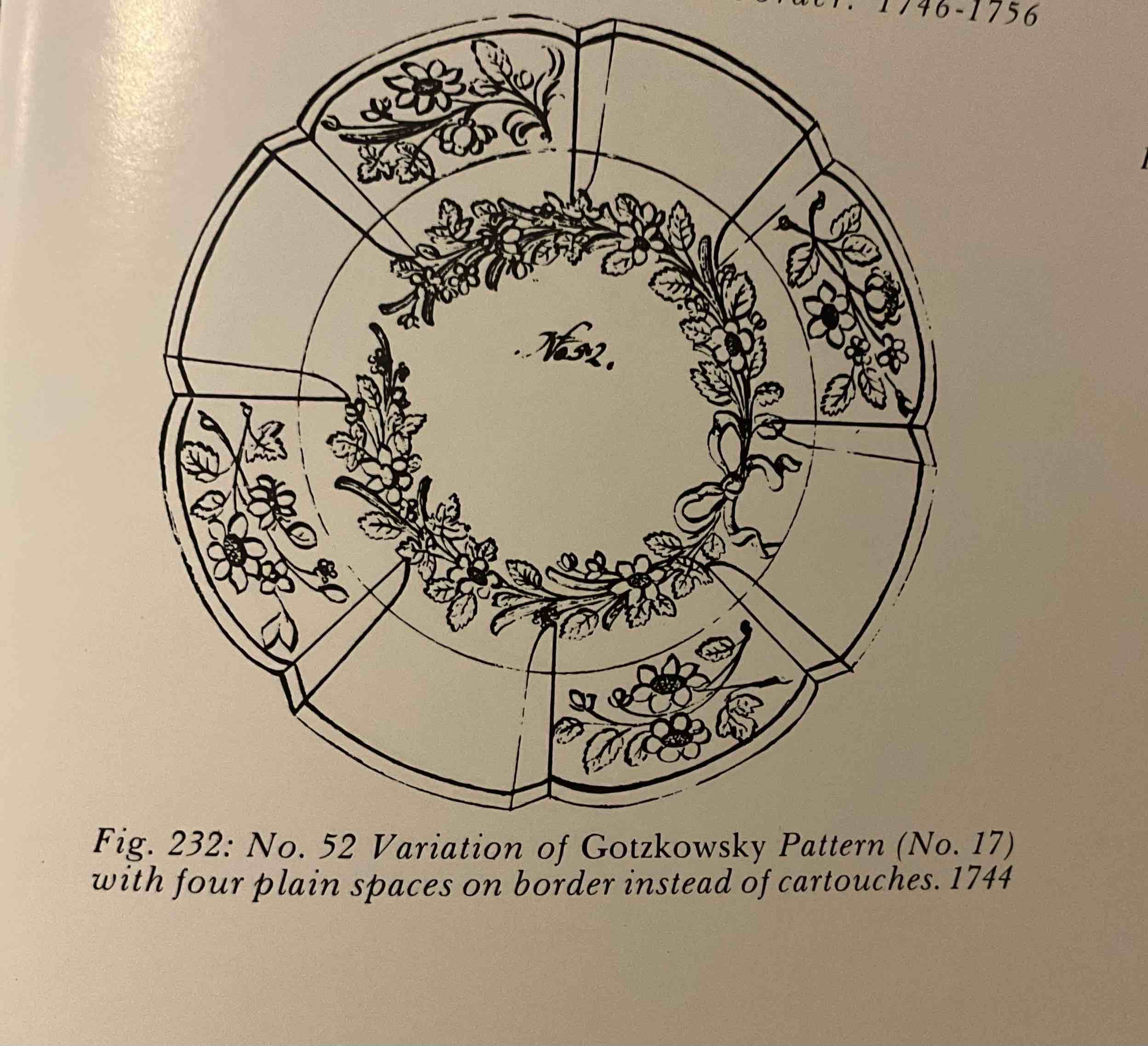 Na uwagę zasługuje też ciekawy relief modyfikujący wzór Gotzkowskiego z czterema prostymi odstępami na obramowaniu zamiast kartuszy. (relief powstał w 1744 r. )