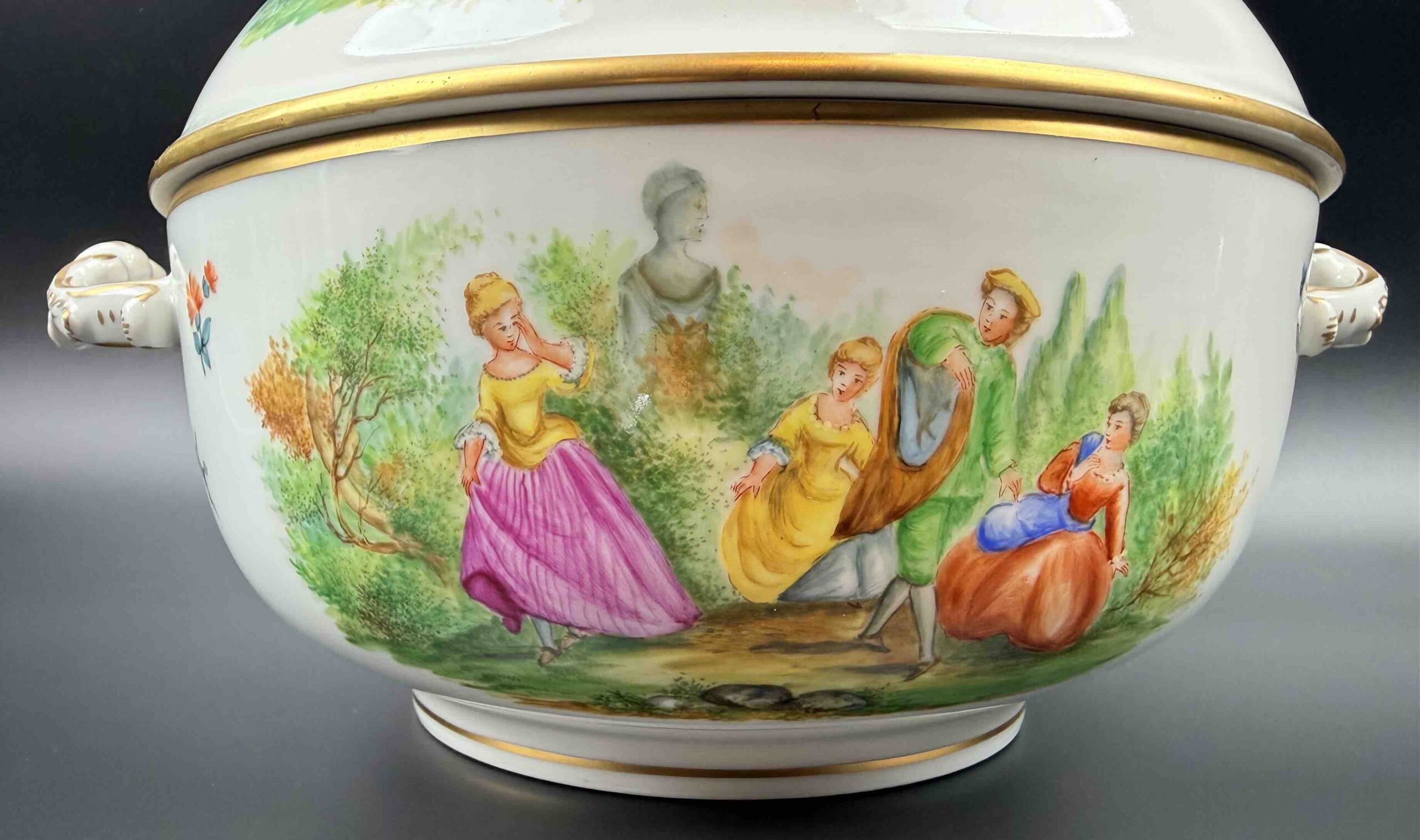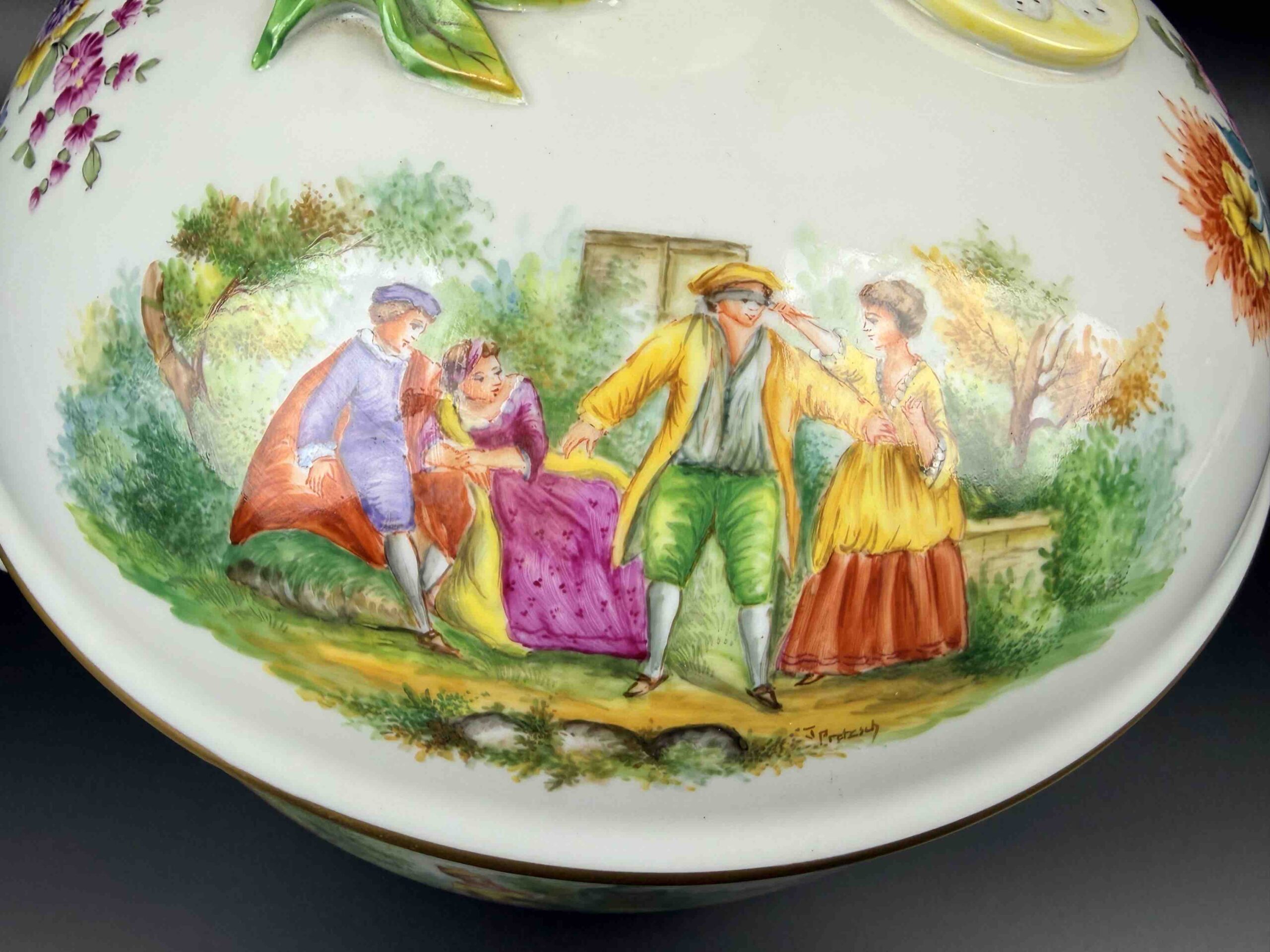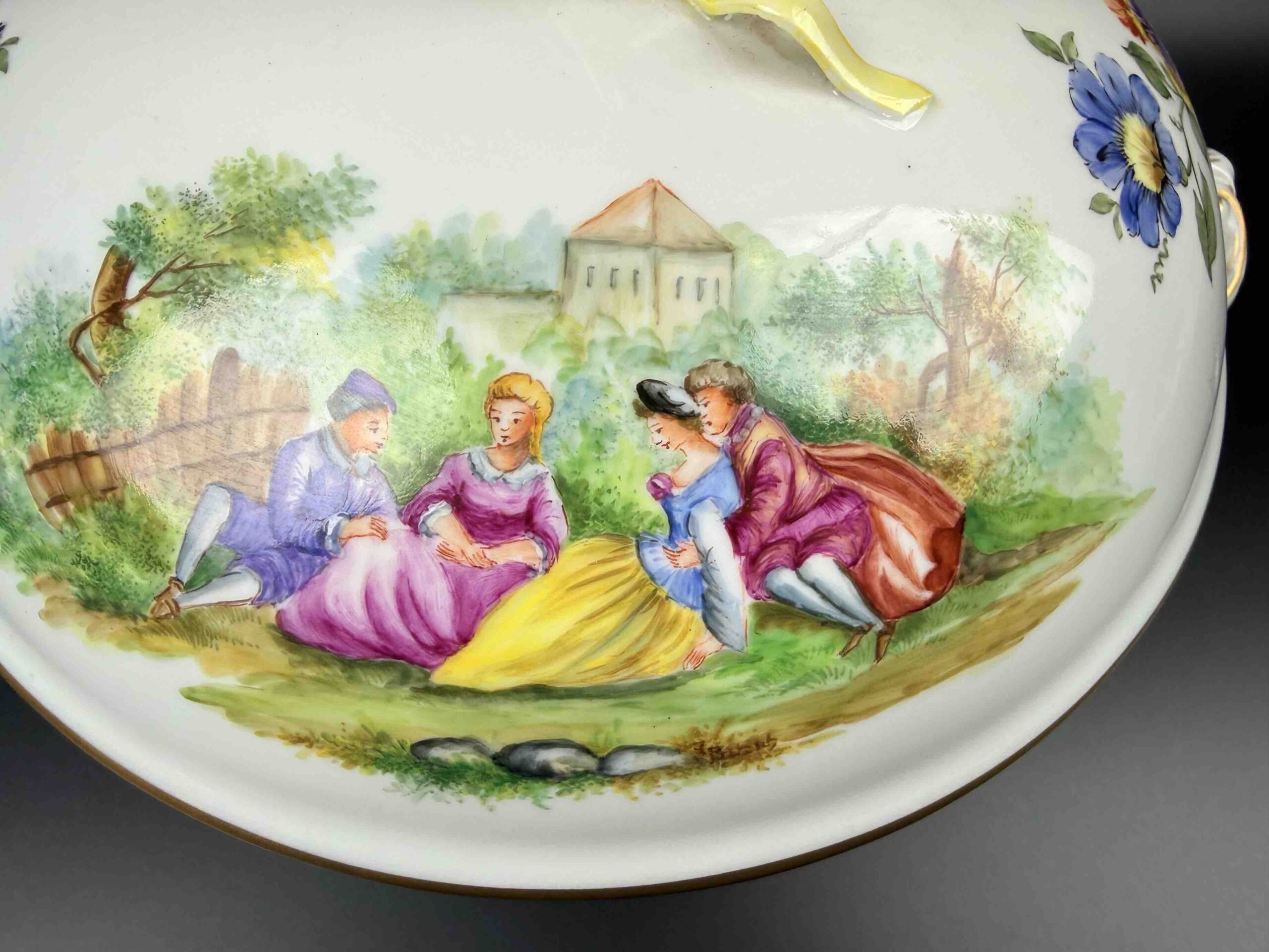 Na uwagę zasługują przedstawienia scenek, które są klasycznym przykładem drezdeńskiej dekoracji figuralnej.