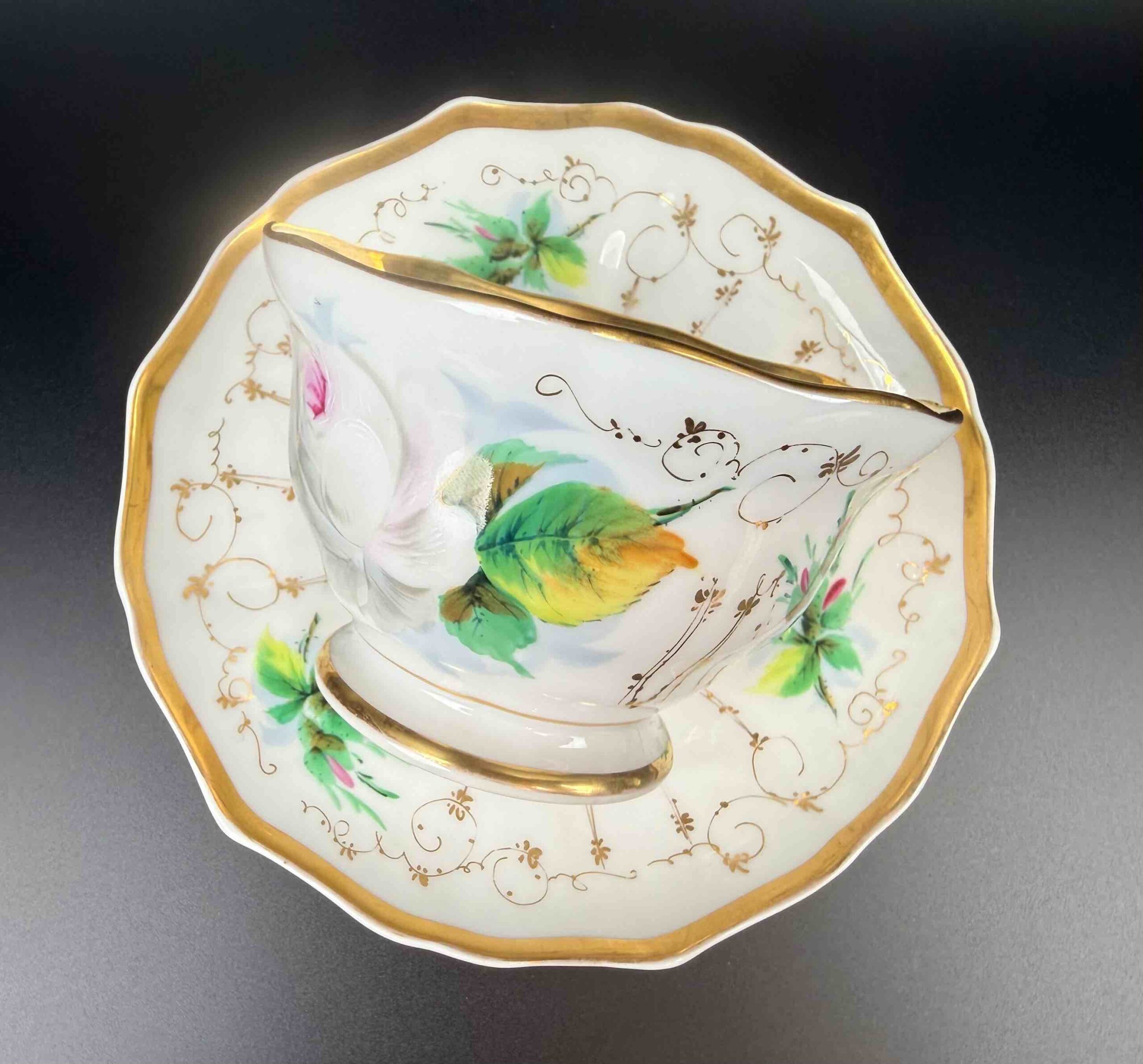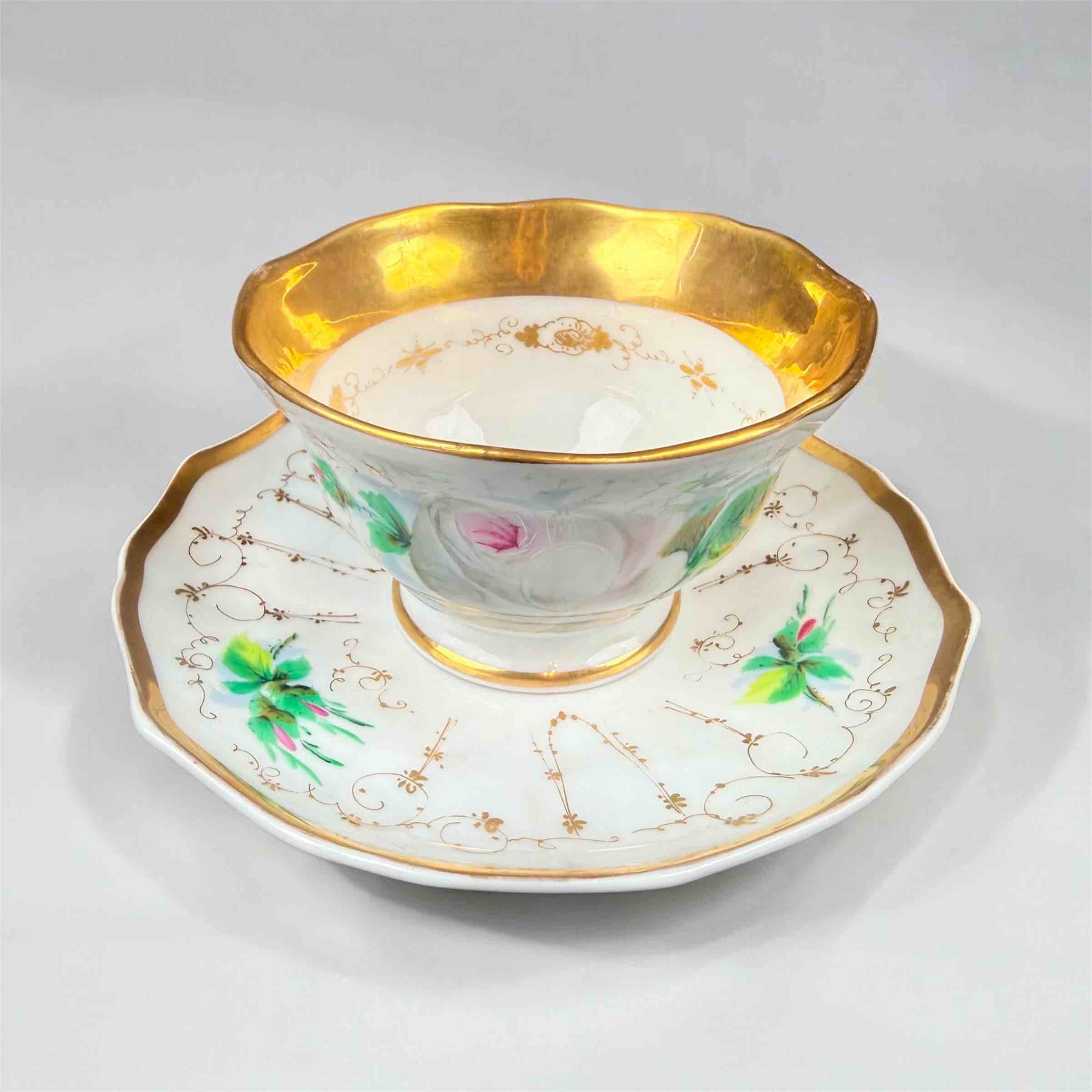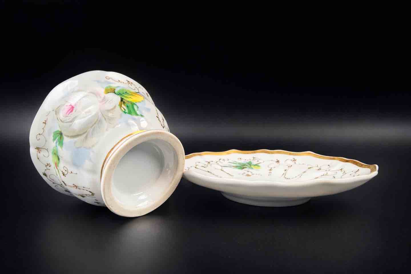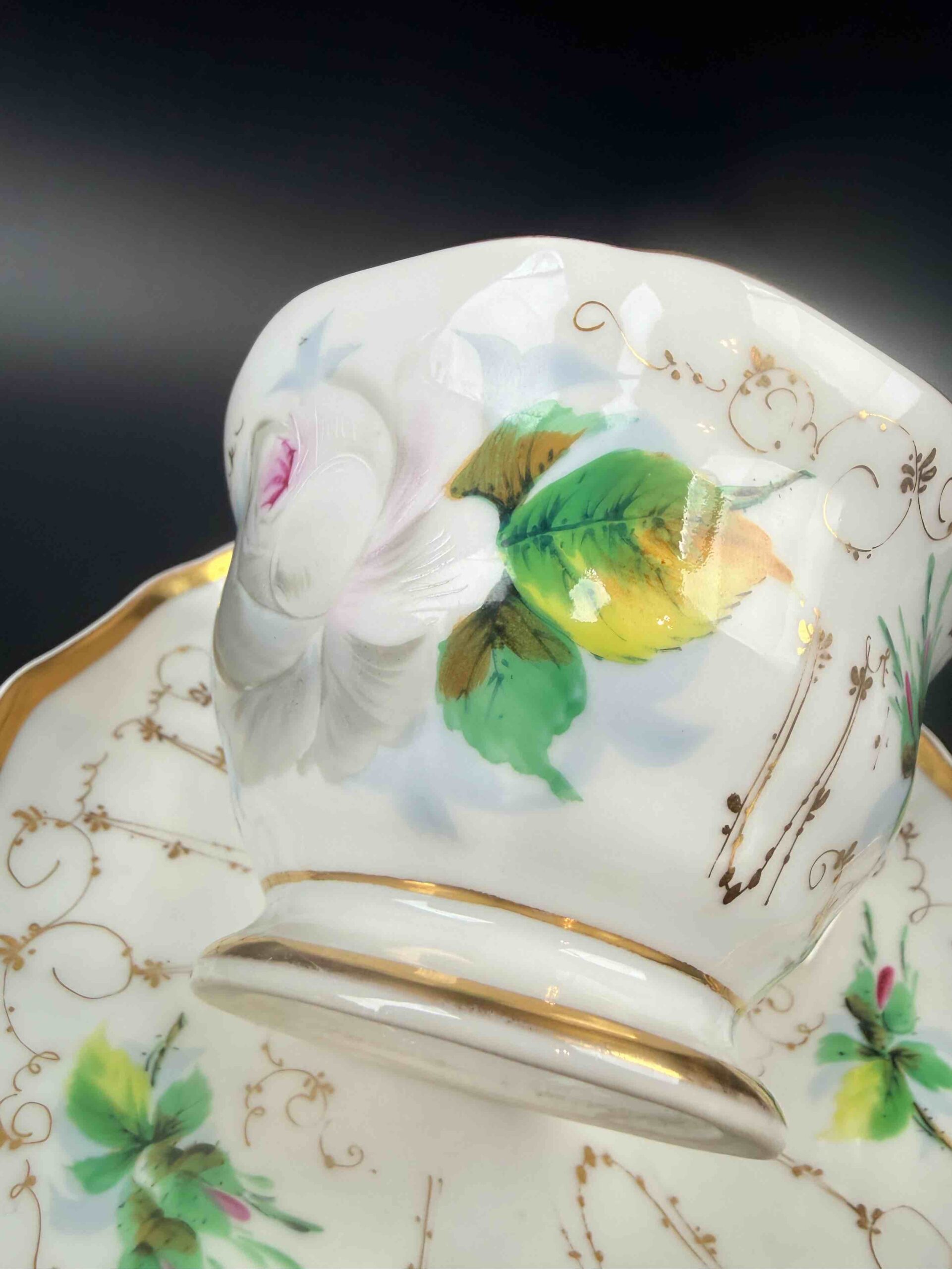 Rezerwacja – Zimowa biała róża – filiżanka i spodek XIX w.