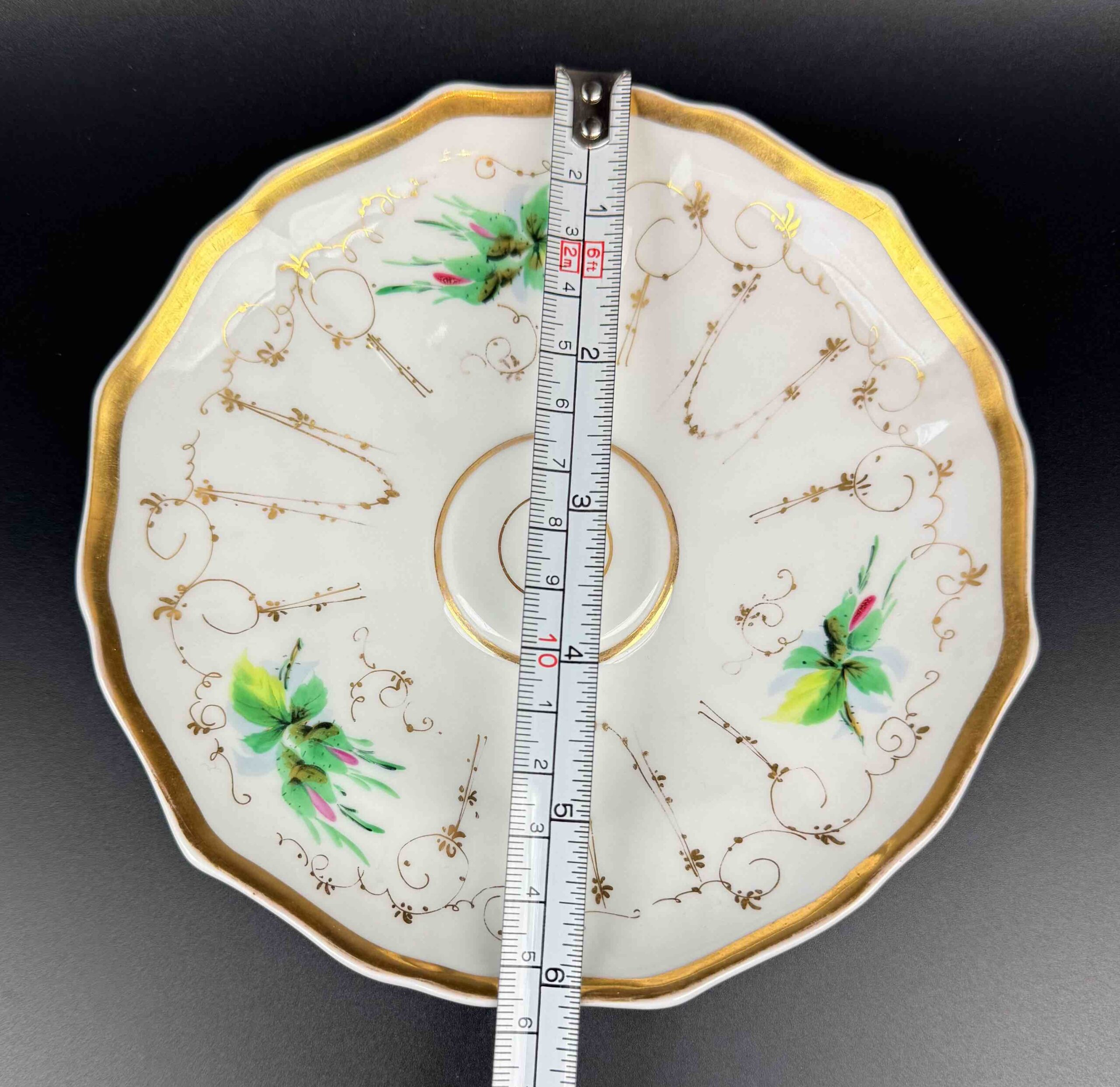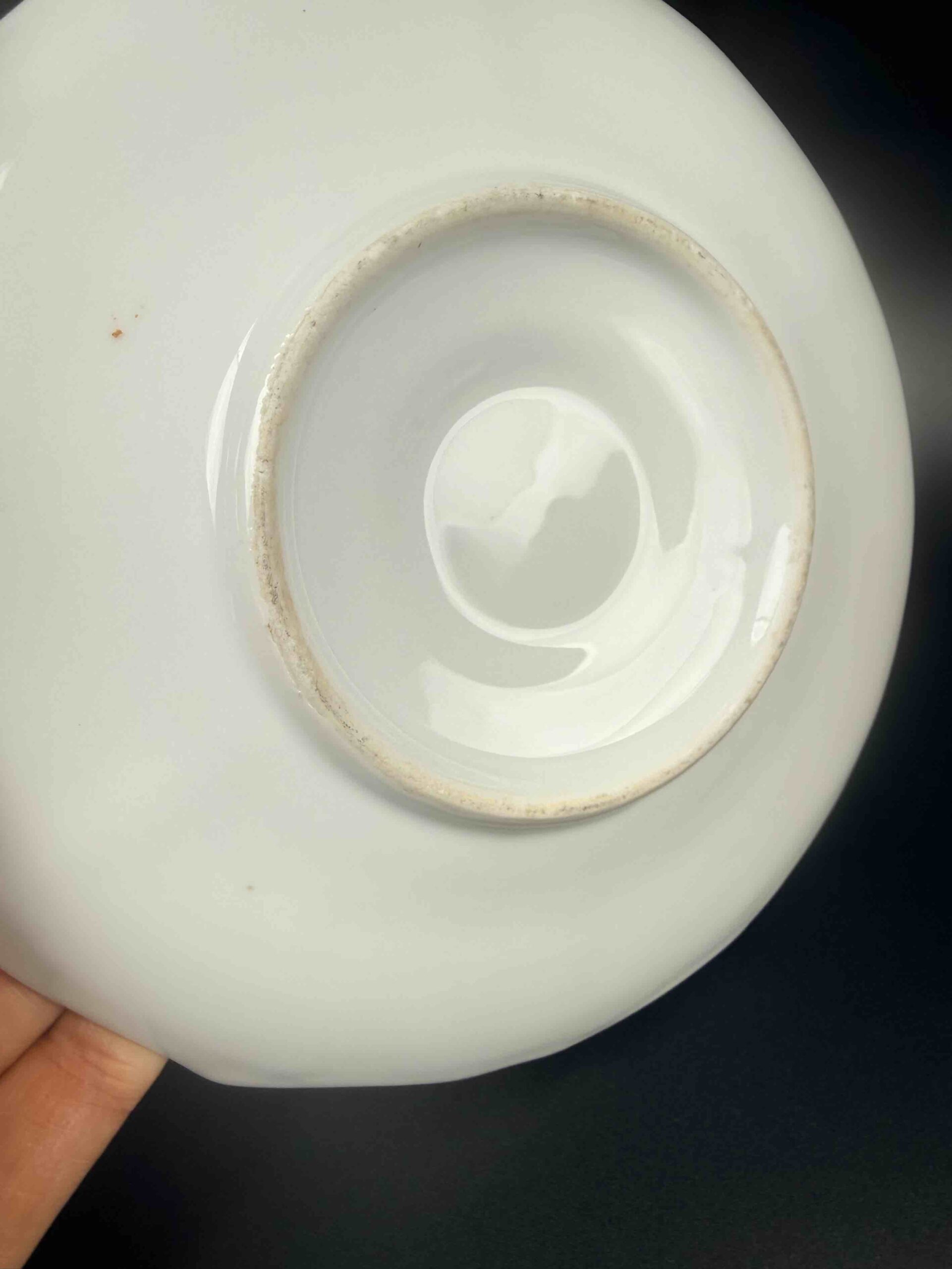 Uroczy specek w lustrze posiada nieznaczną wypukłość, która ma zapobiec przesuwaniu się filiżanki.